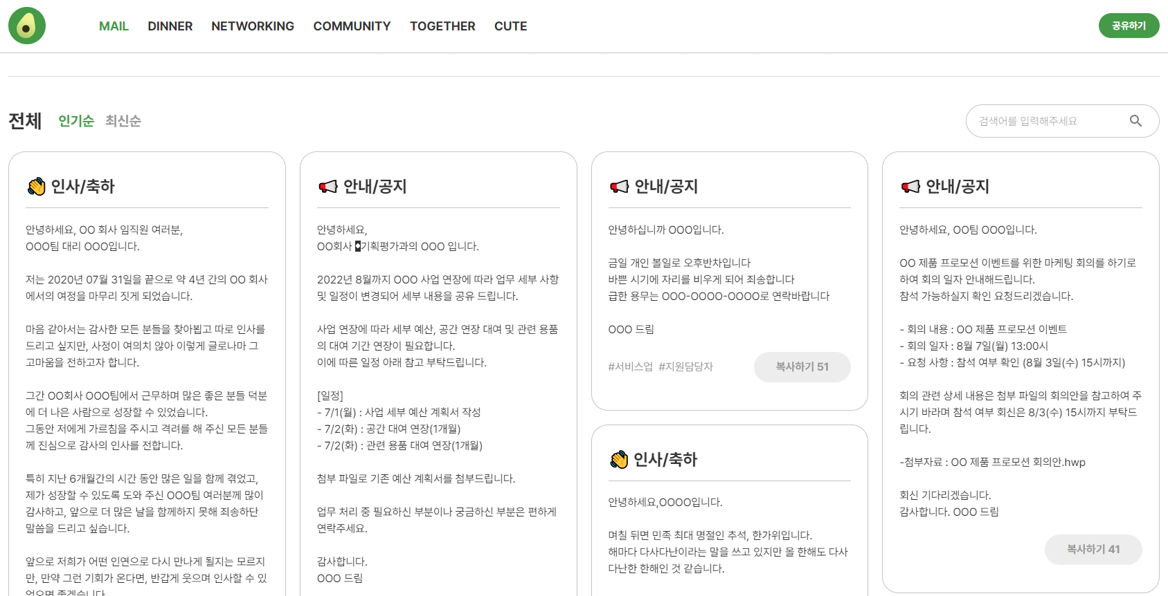 메일 쓰기 형식에 템플릿이 있어 상황별에 맞게 선택하여 사용할 수 있는 사이트