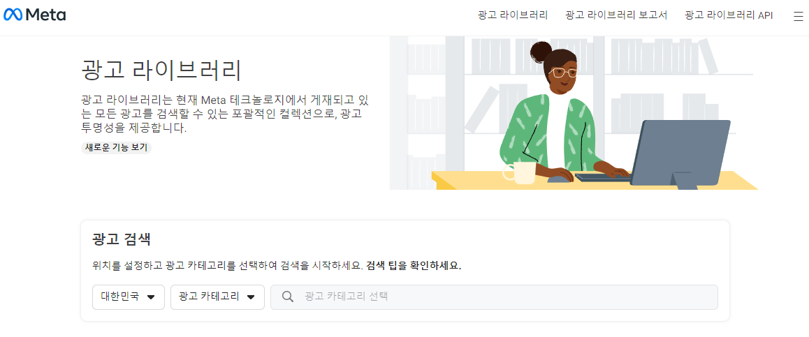 페이스북, 인스타그램에 진행중인 광고를 볼 수 있는 사이트 (경쟁사 모니터링을 위한 사이트)