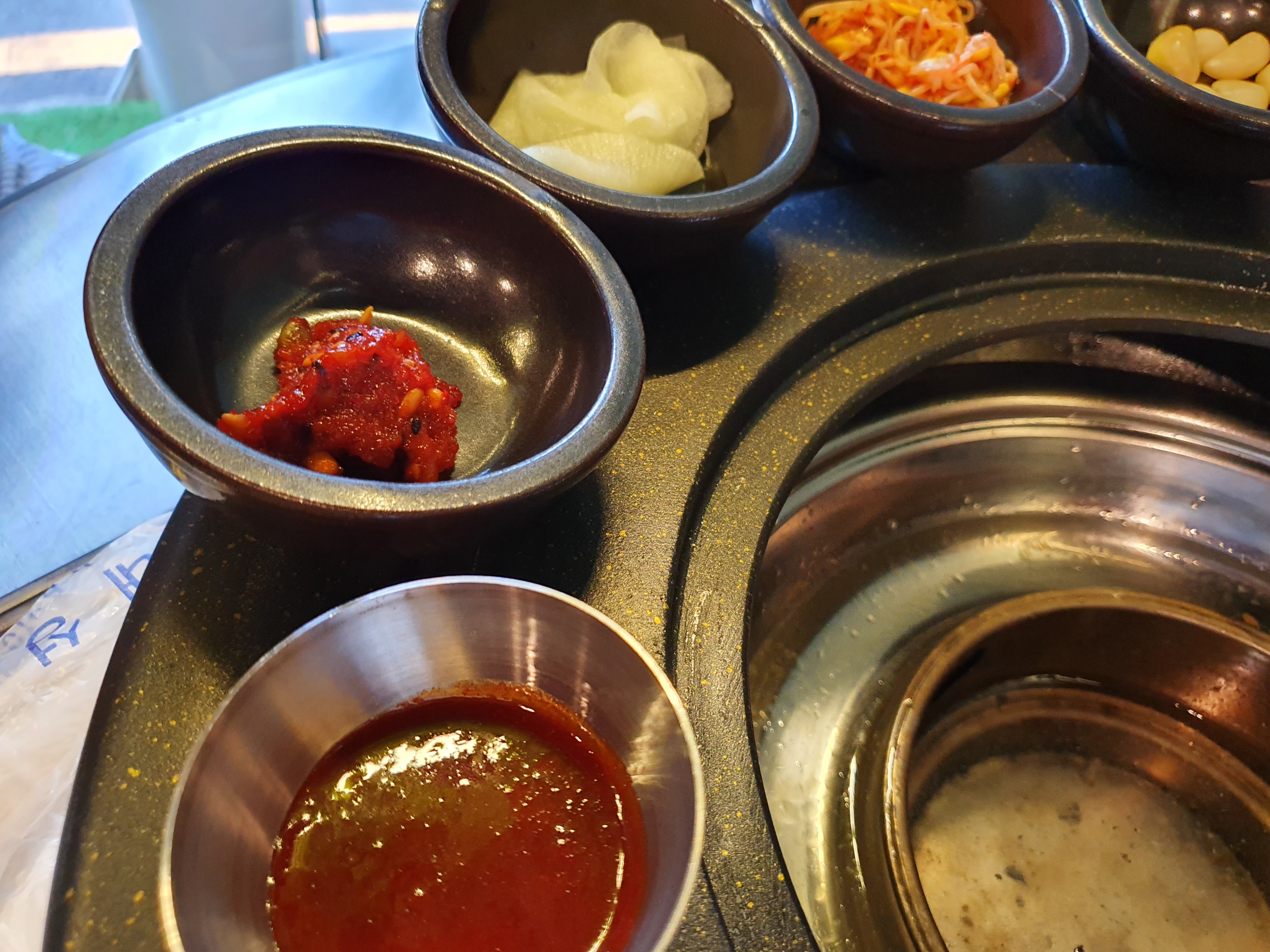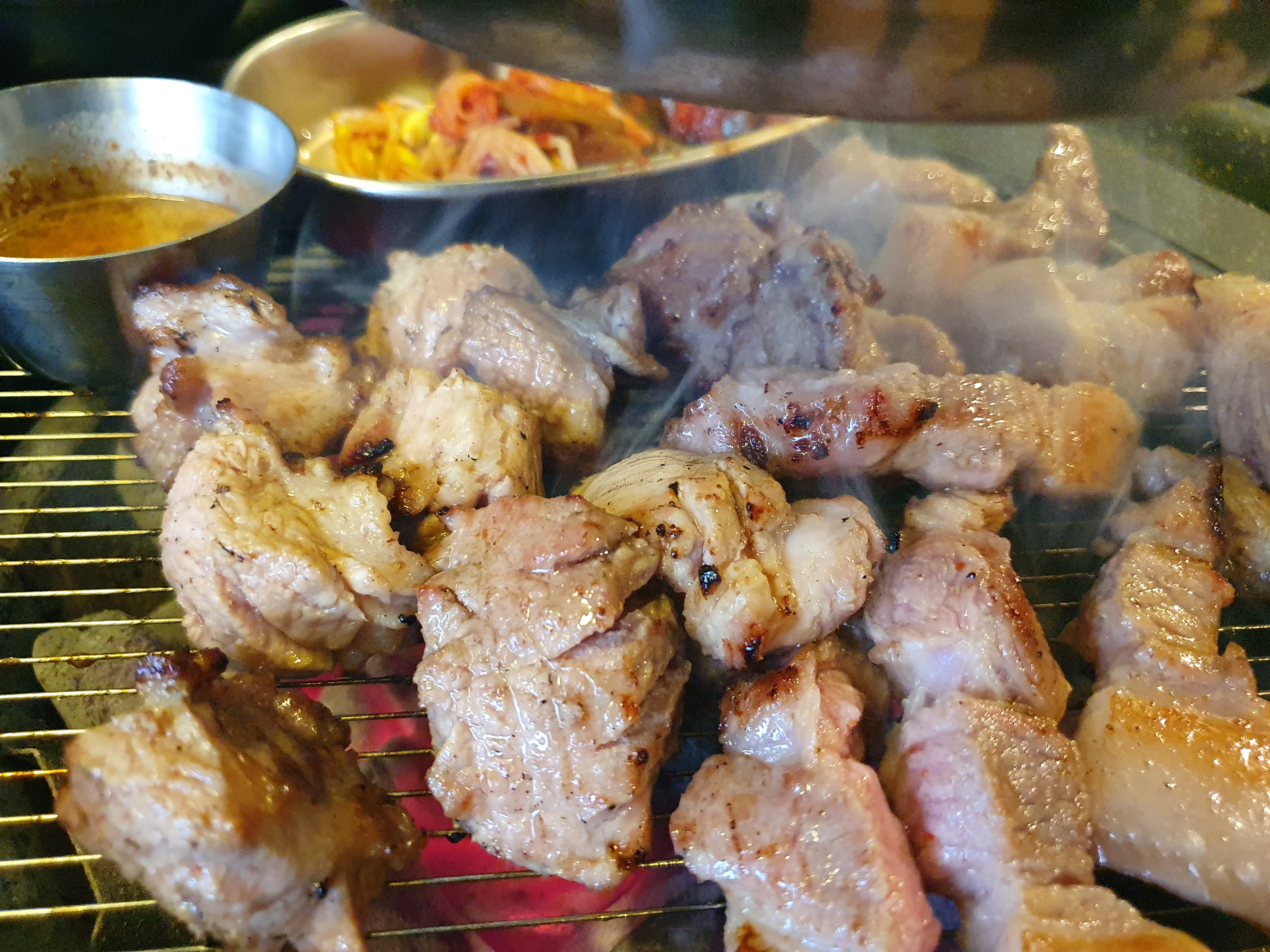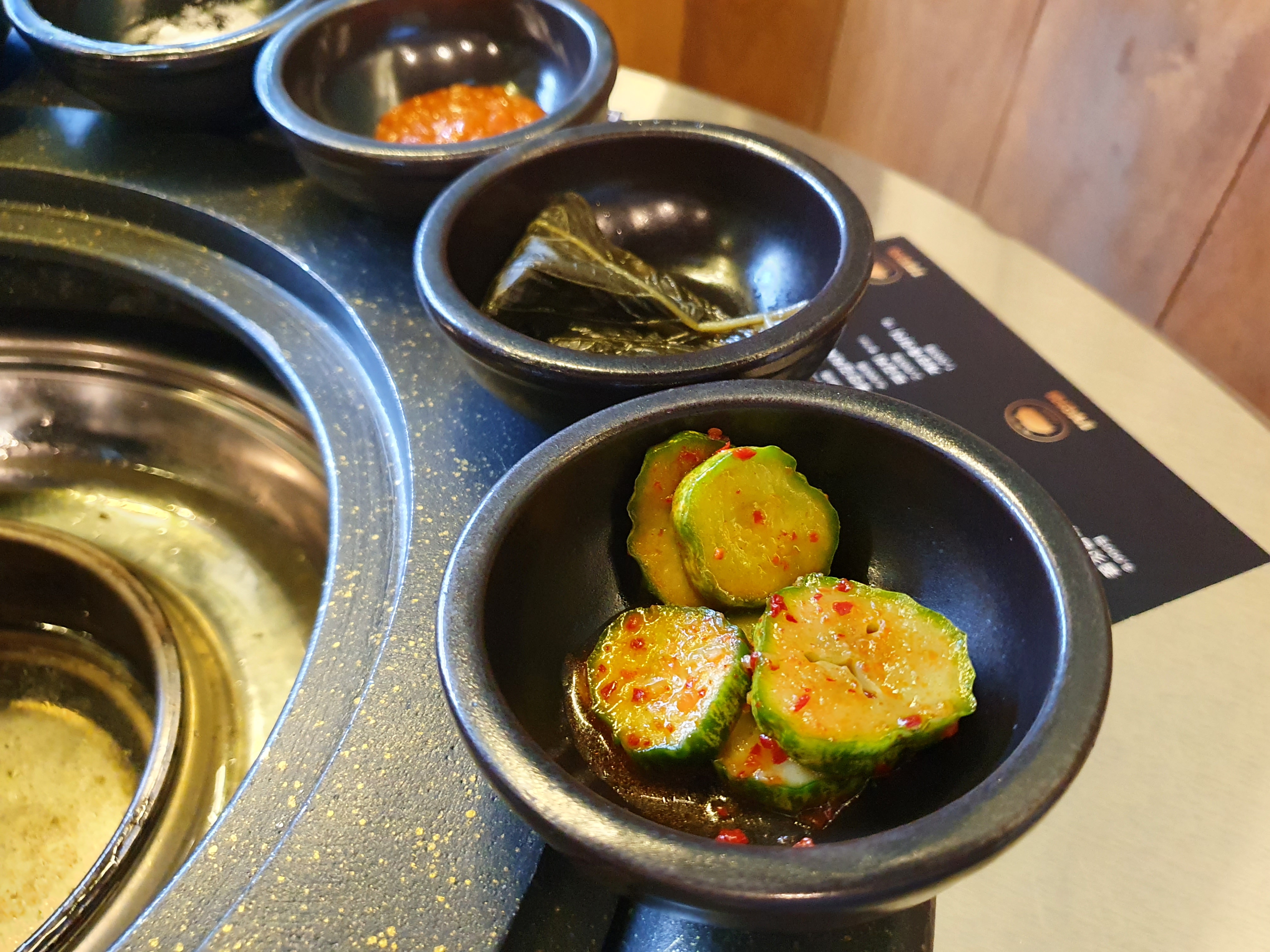 이곳이 다른 고깃집과 크게 다른건 화로옆으로 둘러서 밑반찬이 나옵니다. 사진을 찍을 수 밖에 없는 조명과 세팅으로 모두 몇컷을 찍습니다. "보기 좋은게 먹기도 좋다"를 실천하고 있는 음식점이였습니다. 그런데 여기에 함정이 있습니다. 그릇이 작고 가지수가 많아 보일뿐 다른 고기집하고 비슷하다는게 함정입니다. 그럼에도 추천하는 이유는 고기의 맛이 괜찮았고 SNS에도 반응이 좋기 때문입니다.
