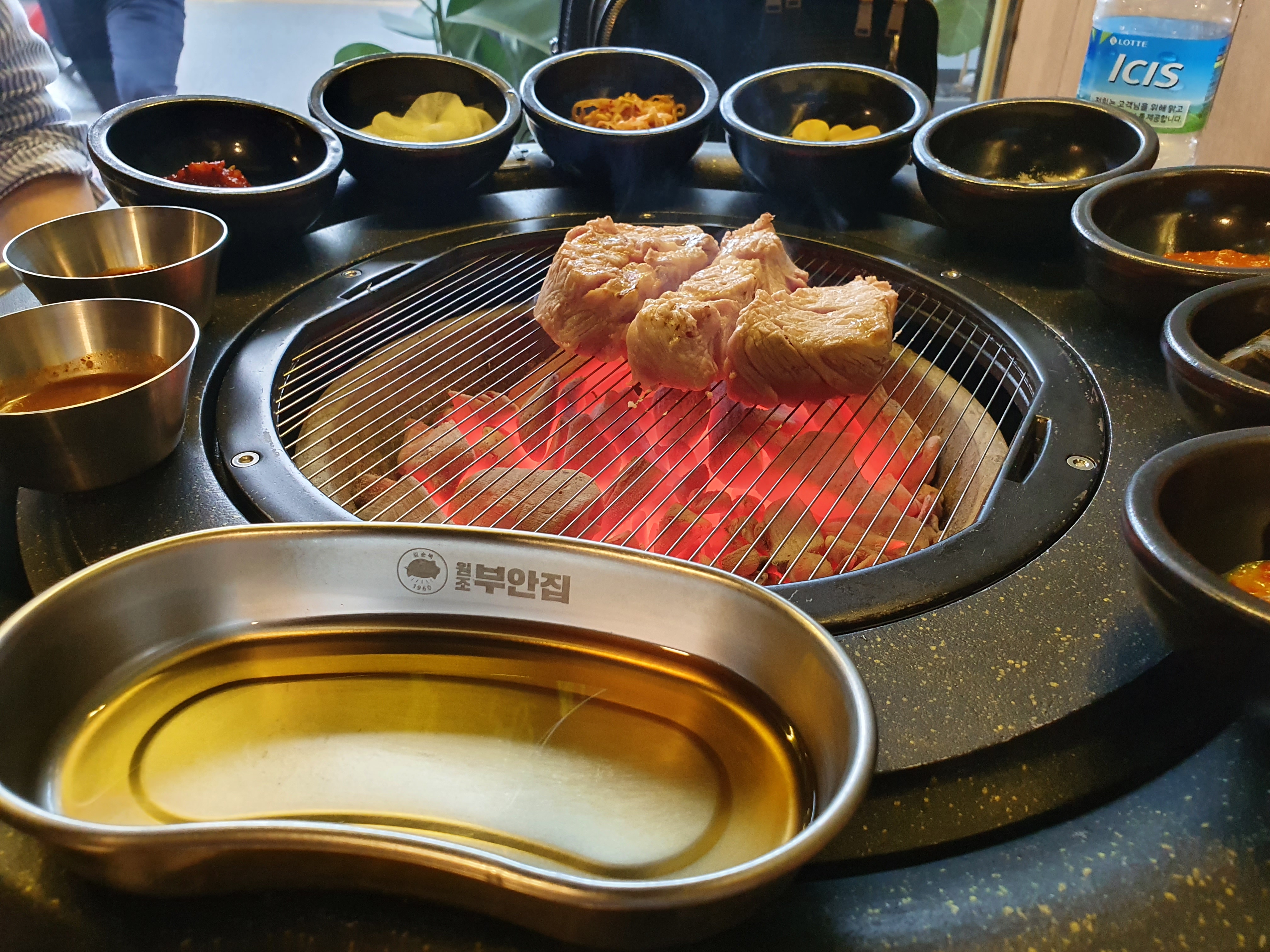 고기의 맛도 괜찮지만 홍보를 위해 꽤 공을 드린 인테리어와 메뉴구성이 눈에 들어오는 곳입니다. 입구에서부터 네온사인과 실내조명이 인스타감성을 만들어 SNS에 올리고 싶은 인테리어였습니다. 부안집 몇곳을 다녀봤는데 지역마다 맛차이가 있다는 것을 염두해두시고 보셔야 합니다. 여기만 괜찮았고 부천 상동, 부평, 중동점은 별로였습니다.