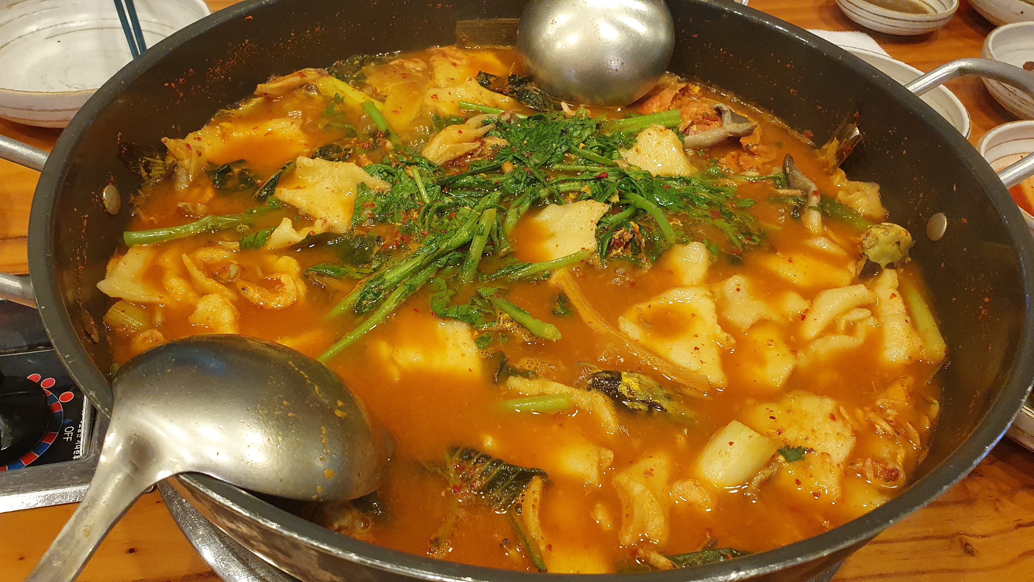 이렇게 해지는 모습을 구경하고 돌아오는 길에는 송도유원지에 있는 금강메기매운탕에서 저녁식사를 했습니다. 민물매운탕을 좋아하지 않는데 잡내없고 맛있는 편입니다. 참게는 추가금을 내면 넣어주는데 껍질이 단단한게 국산은 아닌것같다는 의견이였습니다.