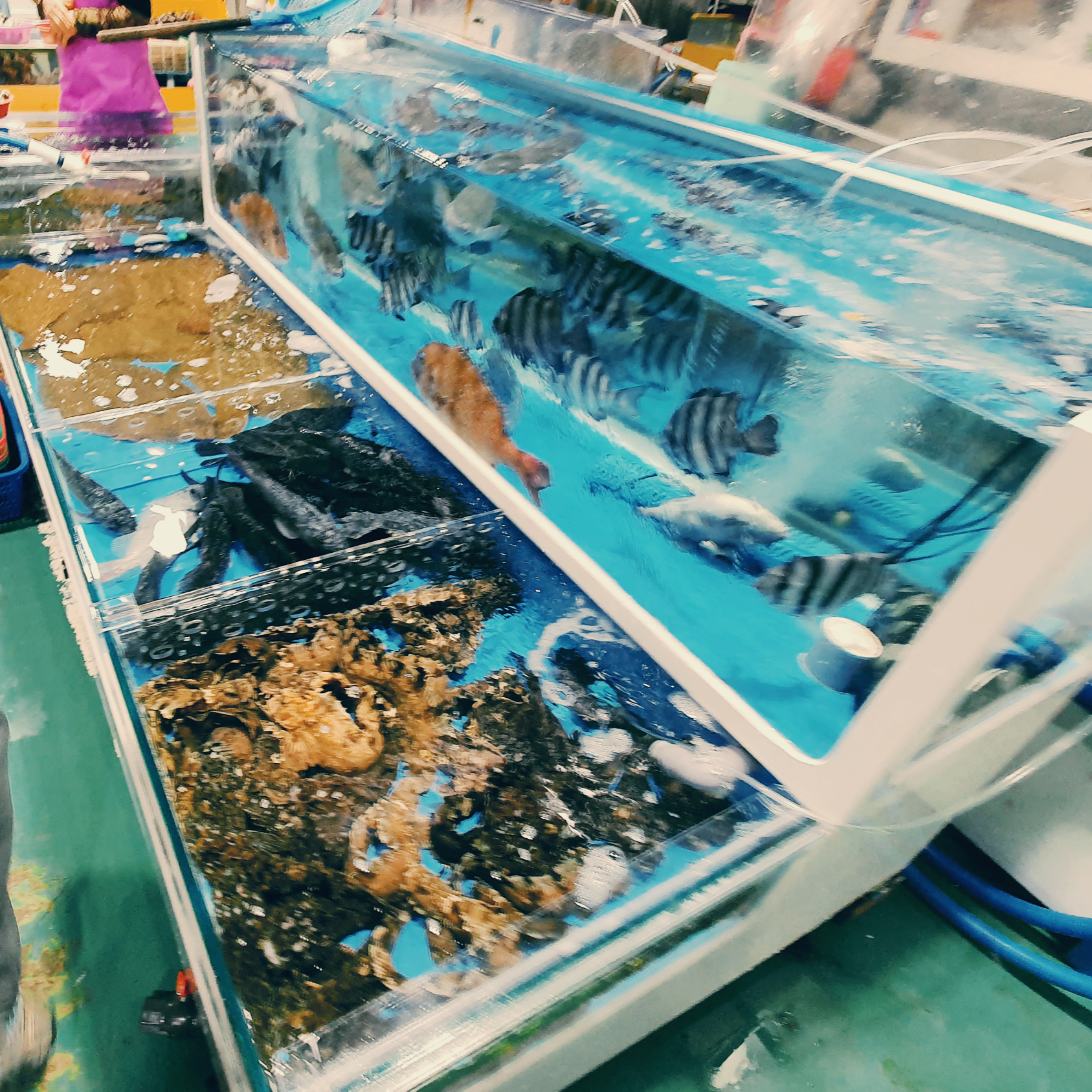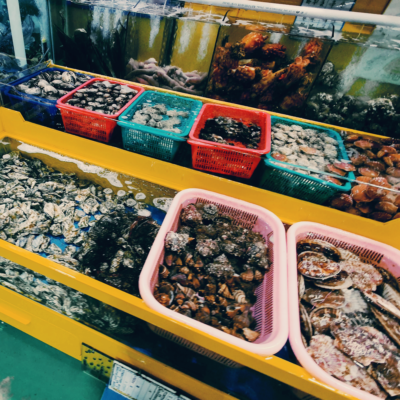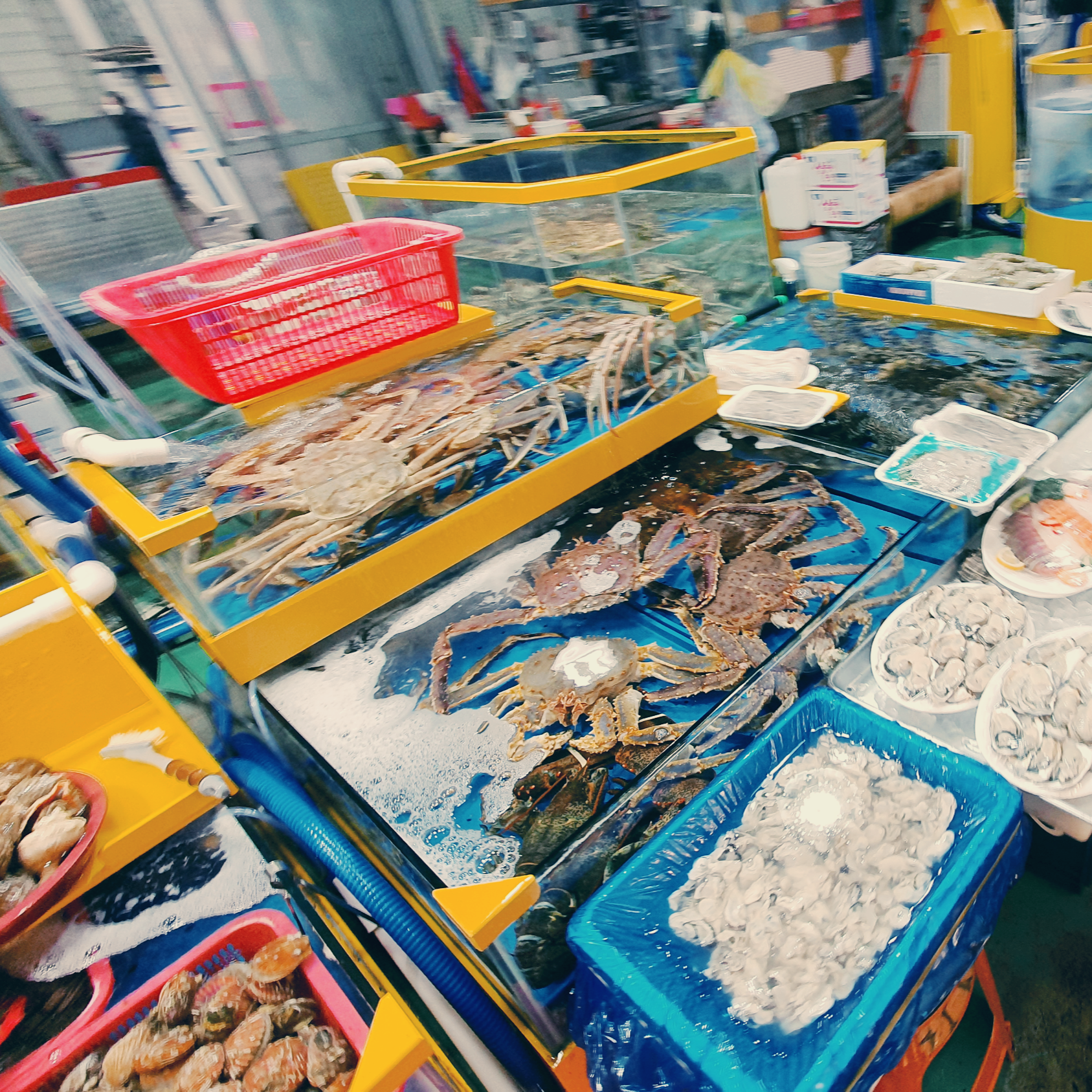 전망대카페와 붙어 있는 수산물 직판장은 약간씩 구획이 나뉘어져있어 잘 보고 들어가야 합니다. 여기도 생각보다 규모가 꽤 컸습니다. 소래포구에 새로 생긴 직판장만큰 크기가 매우컸습니다. 역시나 여기도 호객행위는 쉬지 않고 하다보니 구경하기도 쉽지 않습니다. 금액은 소래포구정도의 금액을 받고 있었습니다.