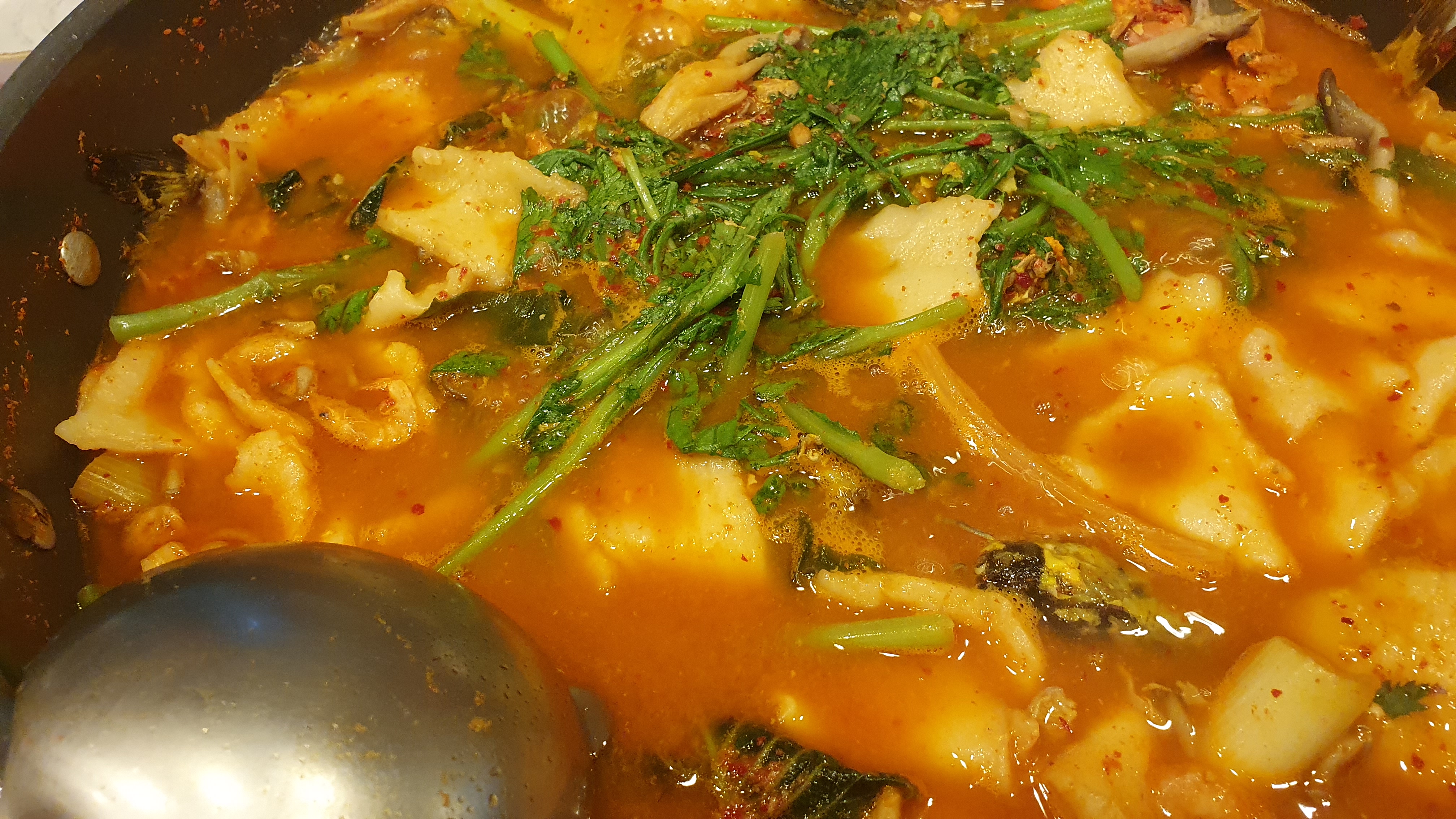 3인이 먹기에 너무나 큰 매운탕이였습니다. 빠가사리 매운탕 中으로 55,000원 + 참게 2마리 (10,000원)을 냈습니다. 절반을 먹지 못할 정도로 양이 많았습니다. 3인으로 해도 작은 사이즈로도 충분할 것 같습니다. 송도 유원지에도 괜찮은 맛집들이 모여 있어 추천할만한 장소입니다.