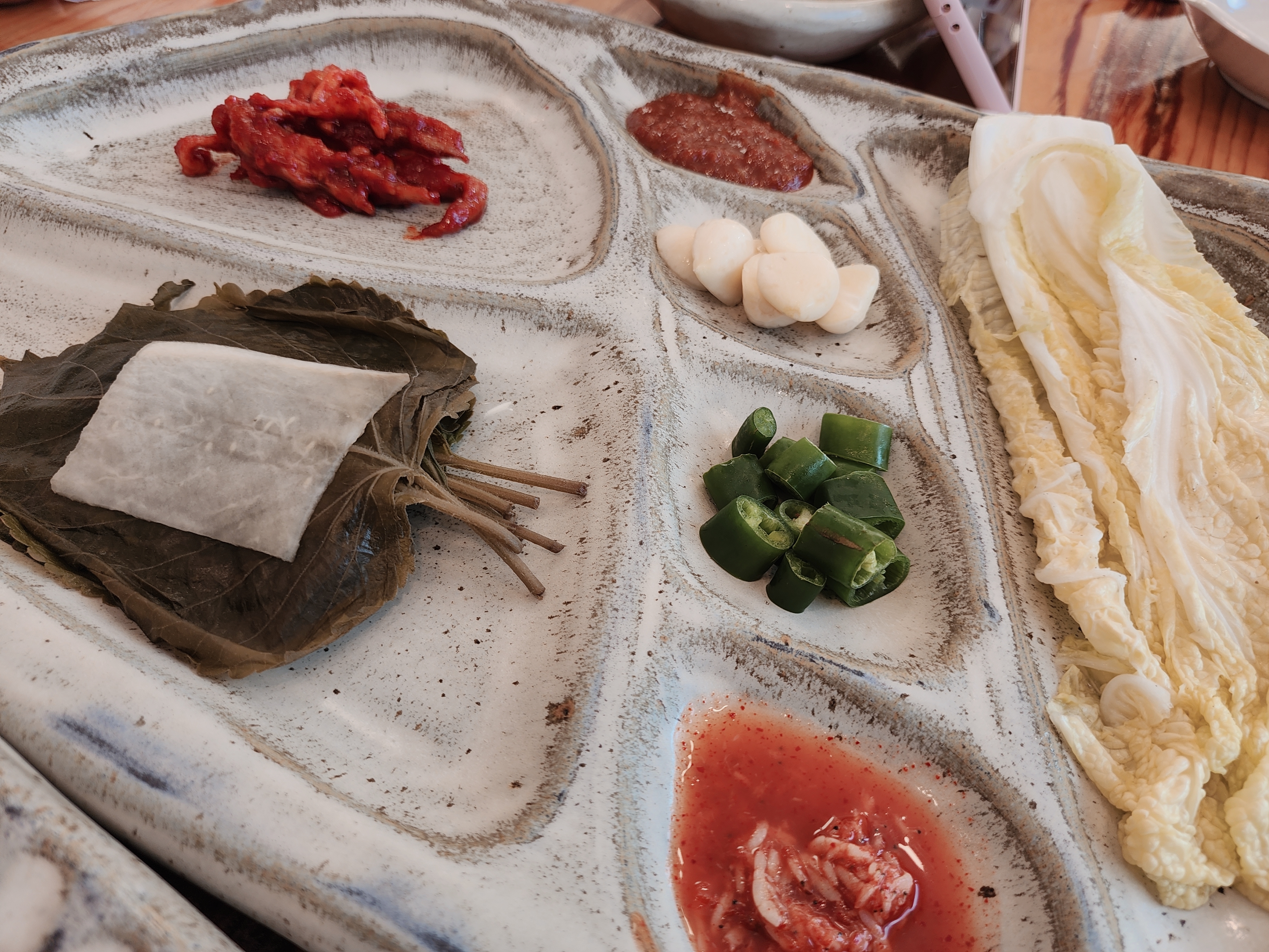 깻잎과 무쌈이 겹겹이 되어 나와 먹기 편했고 무말랭이와 함께 배추쌈으로 먹기에 적당했습니다.