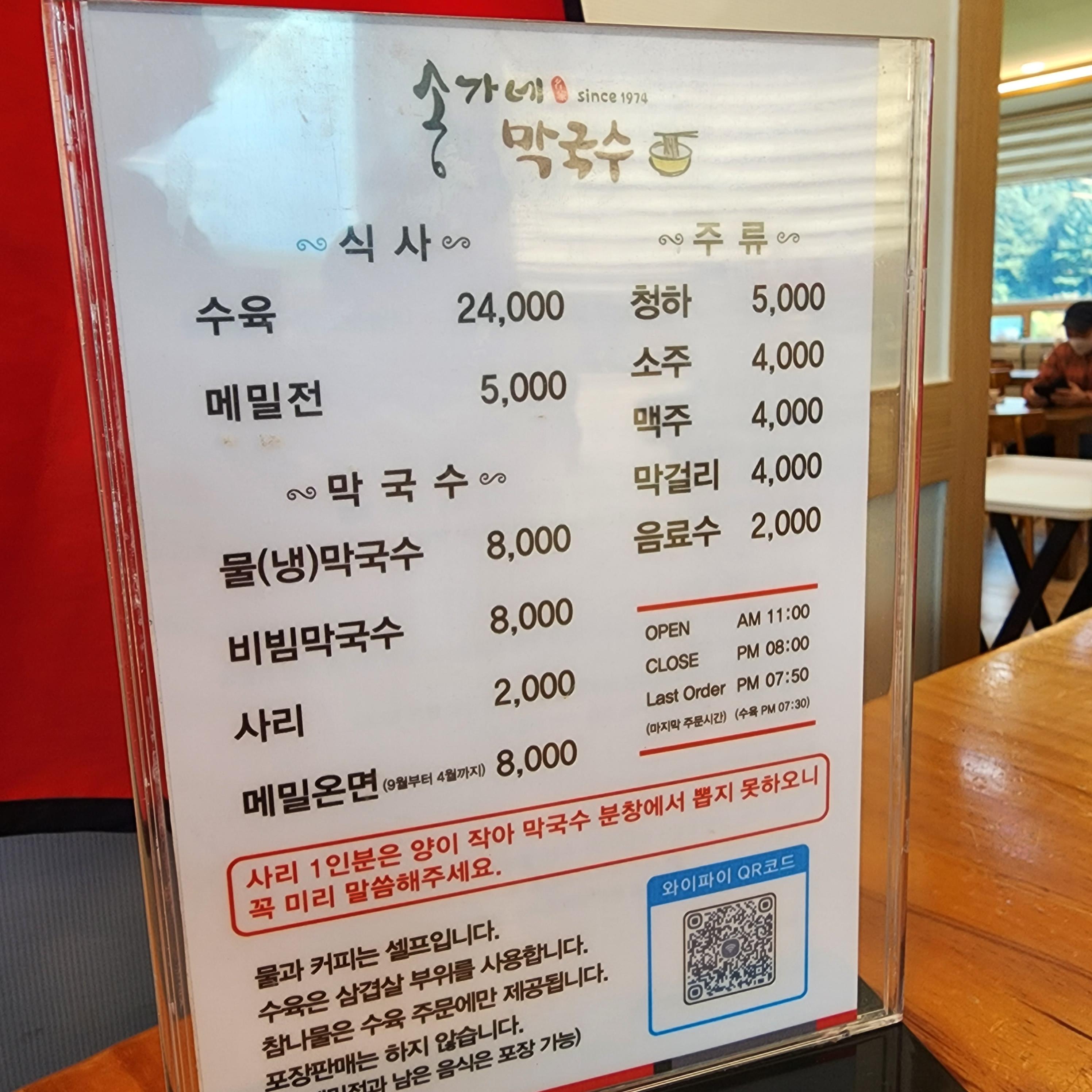 남한산성은 초입부터 백숙, 오리, 두부 전문 맛집들이 많이 있습니다. 오늘은 남한산성에 나들이를 하고 나서 가족들과 두부전골과 같은 가벼운 메뉴를 찾던 도중 막국수가 있어 막국수집을 방문했습니다. 우리가 가본 곳은 '송가네 막국수'였습니다. '메밀로43'이라는 다른 막국수집이 바로 붙어 있습니다. 신주소 도로명 주소인줄로 알았는데 다른 가게였습니다. 메밀로43에 가보지는 않았지만 구성과 가격에 차이가 있는 것 같습니다.