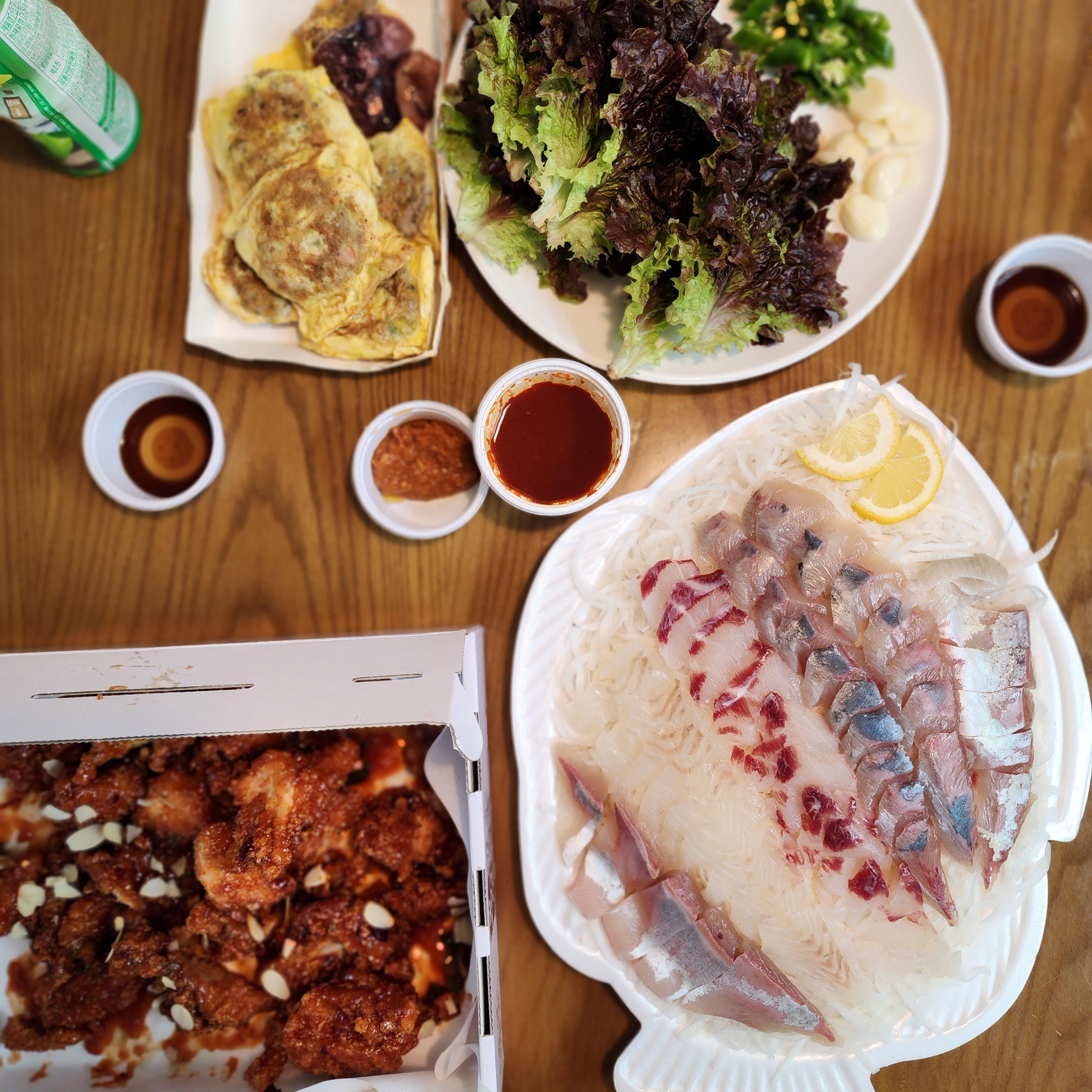 강원도 속초 숙소에서 포장해서 즐기기(회/매운탕/오징어순대/닭강정)