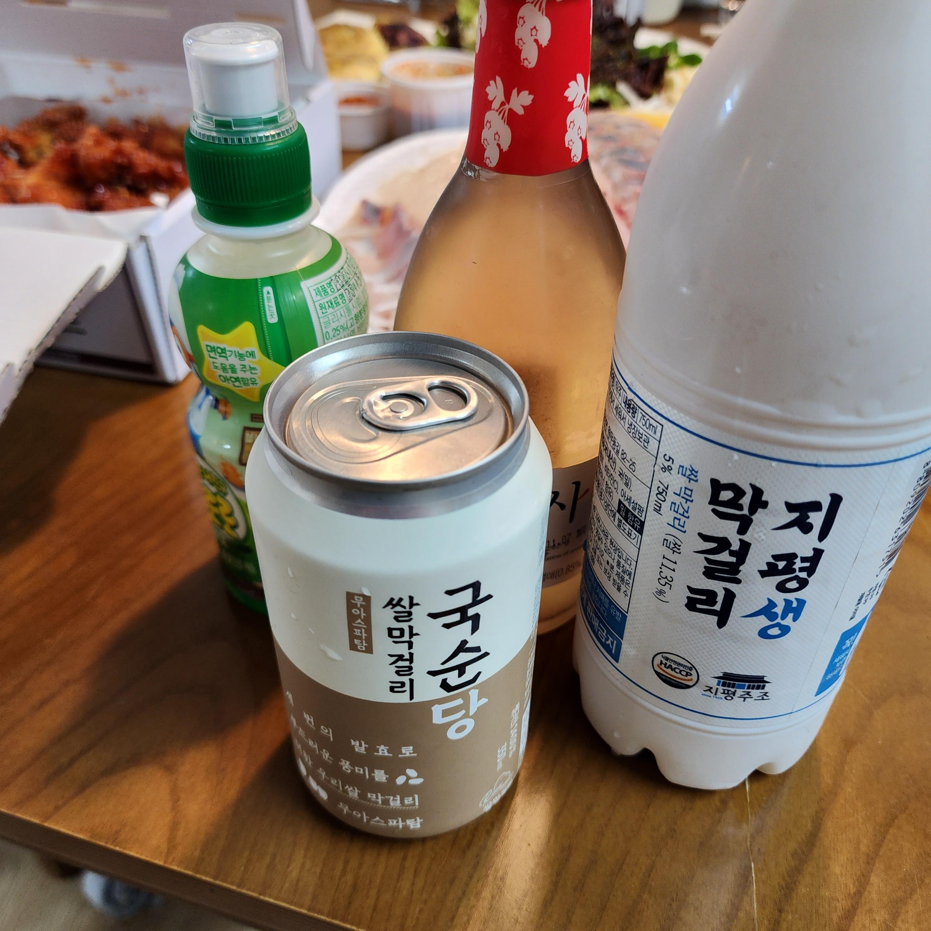 자주 먹는 지평막걸리와 새로 사본 국순당 쌀막걸리를 준비했습니다. 중앙시장 2층 하나로마트에서 구매
