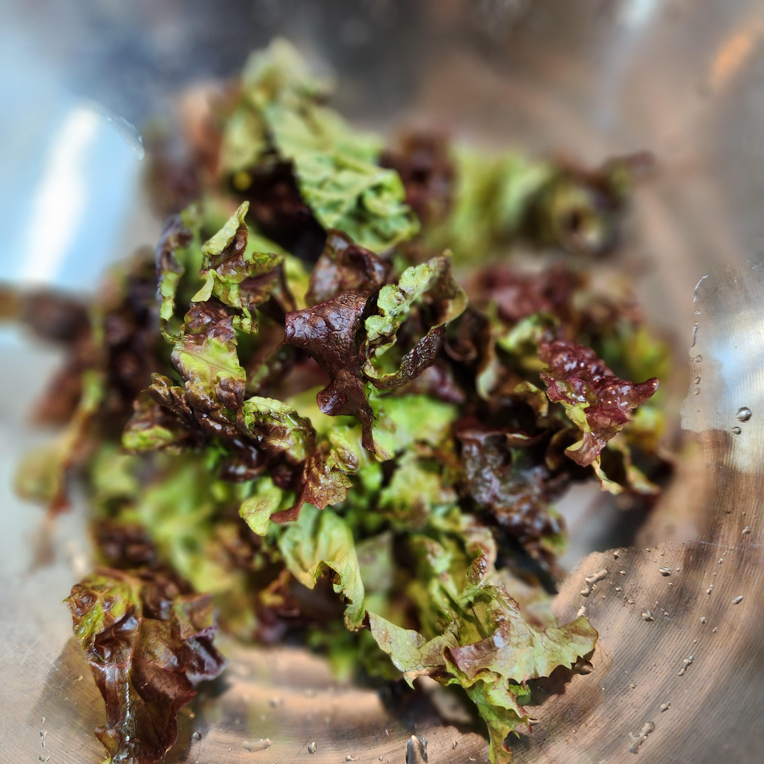 우리 가족이 회를 많이 먹지를 못해 남은 회를 이용해 회덮밥을 만들어보기로 했습니다. 함께 산 상추를 잘게 잘라줍니다.