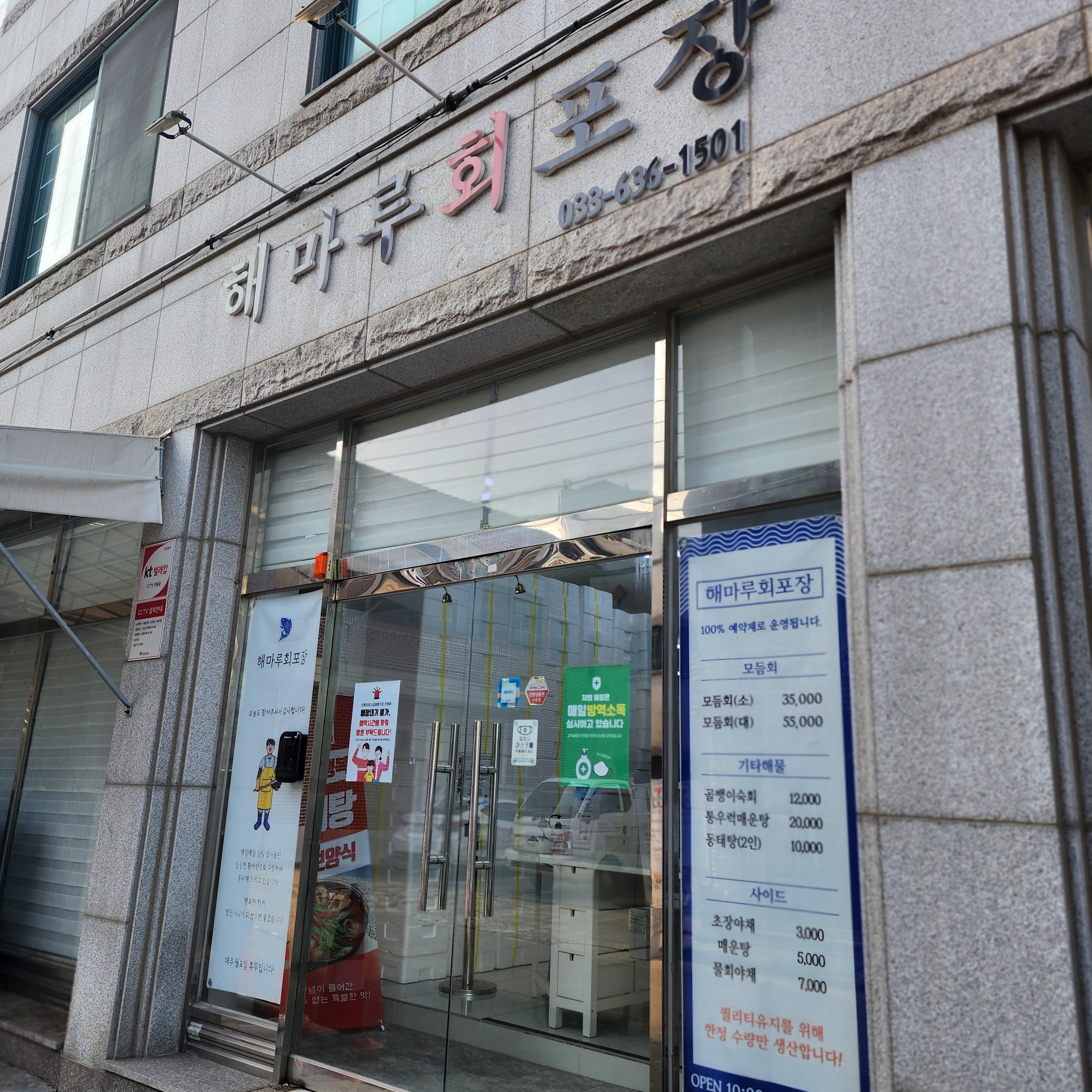 이번에 가고 싶었던 회포장 전문점은 '신유네 회포장'이었는데 미리 예약을 못해 해마루 회포장으로 방문했습니다. 신유네 회포장을 방문해보지는 않았지만 새우와 멍게가 들어가 있는 것 같습니다. 다음에는 신유네에 가보겠습니다. 해마루회포장은 도착 30분 전에 전화하면 바로 픽업할 수 있습니다.