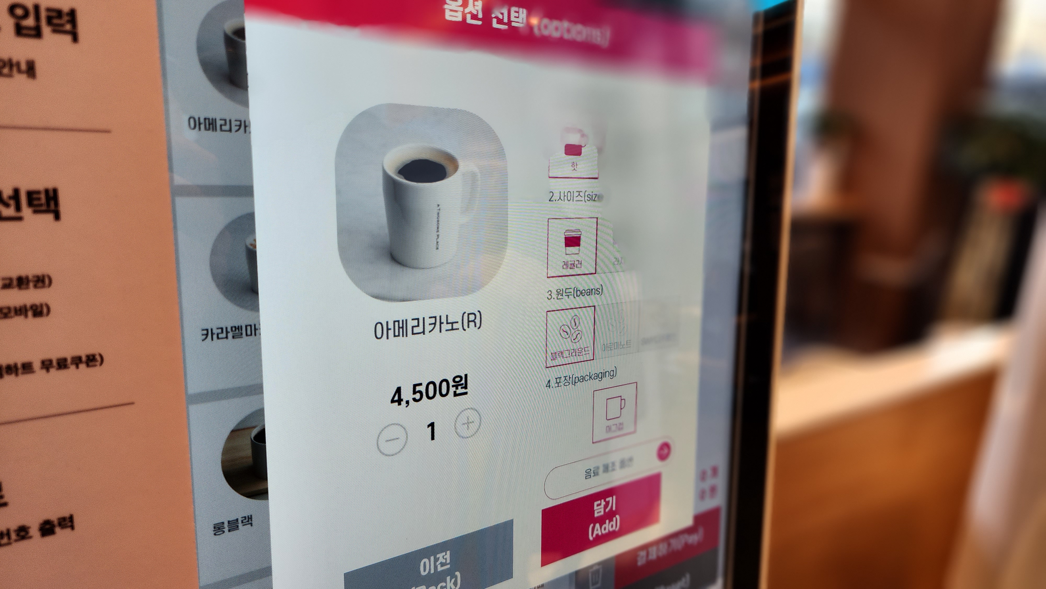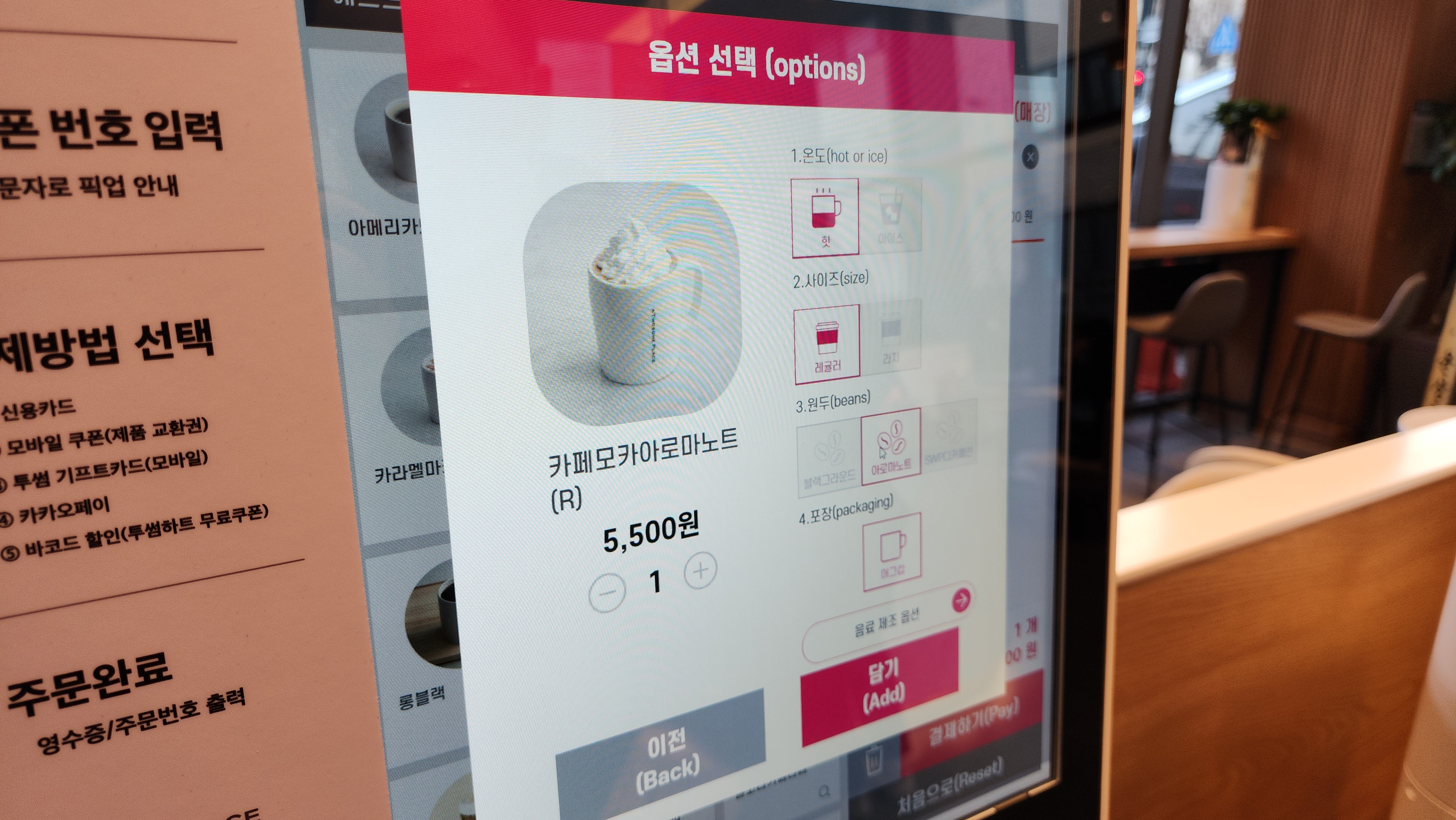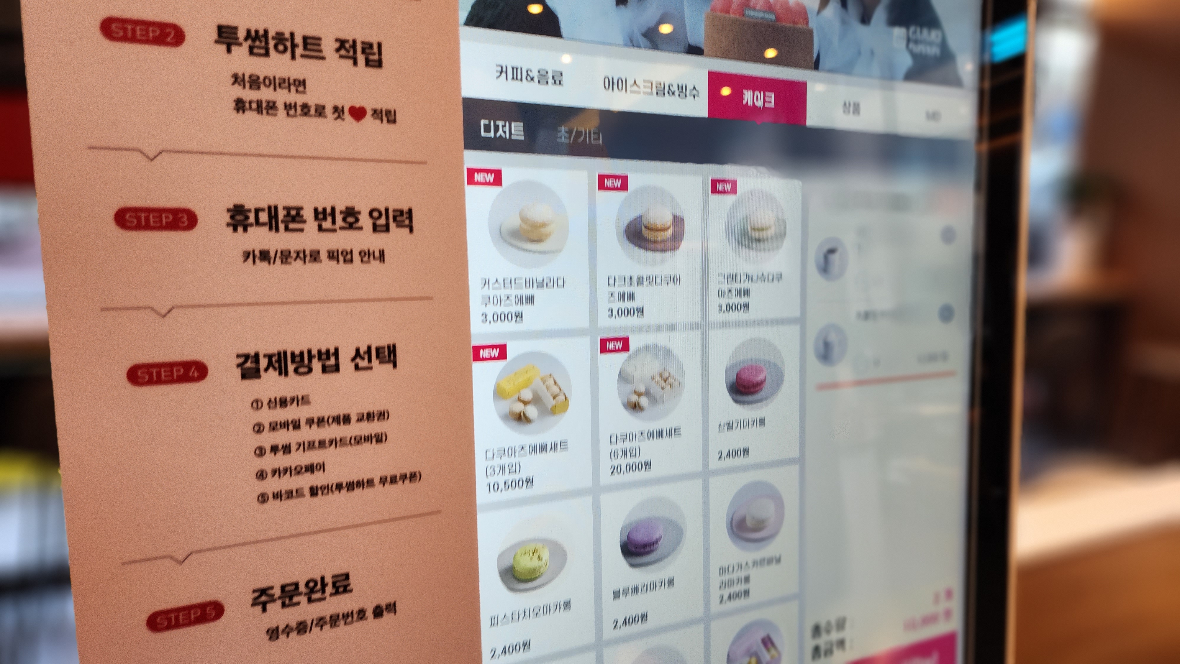 주문은 키오스크로 해도 되고 데스크에서 해도 됩니다.