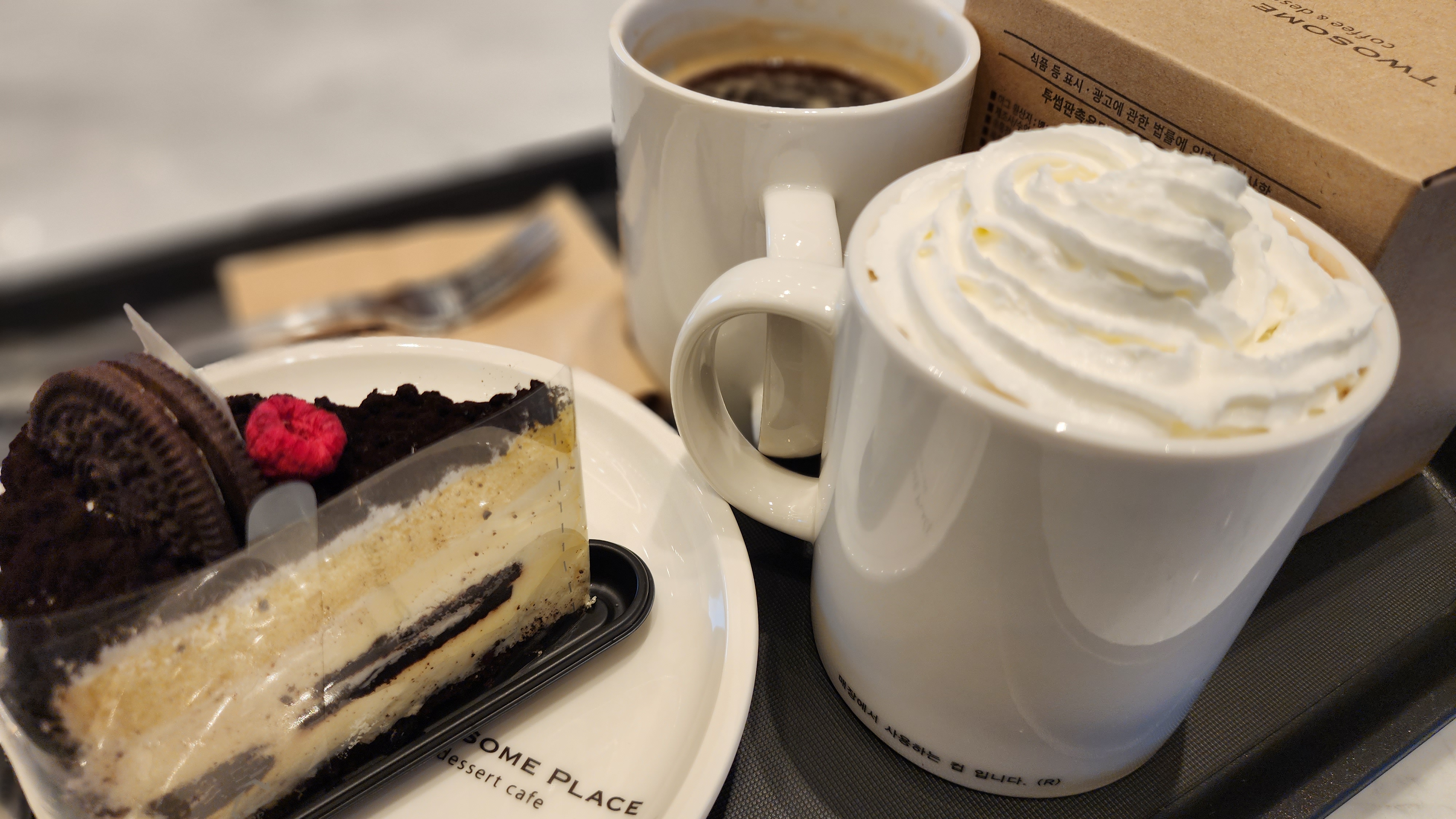조각케이크는 키오스크로 주문을 할 수 없어 데스크에서 따로 주문을 했는데