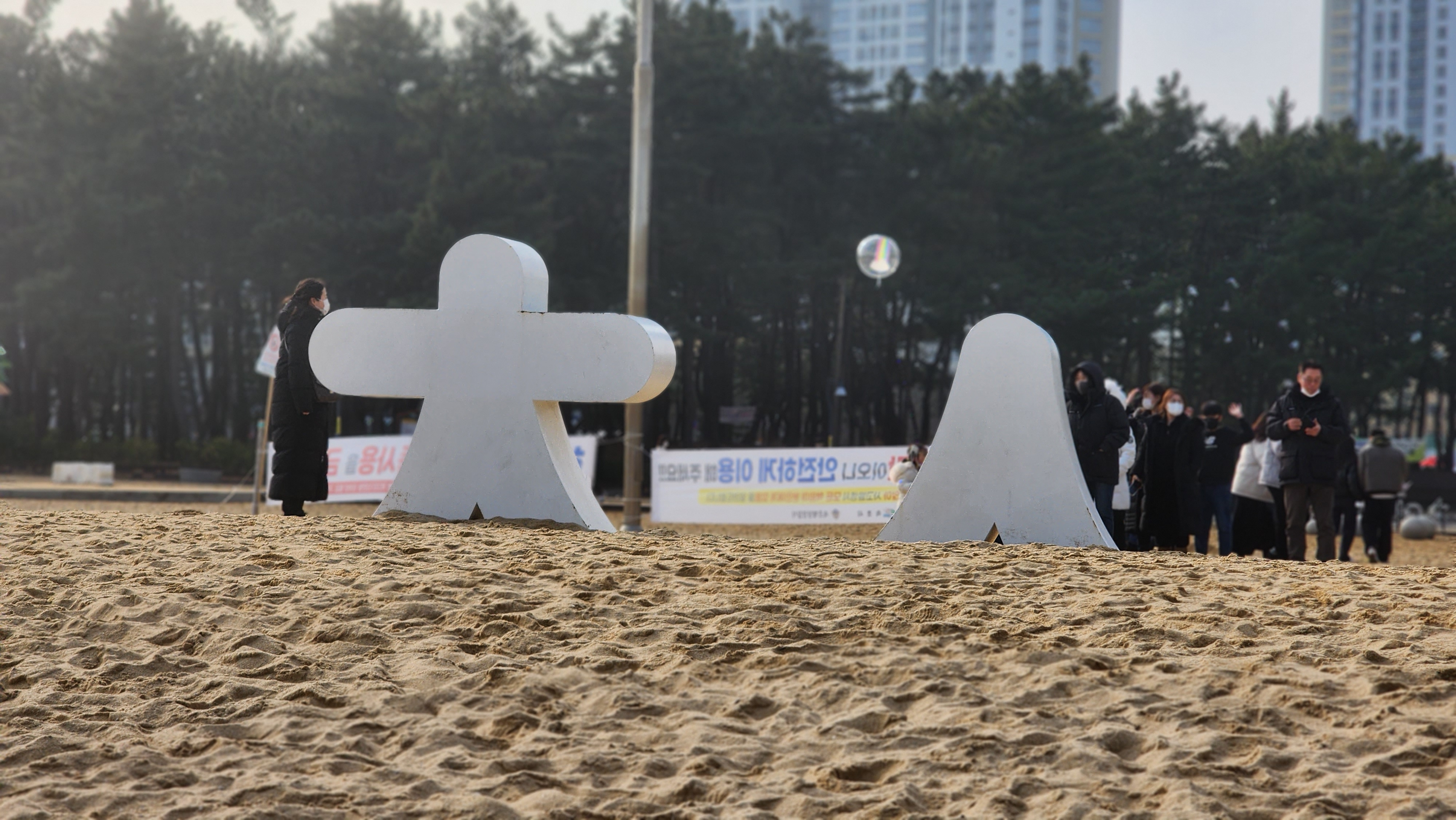 오히려 속초해수욕장에 있는 초성으로 된 'ㅅㅊ' 조형물앞에 더 많은 사람들이 있었습니다. 이것도 줄이 길어 우리는 뒤에서 찍어 'ㅊㅅ'로 보입니다. 이렇게 간단히 사진을 찍고 88 생선구이를 먹으러 갔습니다.