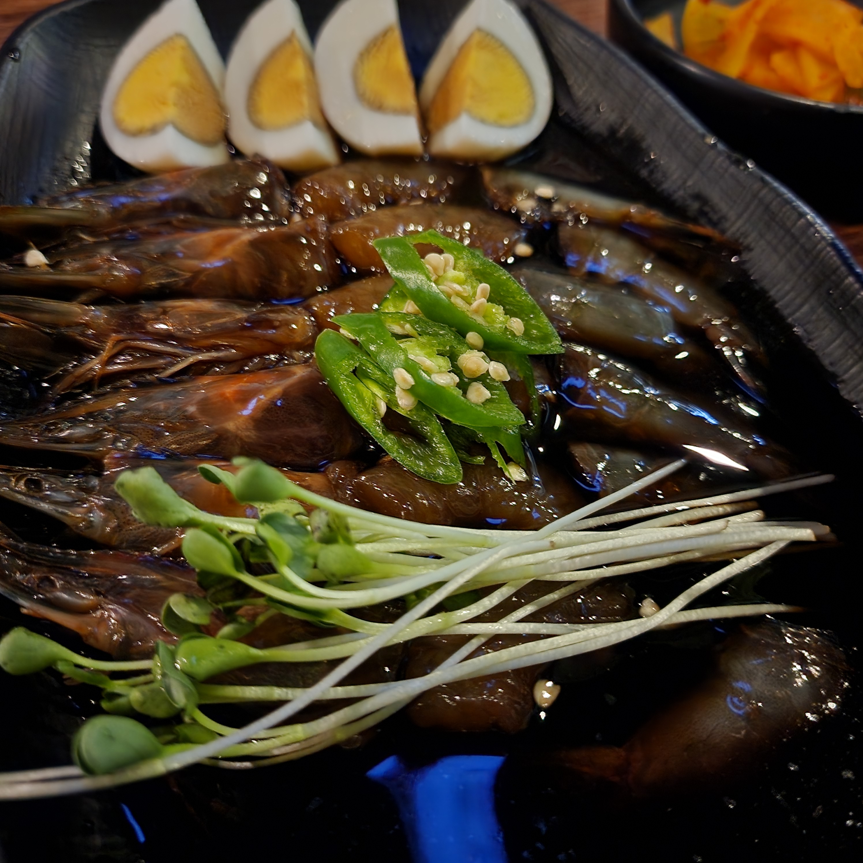 간장새우에는 무순과 삶은 계란이 들어가 있고 새우는 8마리였습니다. 버터구이도 8마리로 머리와 분리되어 나옵니다. 지인은 강추를 하며 간장새우를 추천하여 먹어봤는데 다른 곳보다 조금 덜 물컹거리는 느낌이였고 잡내는 전혀 없었습니다.
