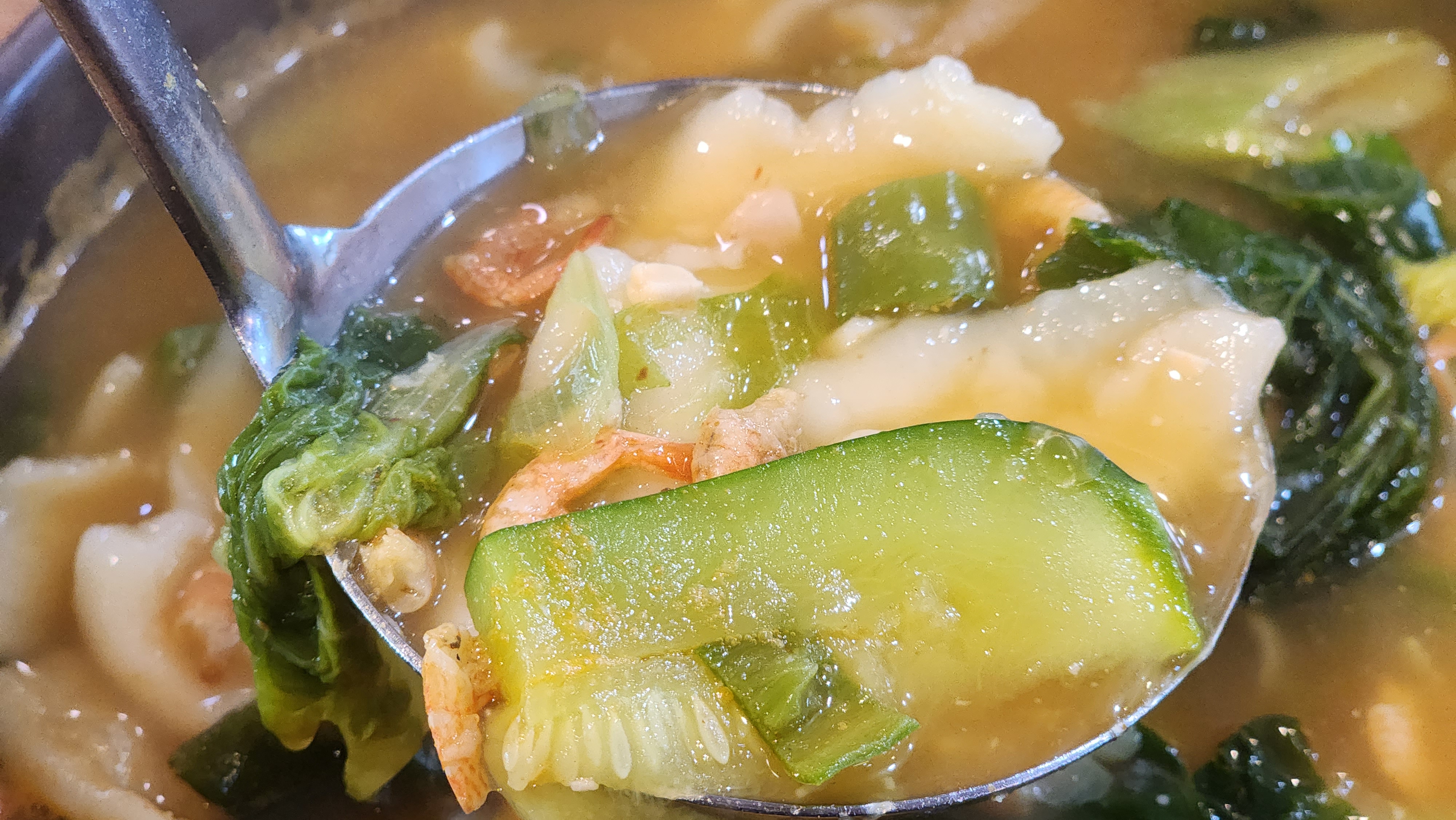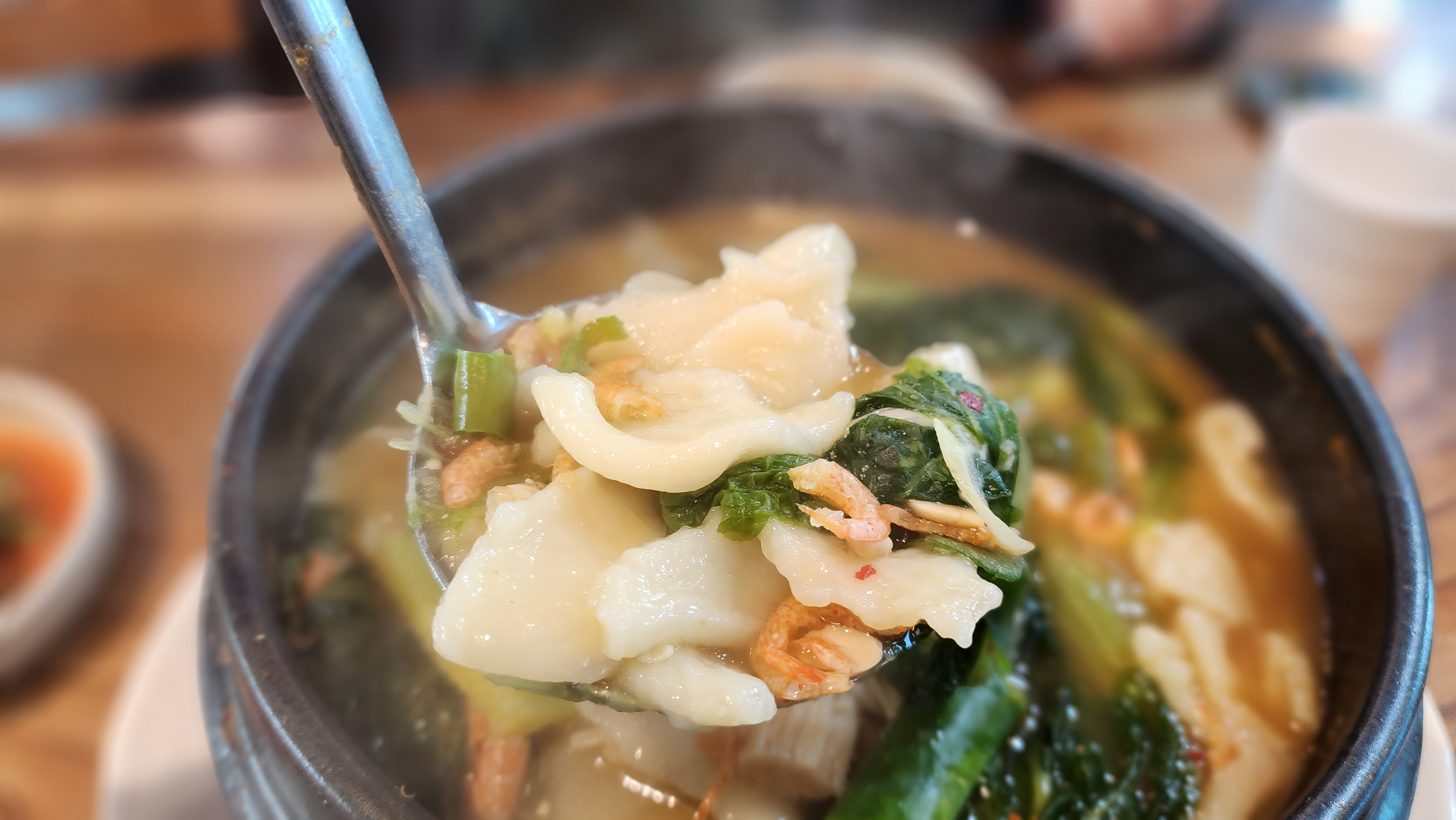 사진으로 양이 작아 보일 수 있지만 2명이 먹을 수 있는 양이 아닙니다. 이렇게 큰 뚝배기가 있어 놀라고 수제비양에 놀랍니다. 모든 재료가 엄청 들어가 있어 시원하면서 구수한 맛을 내고 수제비 반죽도 잘해서인지 얇고 맛있습니다.