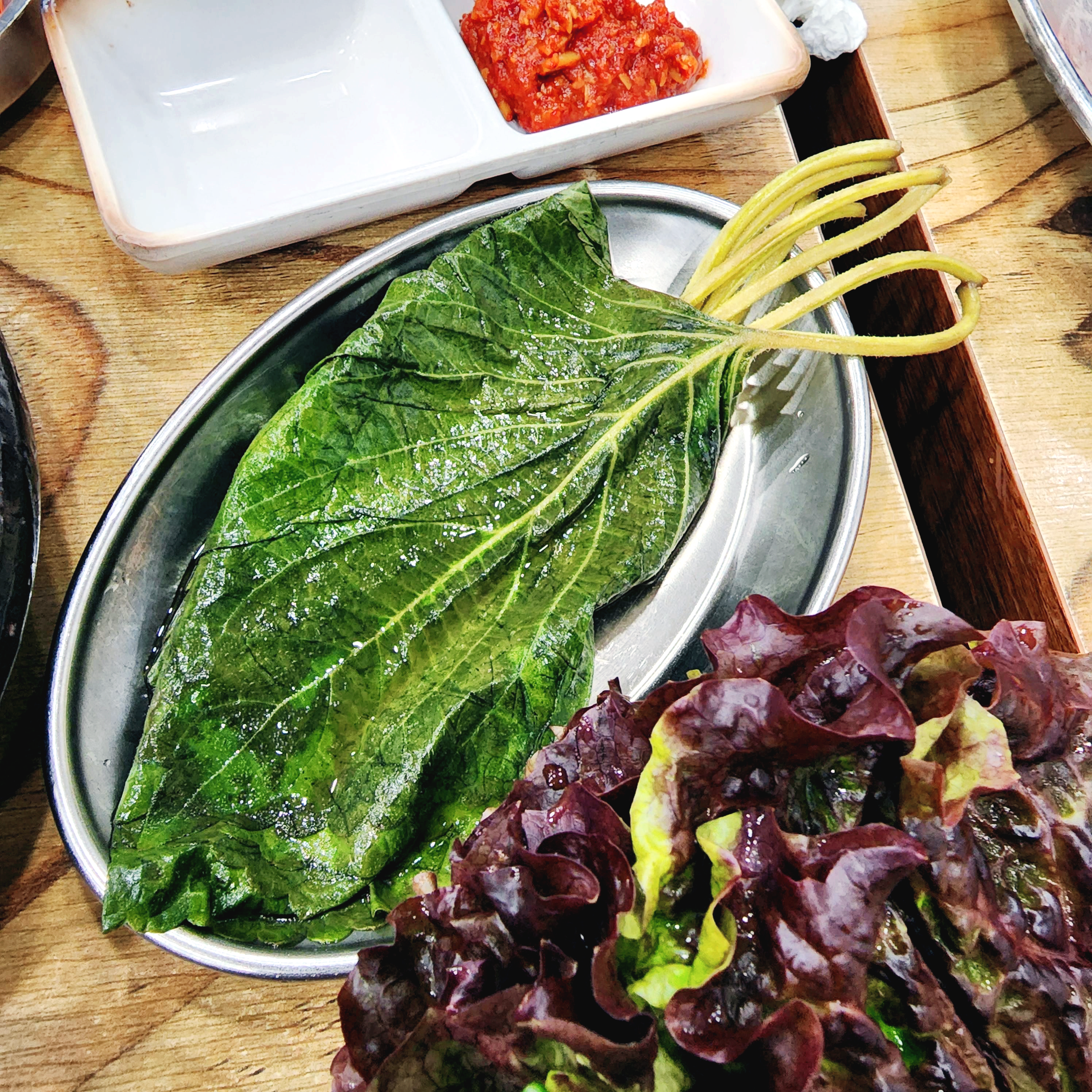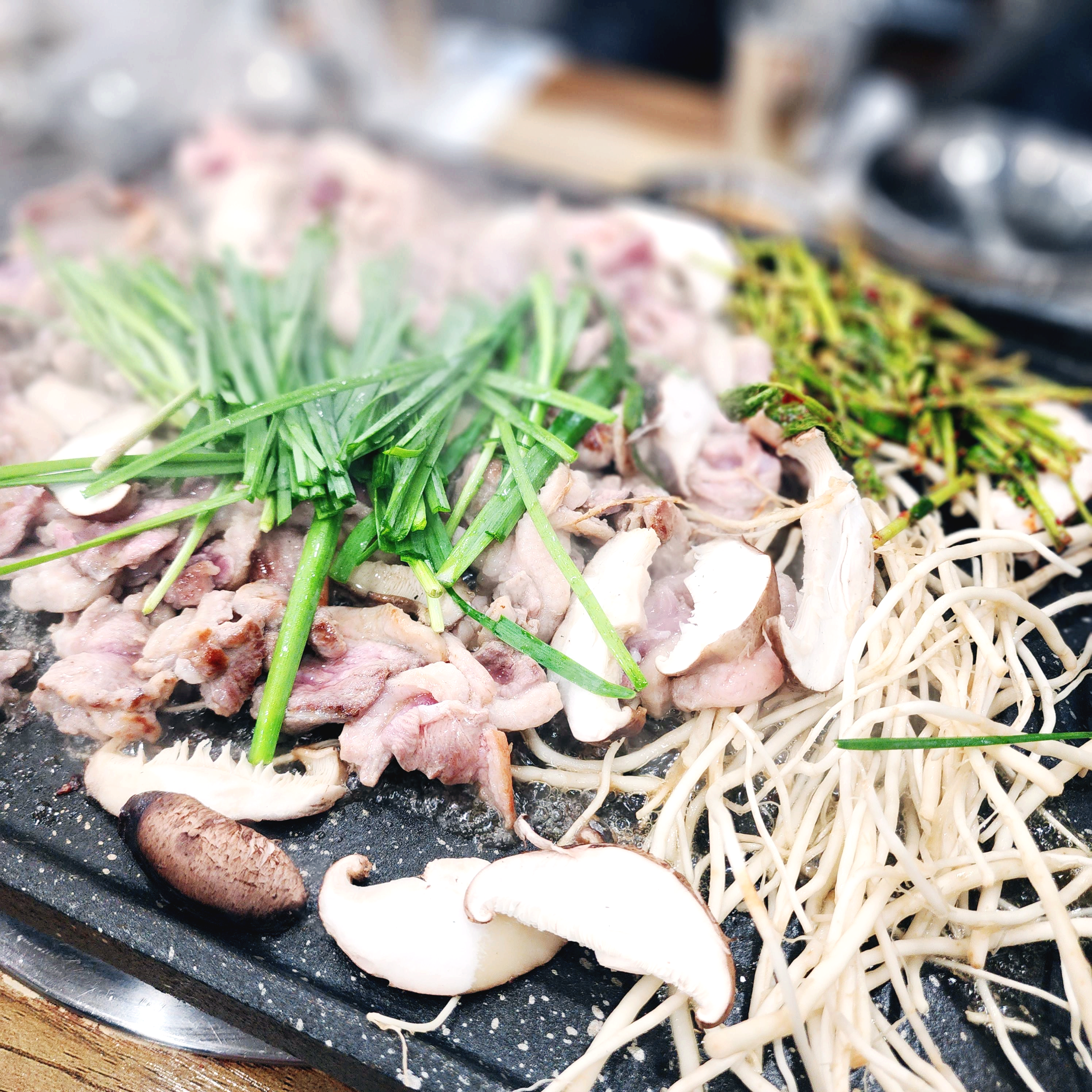 추가메뉴에 속하지 않은 부추와 미나리는 리필했습니다.