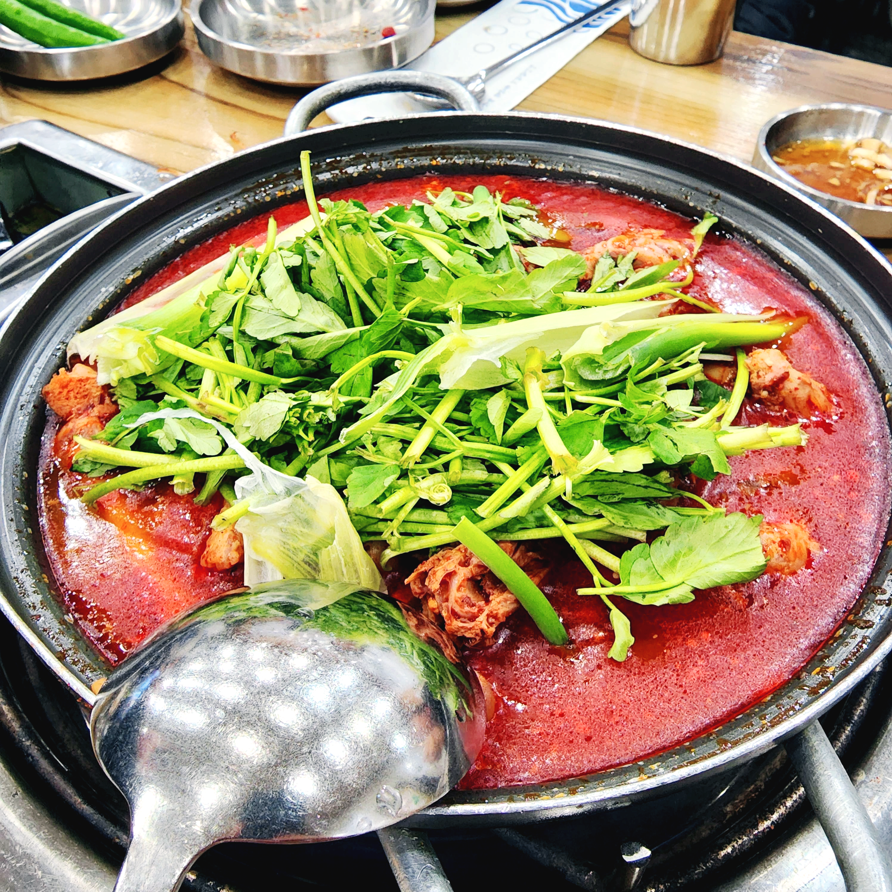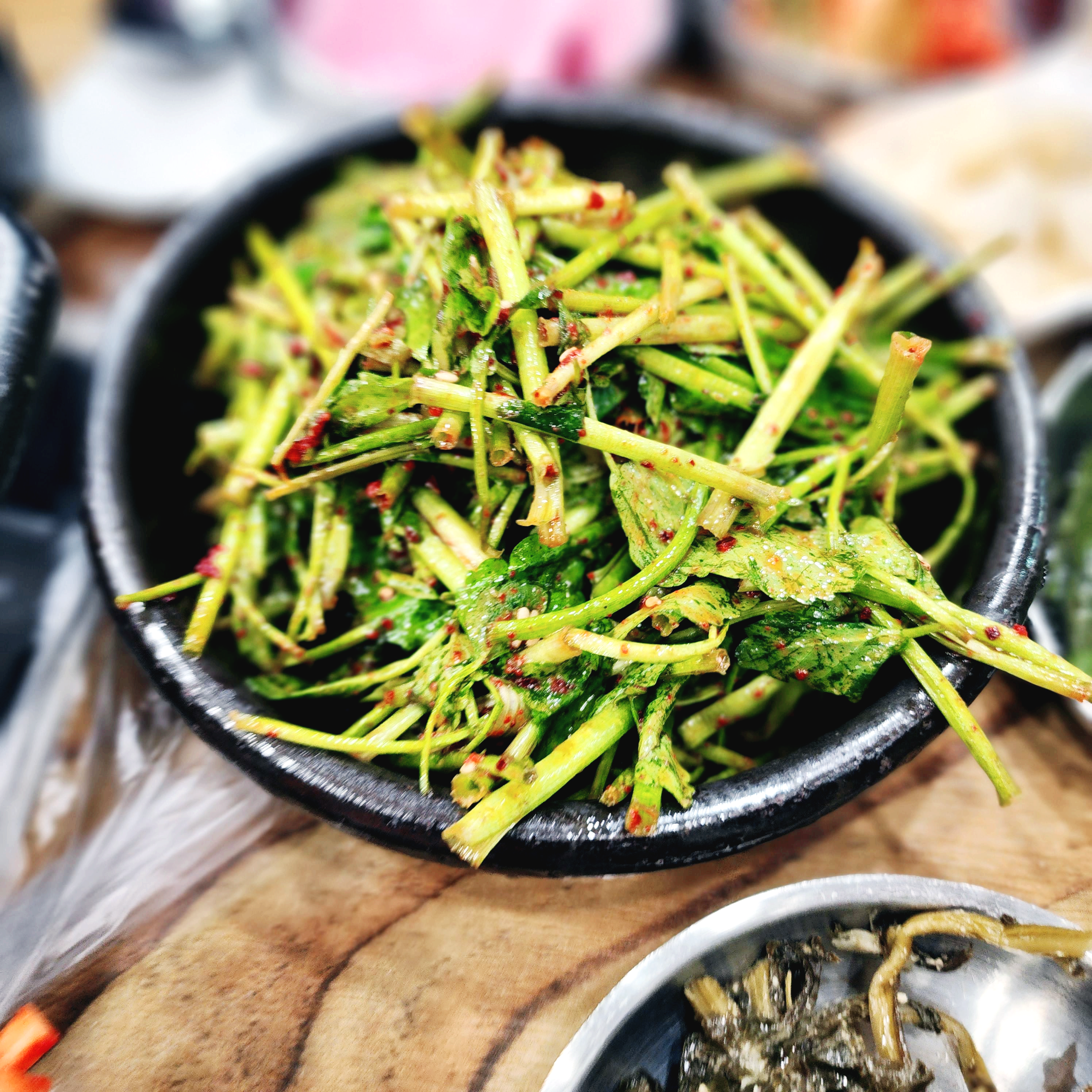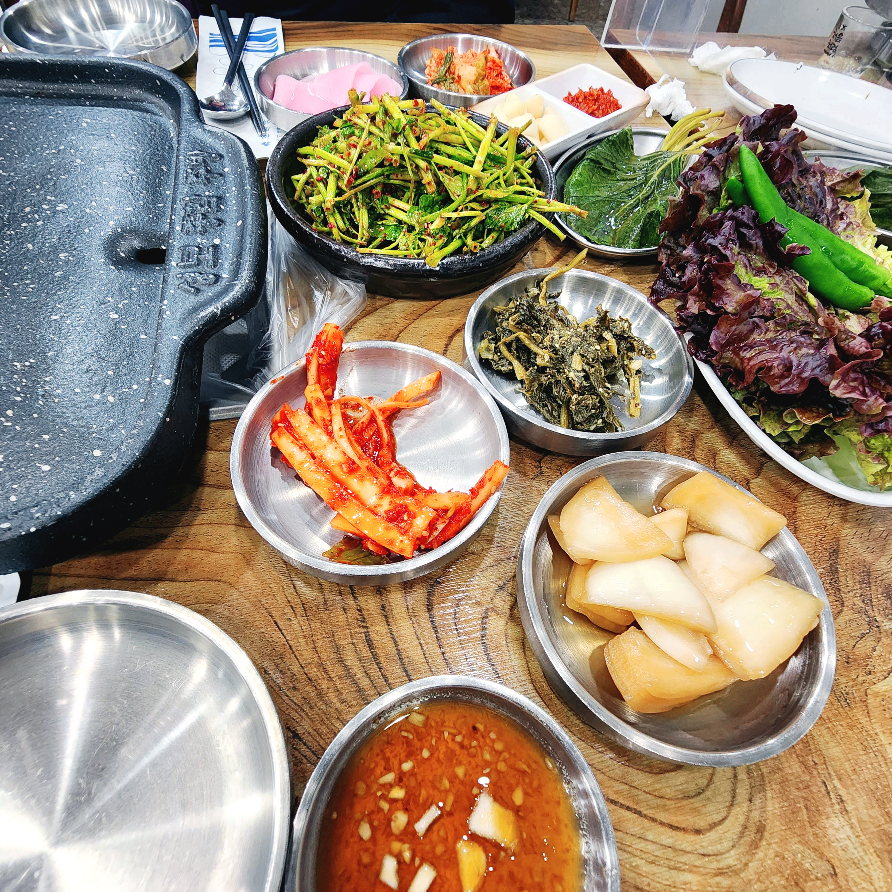 추가메뉴에 속하지 않은 부추와 미나리는 리필했습니다.