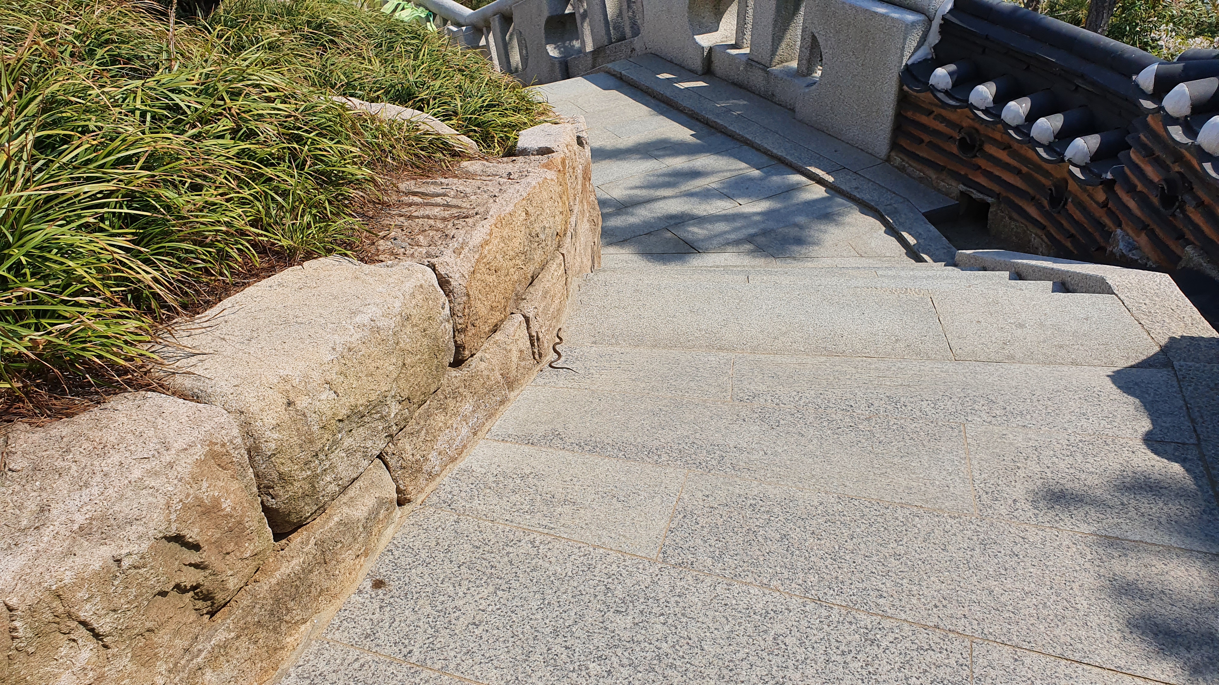해사관음상으로 가는 길에 돌담밑에 뱀도 보이니 조심해서 이동하세요. 독사는 아니고 구렁이 같습니다.