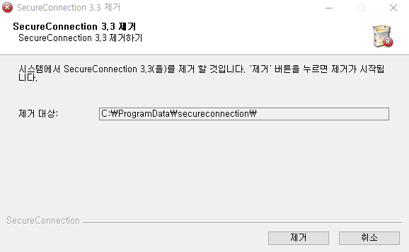 무슨 보안프로그램이나 인터넷 연결에 관련되어 있고 아무런 해가 없는 것처럼 파일이 올라가 있습니다. 이제 이 파일을 삭제해주면 해결됩니다. 위에 있는 '제거/변경'을 누르거나 키보드'delete'를 눌러 삭제합니다.