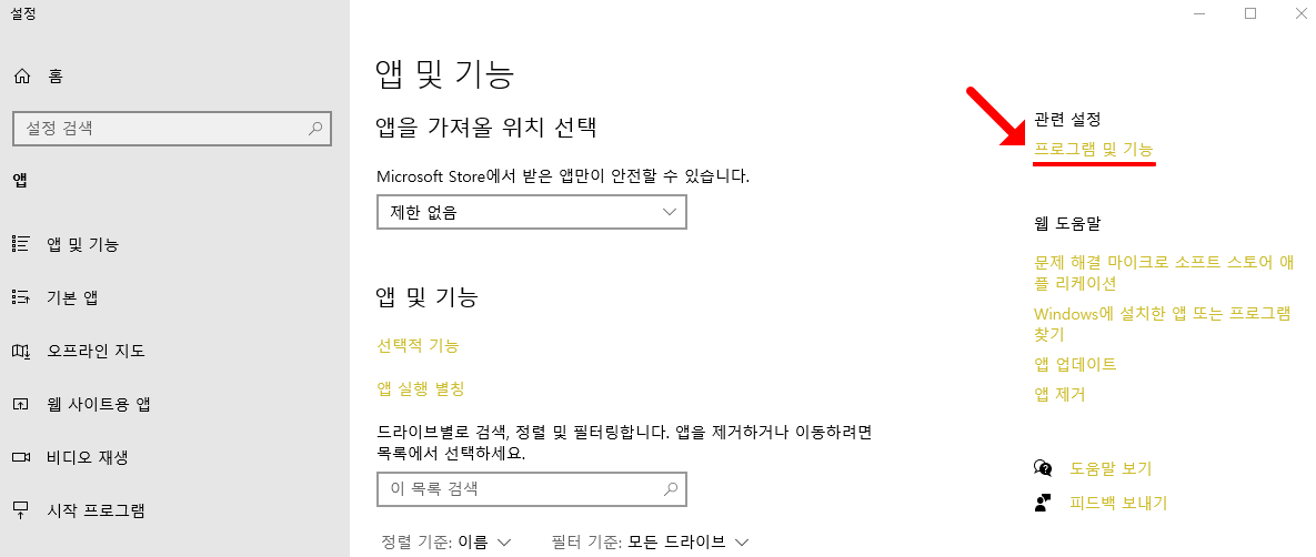 검색으로 '프로그램 추가/제거'를 입력하면 위에 있는 이미지대로 뜹니다.