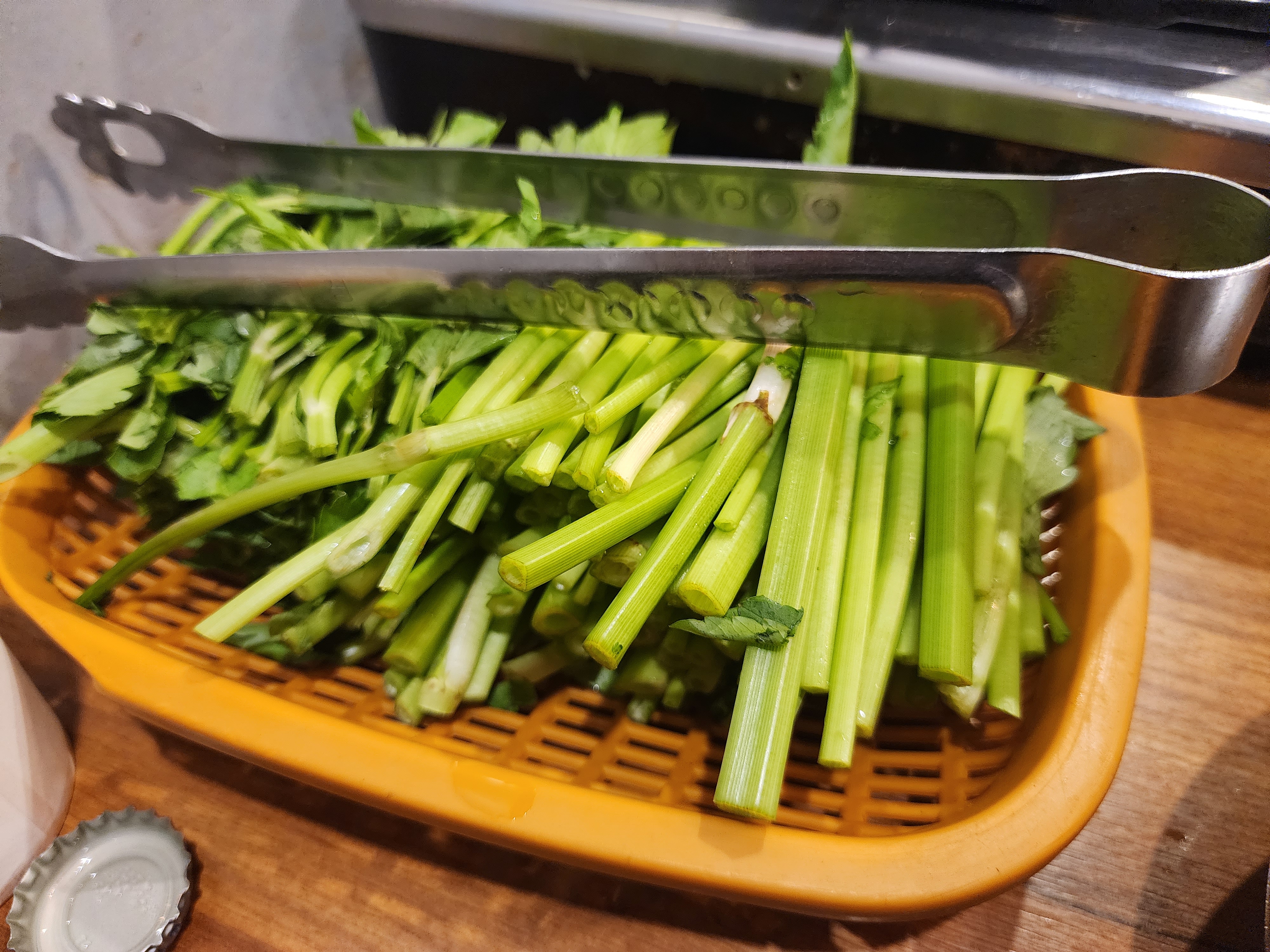 기다리면서 메뉴를 미리 주문을 하여 앉자마자 주문한 음식이 나옵니다. 국물이 아주 고소하고 맛이 있는데 이 맛은 예전에 한창 많았던 강릉집 회무침에 나오는 들깨미역국과 비슷한 식감과 맛이 났습니다. 미나리와 육수는 리필이 안되고 추가로 주문해야 되는데 추가를 안 해도 될 정도로 양이 많이 나옵니다. 오리는 부드럽고 담백했습니다.