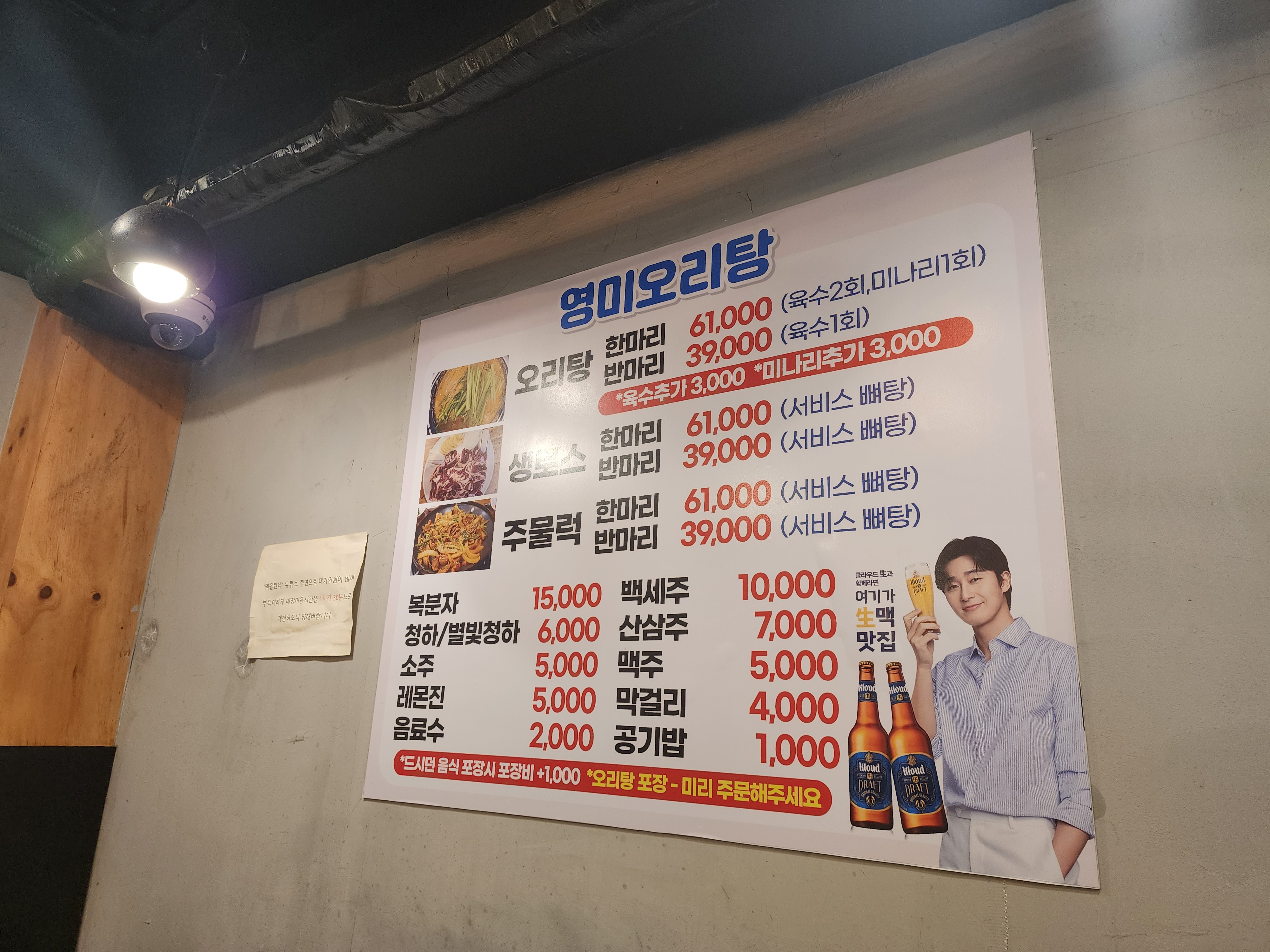 영미오리탕을 많이 추천을 해주셨는데 1시간 10분 이상을 웨이팅을 하고 들어가니 그 정도는 아니다고 느꼈습니다. 앞에 1팀밖에 없는데 평일 저녁에 방문해서 1시간을 초과하여 다음 장소 시간이 축소가 되다 보니 이 정도 기다리고 먹을 정도는 아니고 웨이팅 없이 간다면 보양식으로 맛있게 먹을 수 있는 곳입니다. 맛집 추천은 하되 기다리지 마세요~