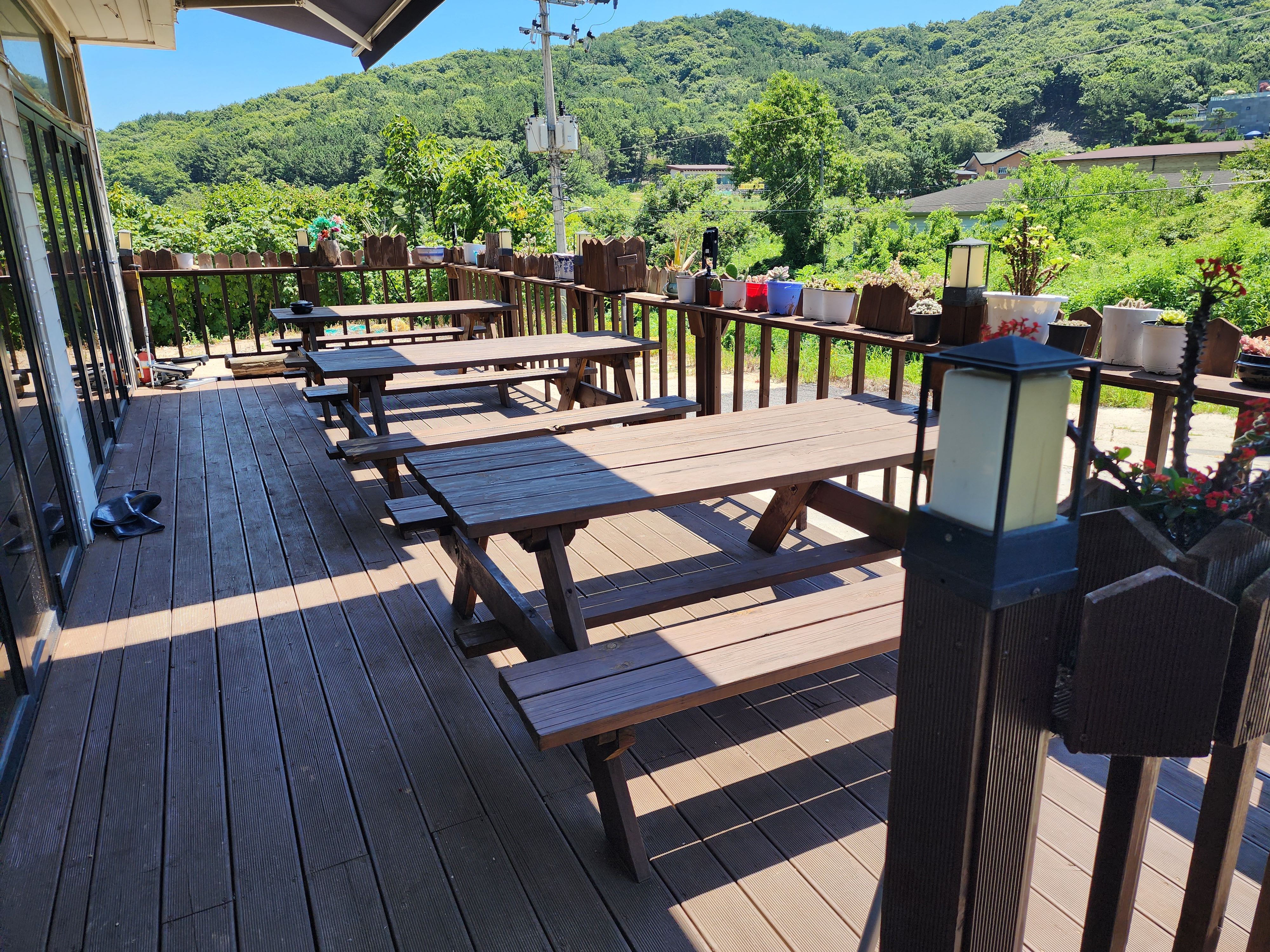 그늘막보다는 설치되어 있는 파라솔을 15,000원을 지불하고 해변에서 가까운 앞자리에 자리를 했습니다. 뒷편에는 방갈로와 앞쪽에 데크는 40,000원이였던 것 같습니다.