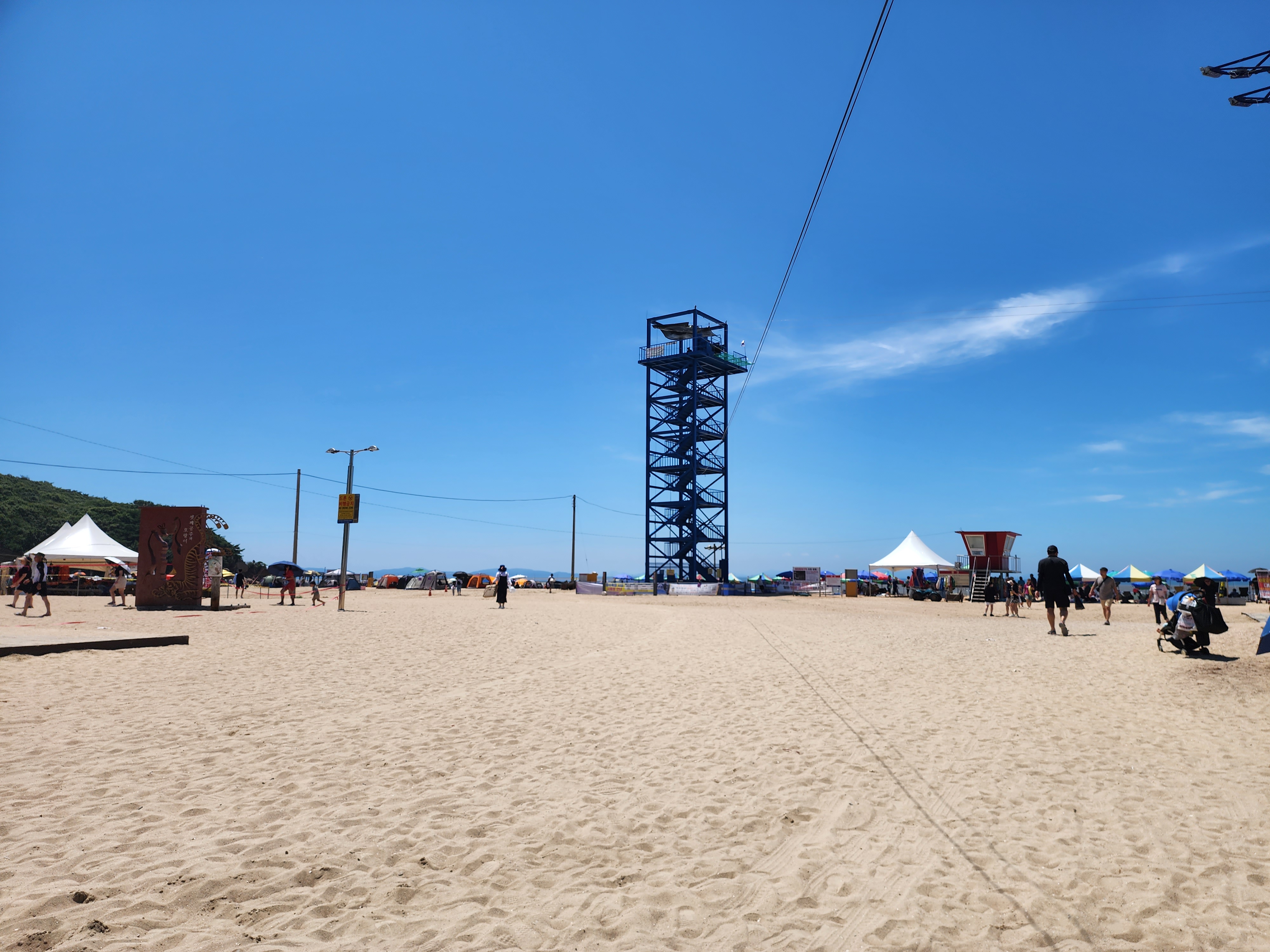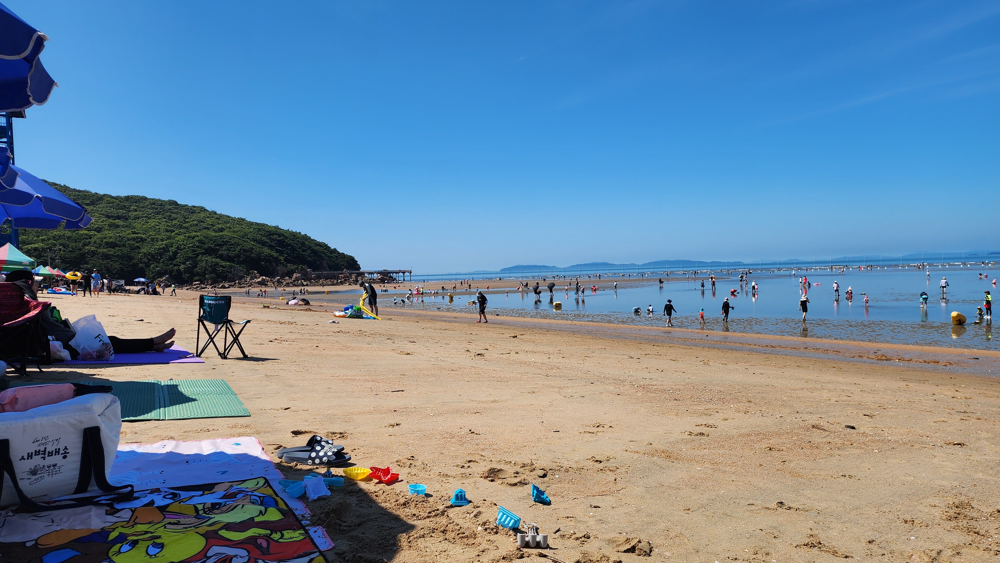 이렇게 가깝게 위치해 있지만 서해는 물놀이를 2~3시간 후에는 밀물로 물이 나가고 다시 썰물이 되어 들어갈 수 있을때는 10시간 이상 걸리다보니 인기가 없는게 아닐까 싶습니다. 하지만 아이들이 있다면 모래놀이도 하고 적당히 물놀이도 하고 돌아오는 길에 저녁도 해결하고 오면 되는 당일치기를 할 수 있는 해변으로 괜찮았습니다.