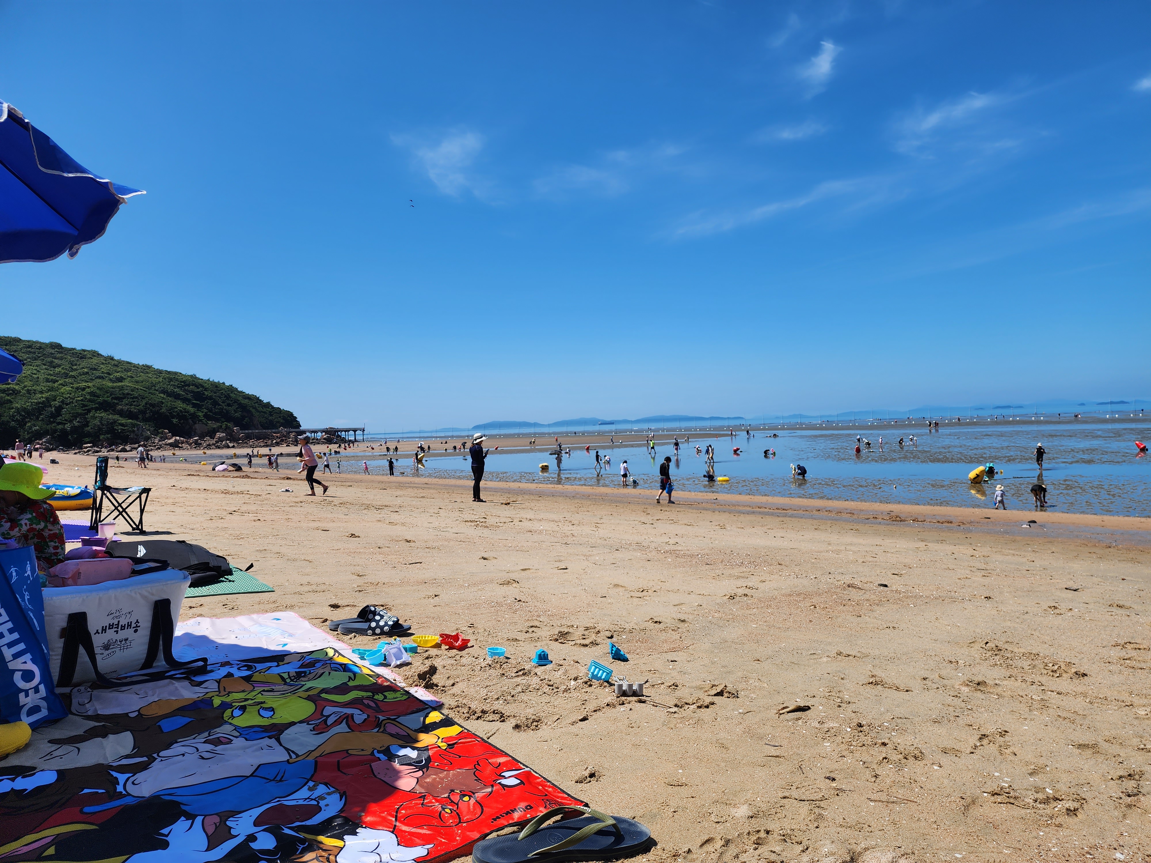 이렇게 가깝게 위치해 있지만 서해는 물놀이를 2~3시간 후에는 밀물로 물이 나가고 다시 썰물이 되어 들어갈 수 있을때는 10시간 이상 걸리다보니 인기가 없는게 아닐까 싶습니다. 하지만 아이들이 있다면 모래놀이도 하고 적당히 물놀이도 하고 돌아오는 길에 저녁도 해결하고 오면 되는 당일치기를 할 수 있는 해변으로 괜찮았습니다.
