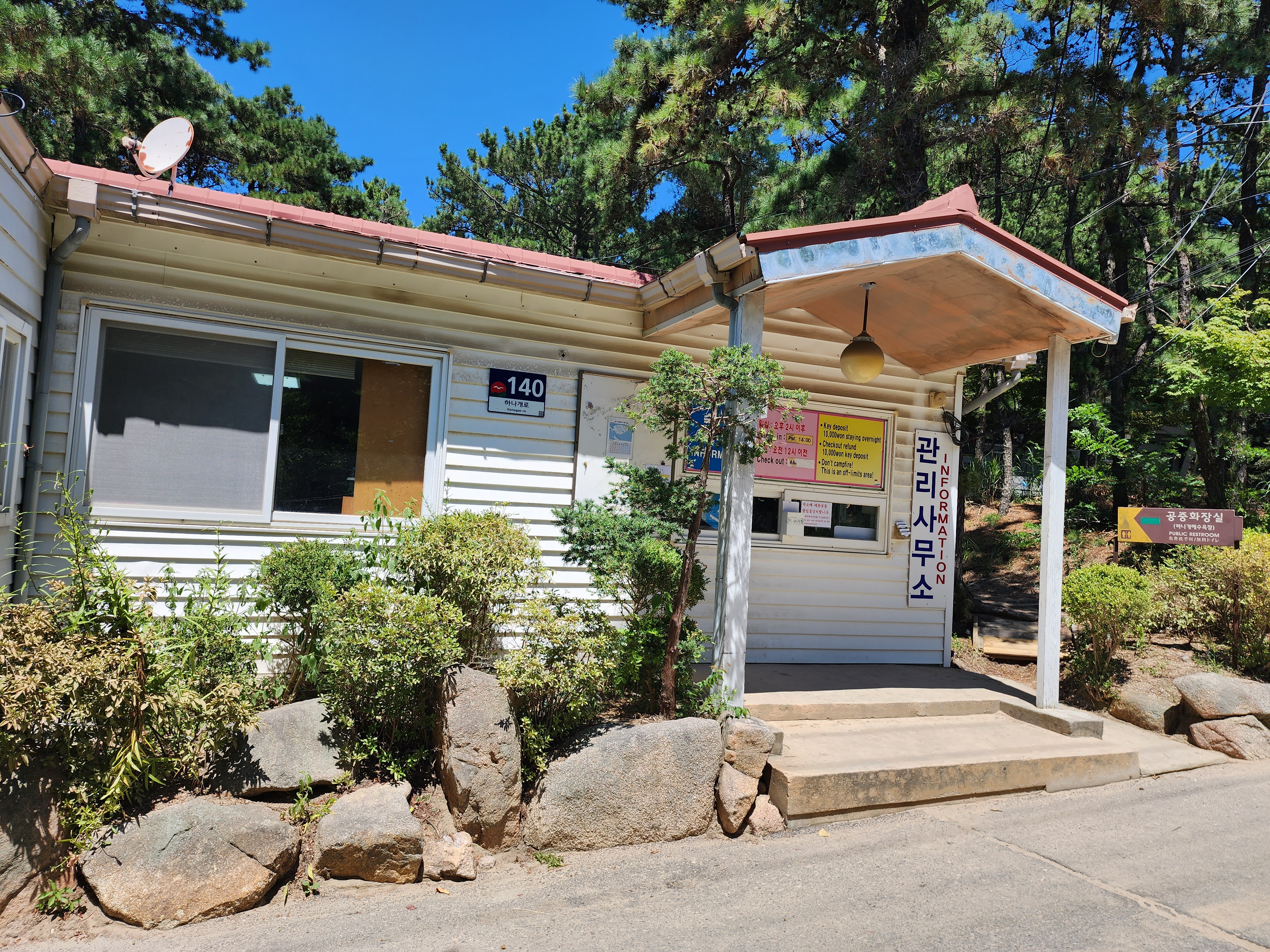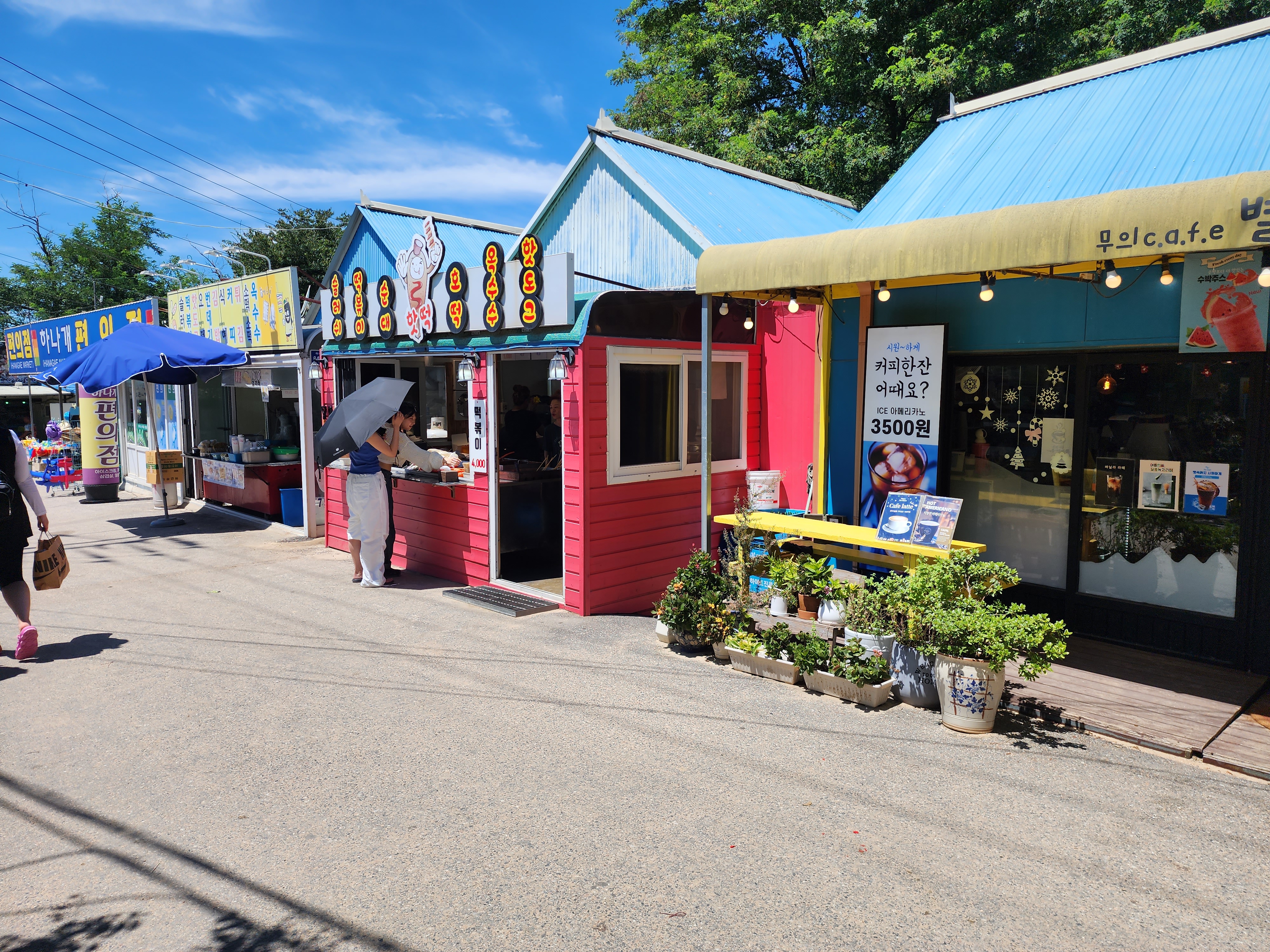 이번에는 해수욕장 앞에 있는 이마트 편의점에 주차를 하고 정문으로 들어갔습니다. 정문에서 멀지 않게 관리사무소와 상가들이 보이고 해변으로 들어갈 수 있습니다.