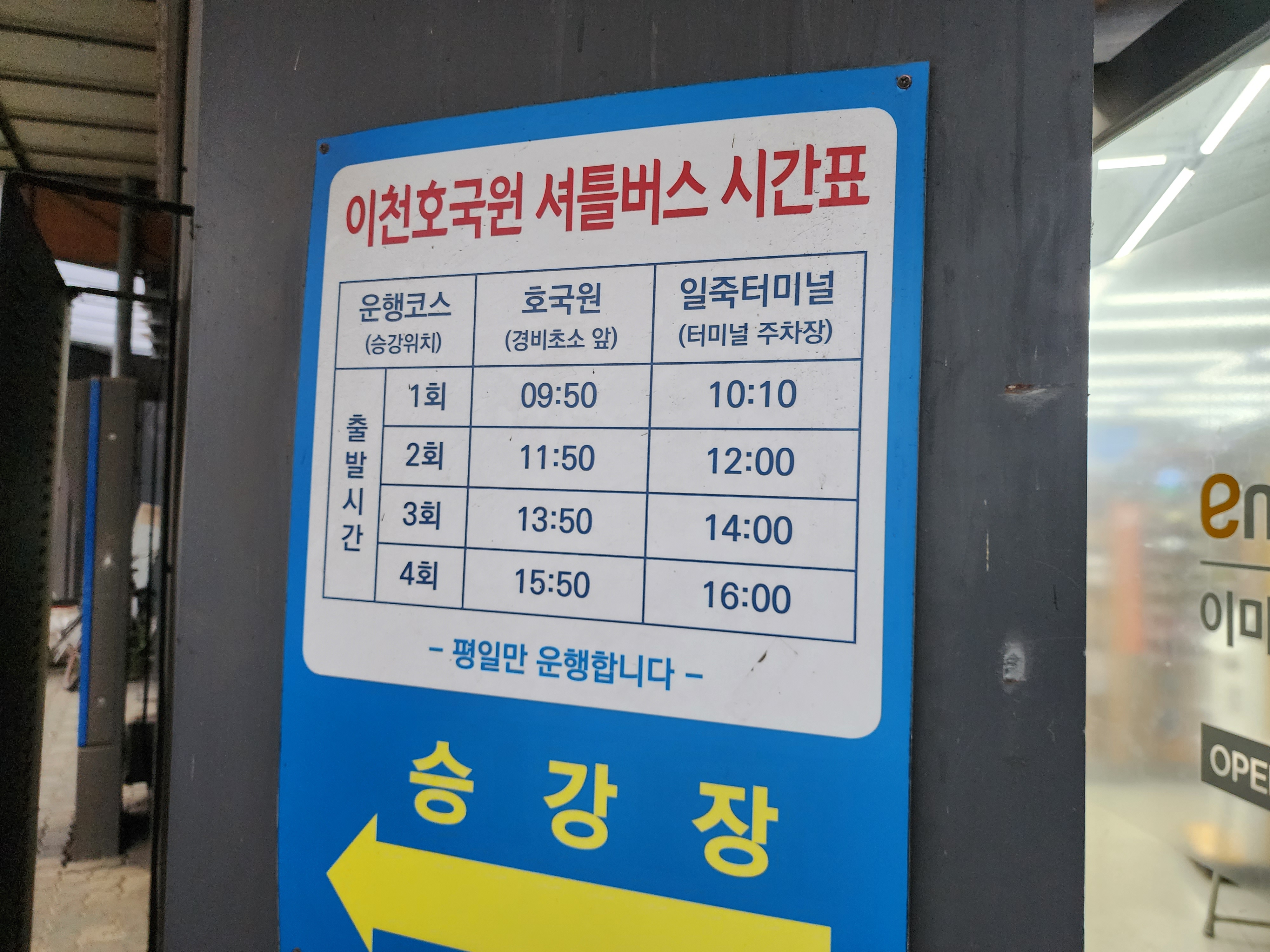 | 이천 | 08 : 15 11 : 45 14 : 15 16 : 35 17 : 35 |
