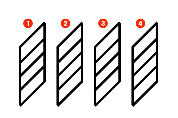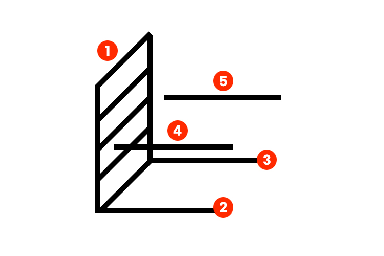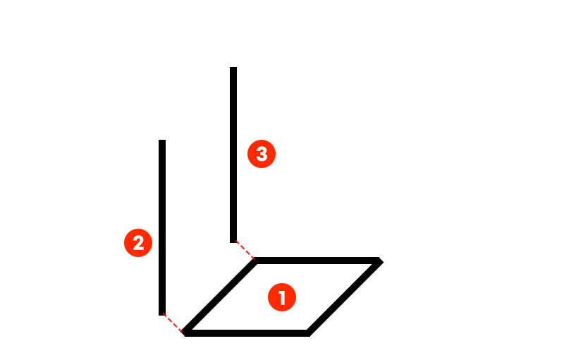 ①바닥 → ② 기둥 1번 →③ 기둥 2번 → ④ 측면 → ⑤ 기둥