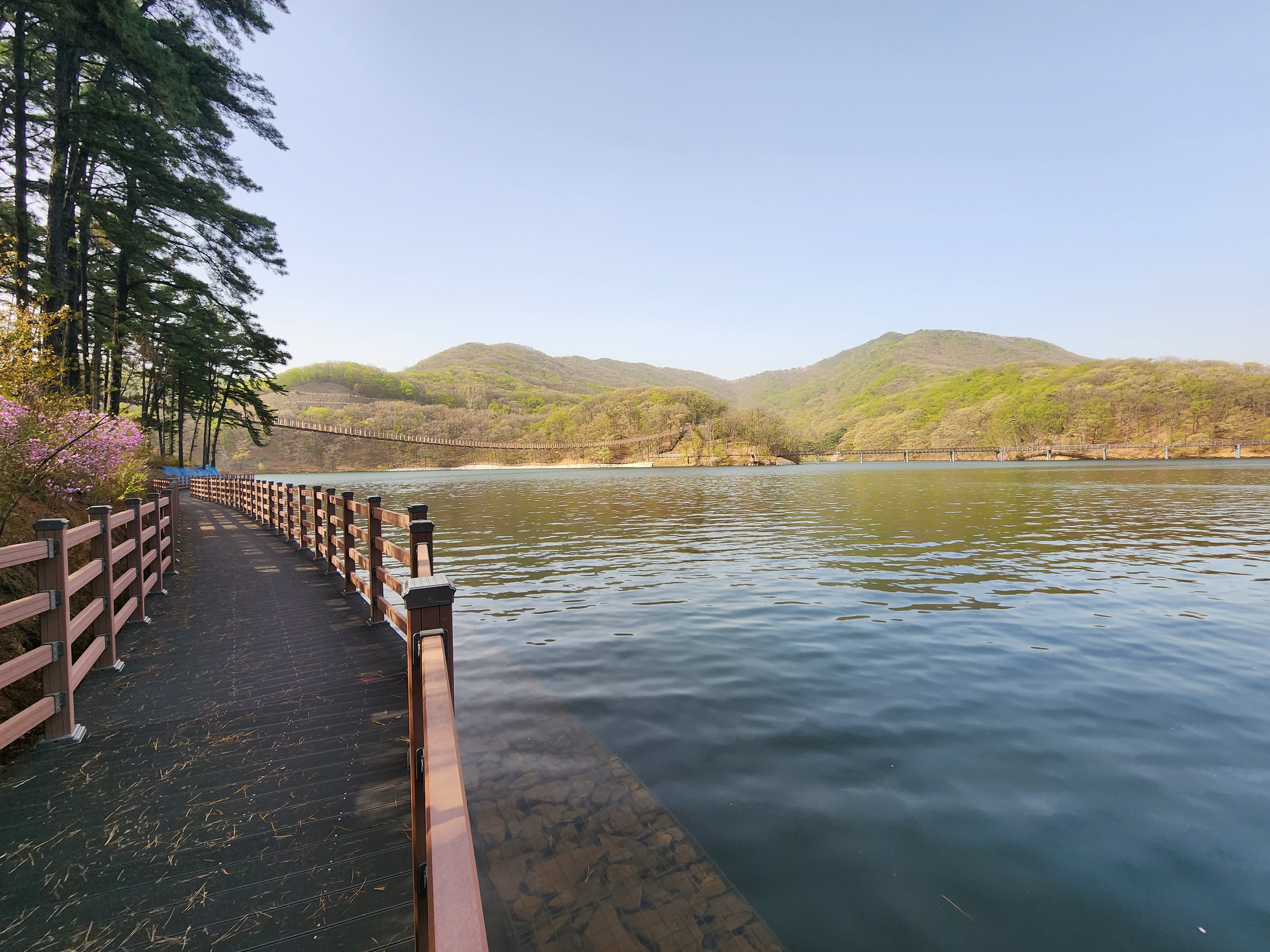 주차장이 넓지 않아 주말에 간다면 주차하는데 오래 걸리게 됩니다. 출렁다리와 가까운 주차장이 가장 붐비기 때문에 출렁다리와 멀리 있는 주차장일수록 주차하기가 편합니다. 출렁다리 가까이 주차를 할 필요가 없는 이유는 어차피 호수를 한 바퀴 돌고 주차한 곳에서 끝내면 되기 때문에 편한 곳에 주차를 해도 괜찮습니다.