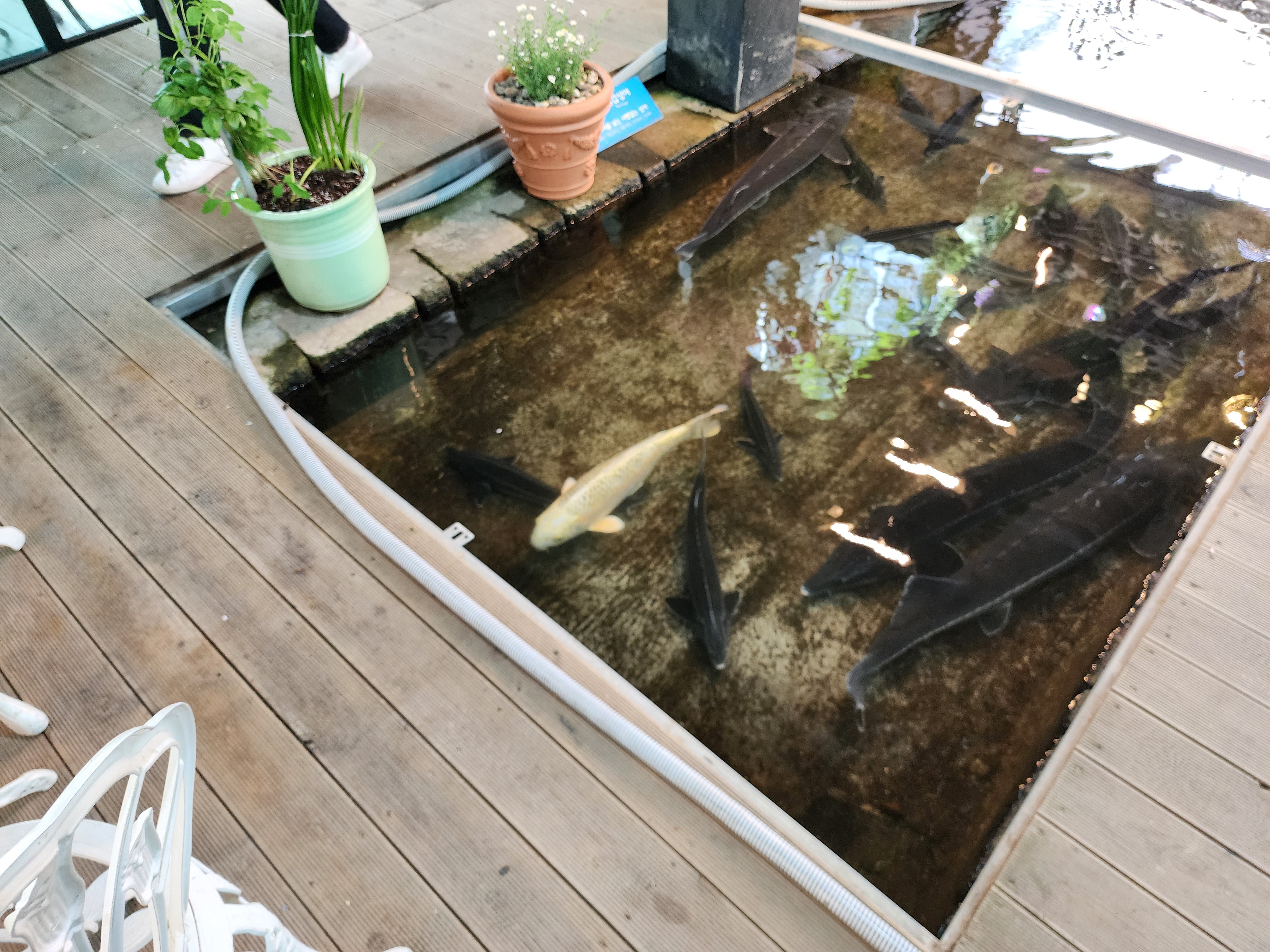공사중이라서 그런 것인지 모르겠지만 산책로에서 상가를 통과를 해야 갈 수 있도록 길이 만들어져 있습니다. 상술이라는 느낌이 있었으나 보기 어려운 철갑상어를 볼 수 있어 수족관을 지나는 느낌이 들었습니다.