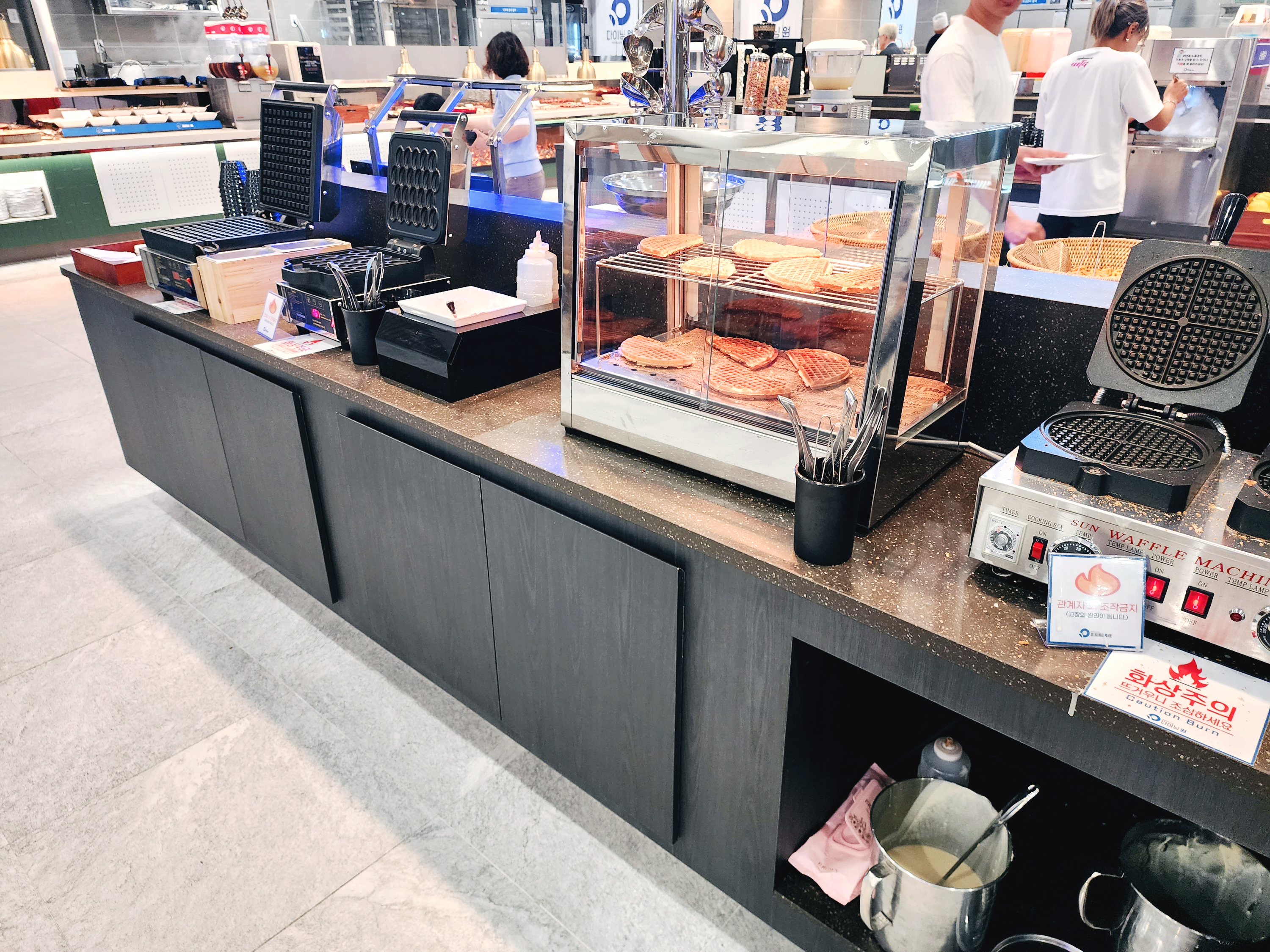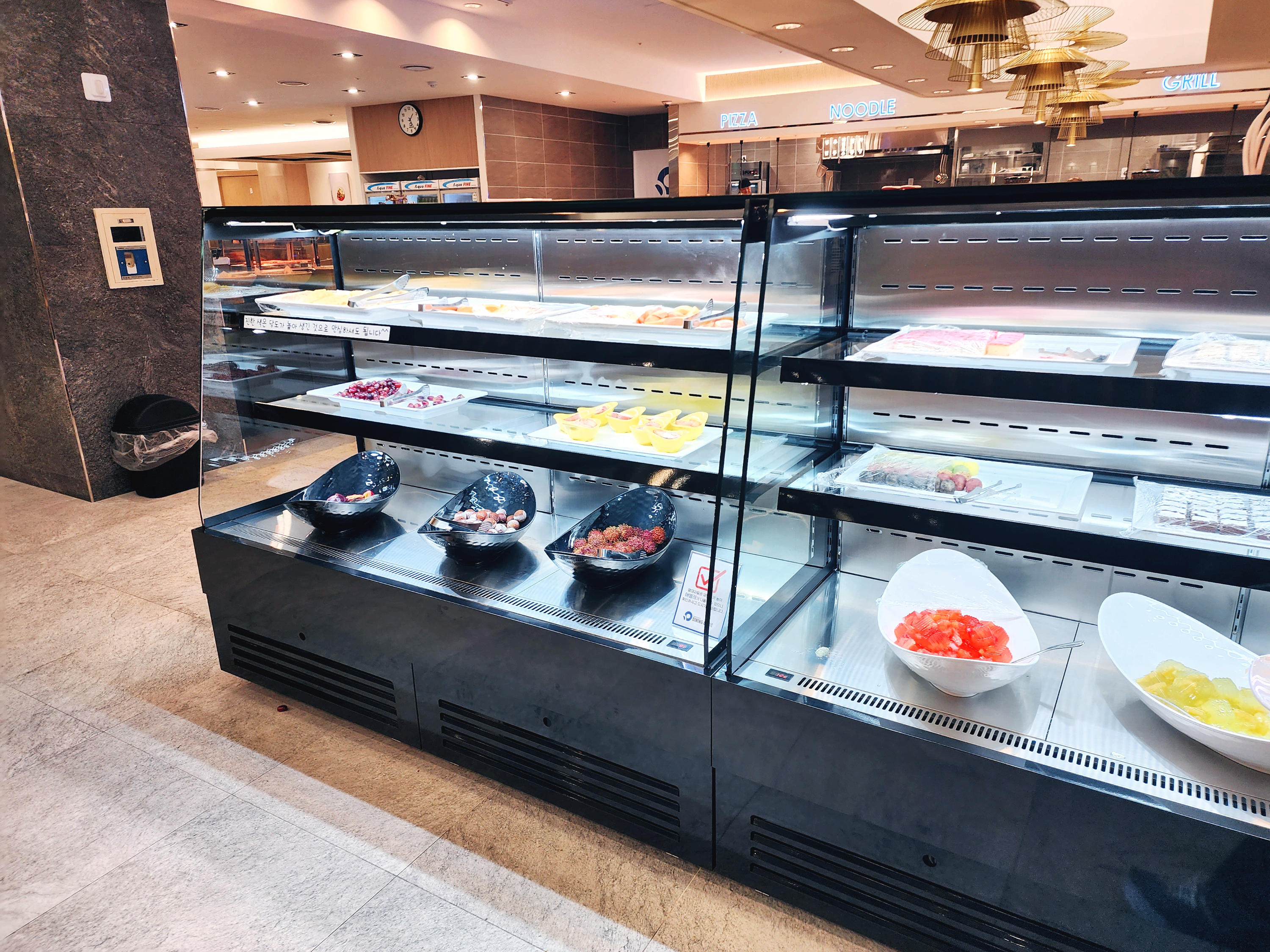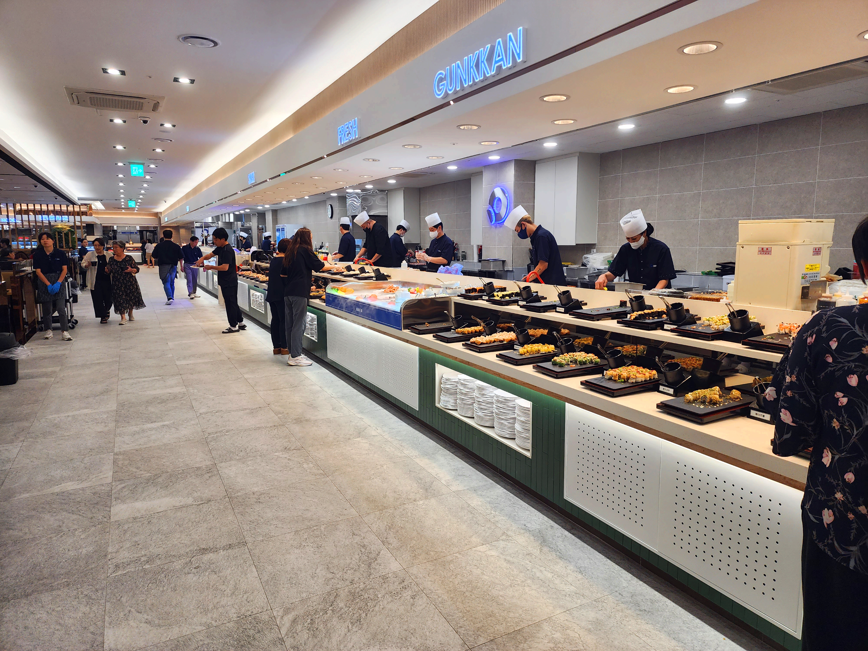 매장이 넓어 많은 사람이 있어도 동선이 겹치지 않게 잘 되어 있습니다. 음식을 신선하고 다양하게 많이 있습니다. 미리 만들어 놓은 음식도 아니였는데 비어있는 데가 별로 없이 계속 음식이 있었습니다. 다양하게 먹을 수 있습니다.