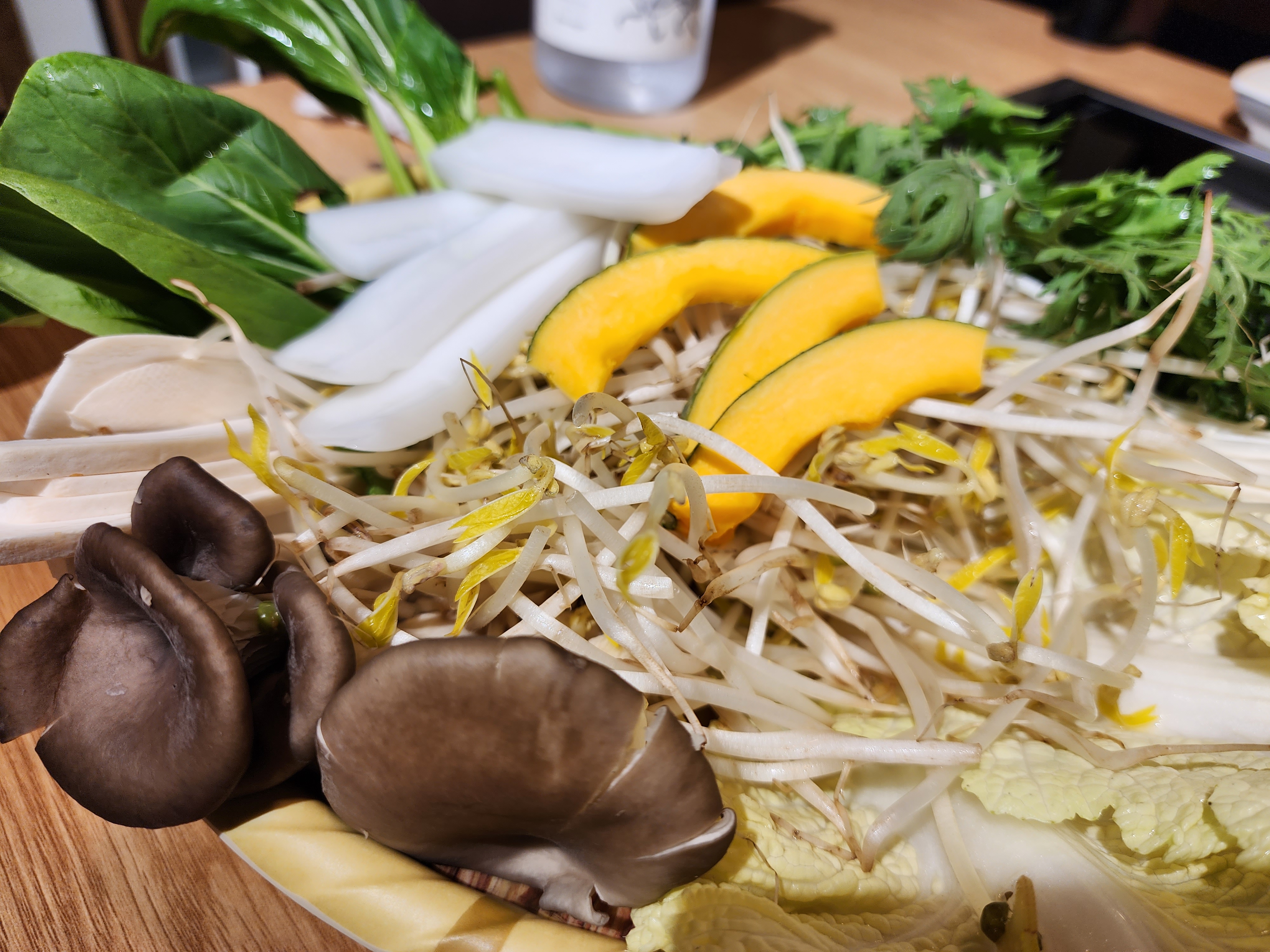 분모자, 느타리, 새송이버섯, 배추, 쑥갓, 청경채로 되어 있습니다.