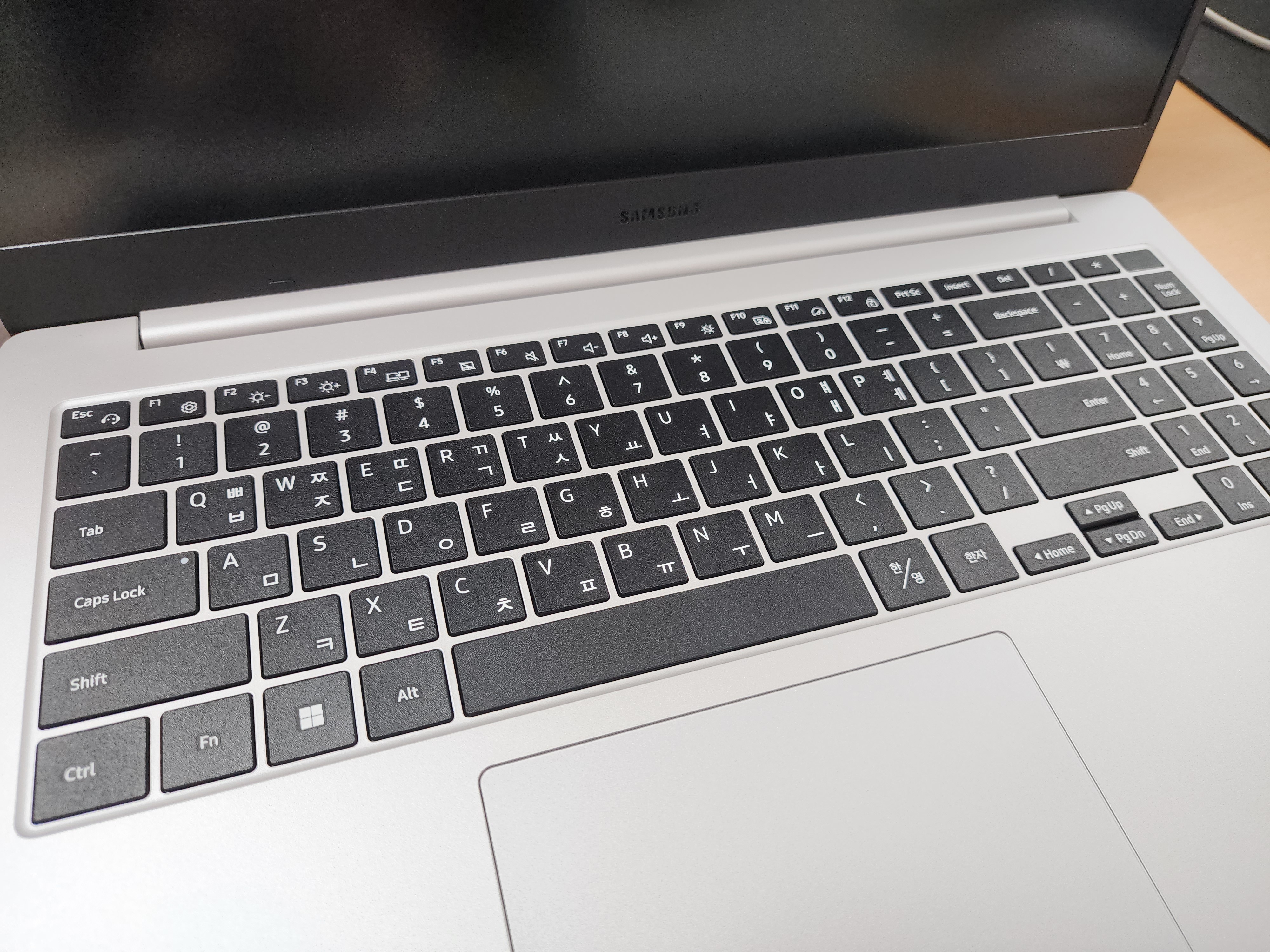 키보드는 넓고 키패드도 있어 가장 편안한 키보드 형태입니다. 요즘 나오는 삼성노트북에 공용화된 키보드 스타일입니다.
