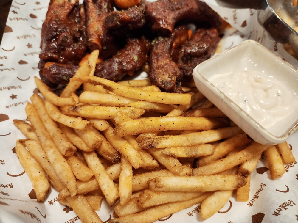 노지주차장1인메뉴가 있지만 주문이 안되는 본점잡내가 좀 나고 감자튀김은 괜찮았습니다.