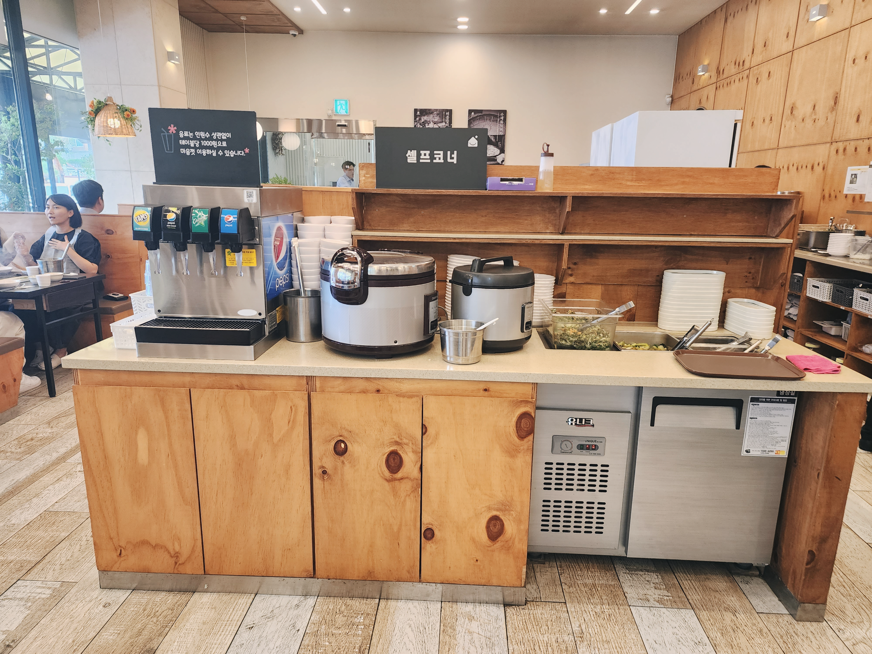 본점은 셀프코너가 있지만 반찬들이 많이 없고 그릇에 들어가 있습니다. 본점이 제일 별로였습니다. 그래서 안 갈까 했는데 송산이 괜찮아서 다른 지점에 찾아 방문해 봤습니다.