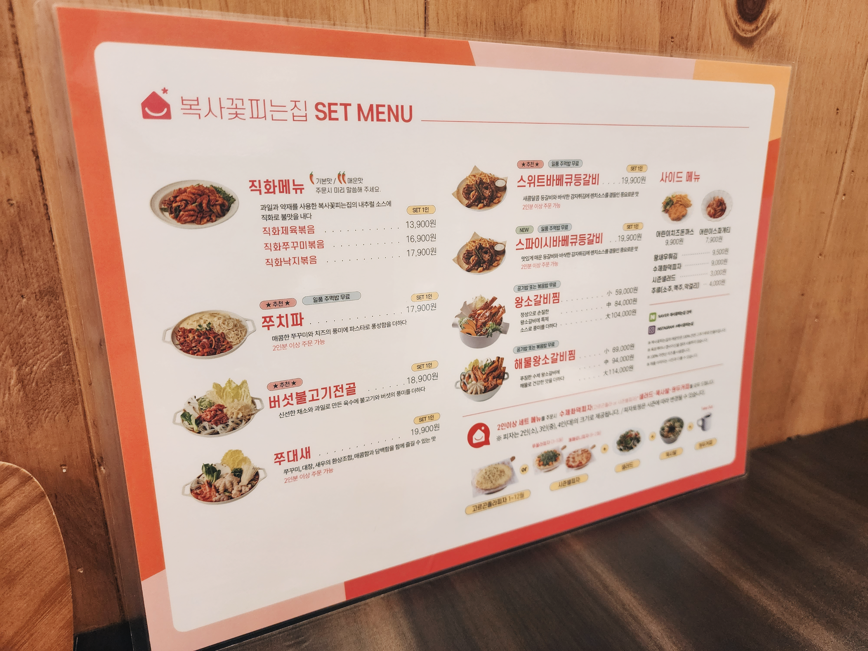 ※ 2인이상 세트메뉴 주문 시 수제화덕피자+샐러드+묵사발+커피를 제공한다고 합니다. 단품이 있나 싶었는데 혼자 가는 게 아니면 모두 다 준다는 내용 같습니다.