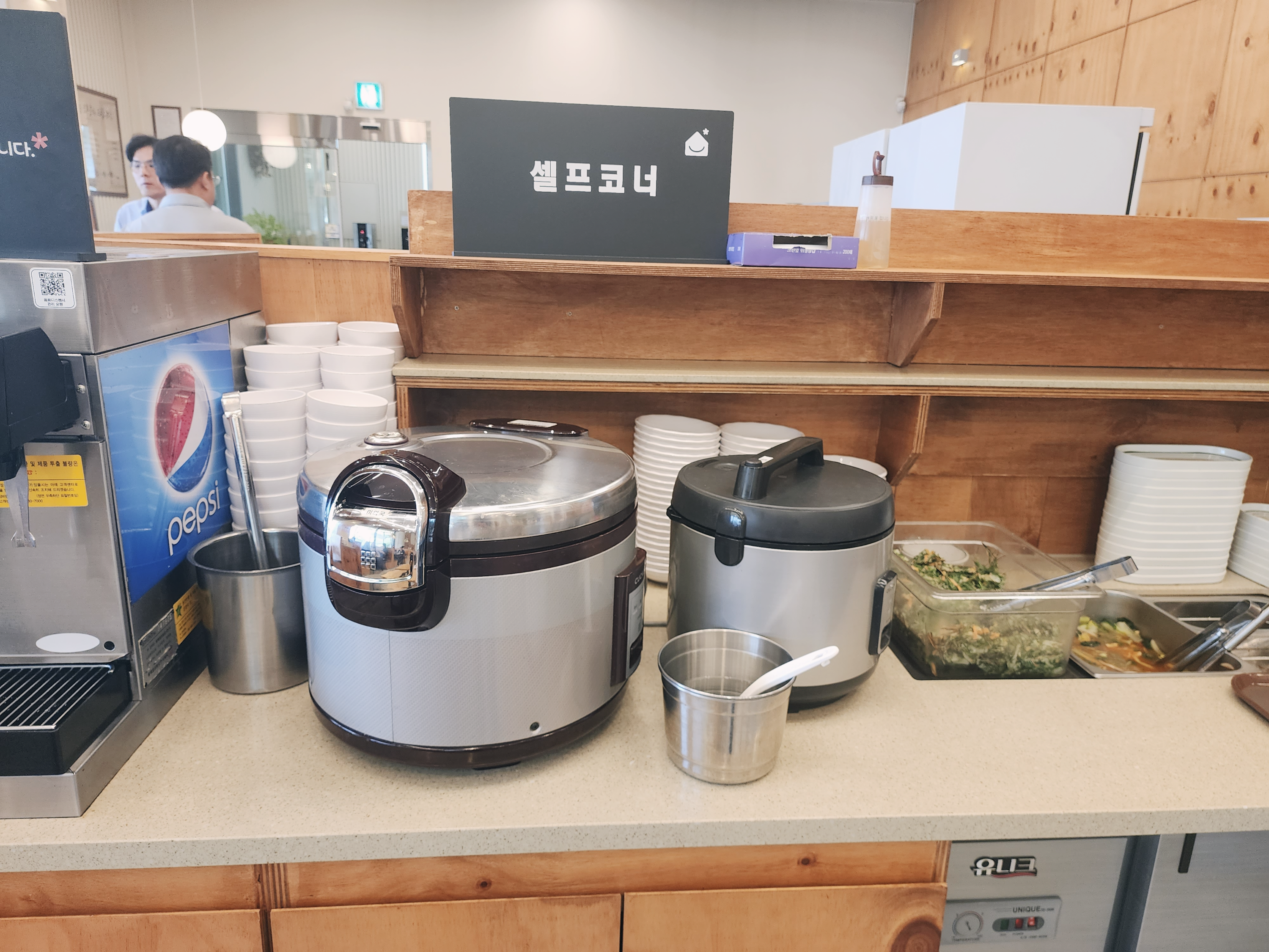 셀프코너에 미역국, 밥을 리필이 가능합니다.