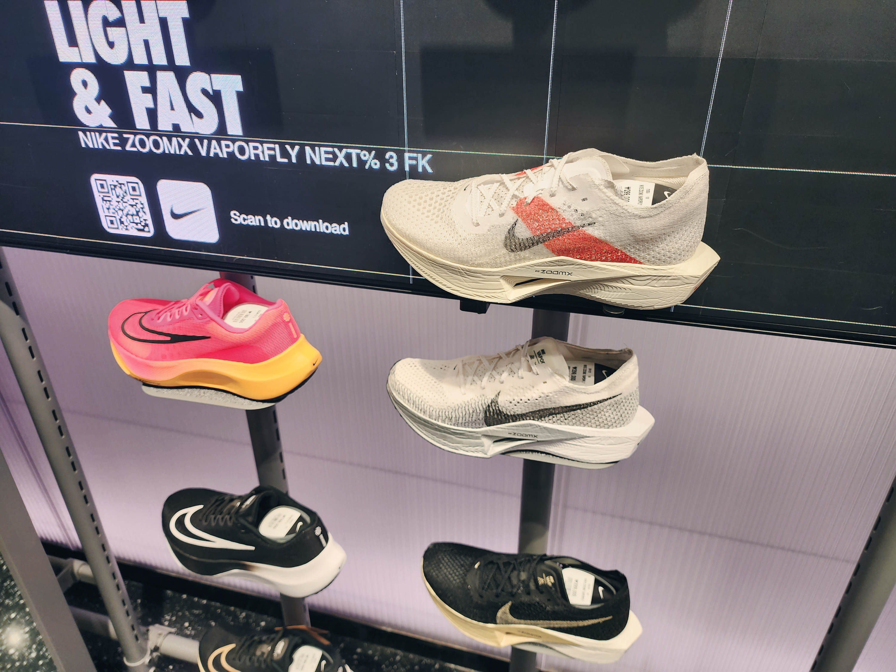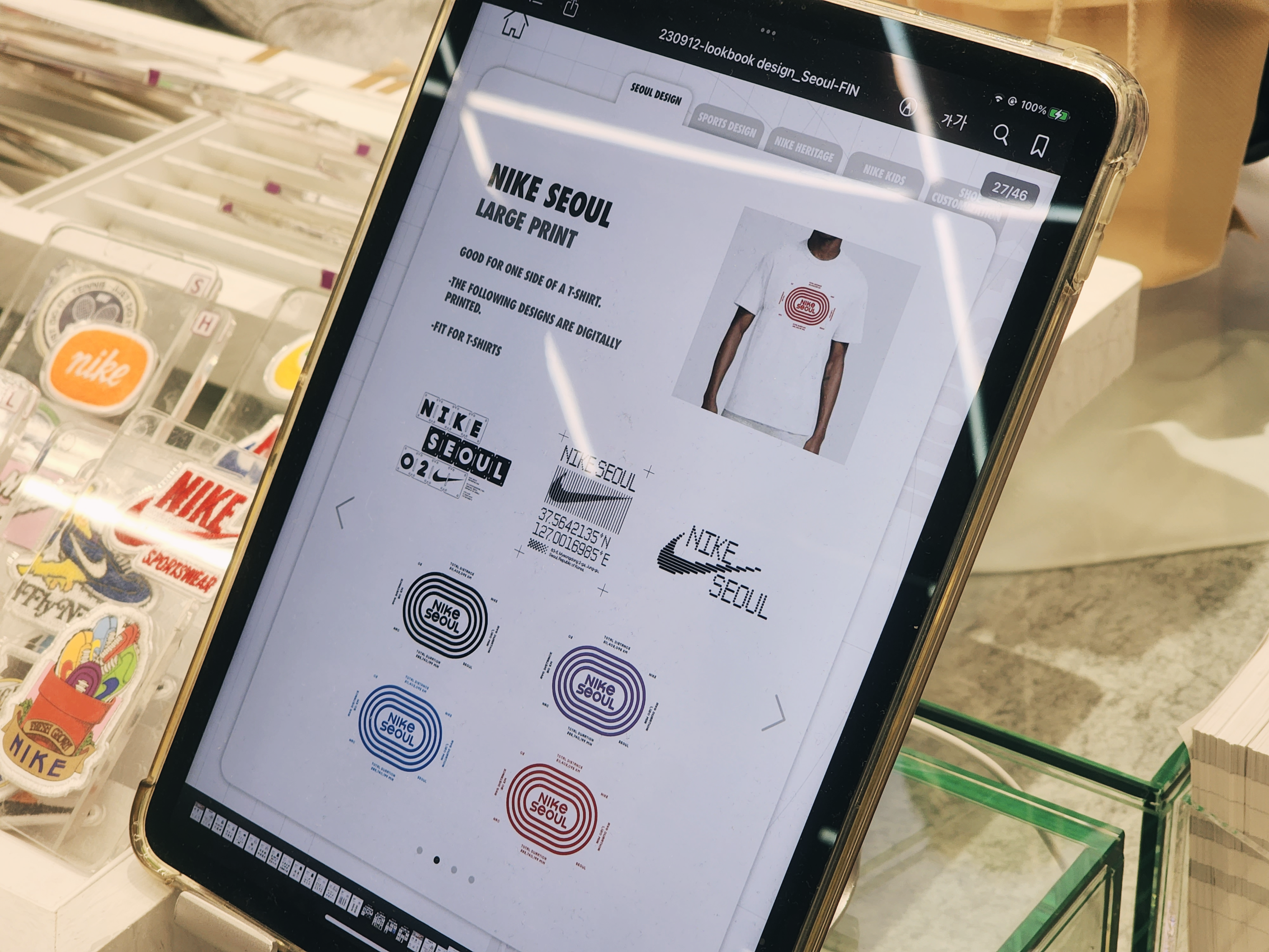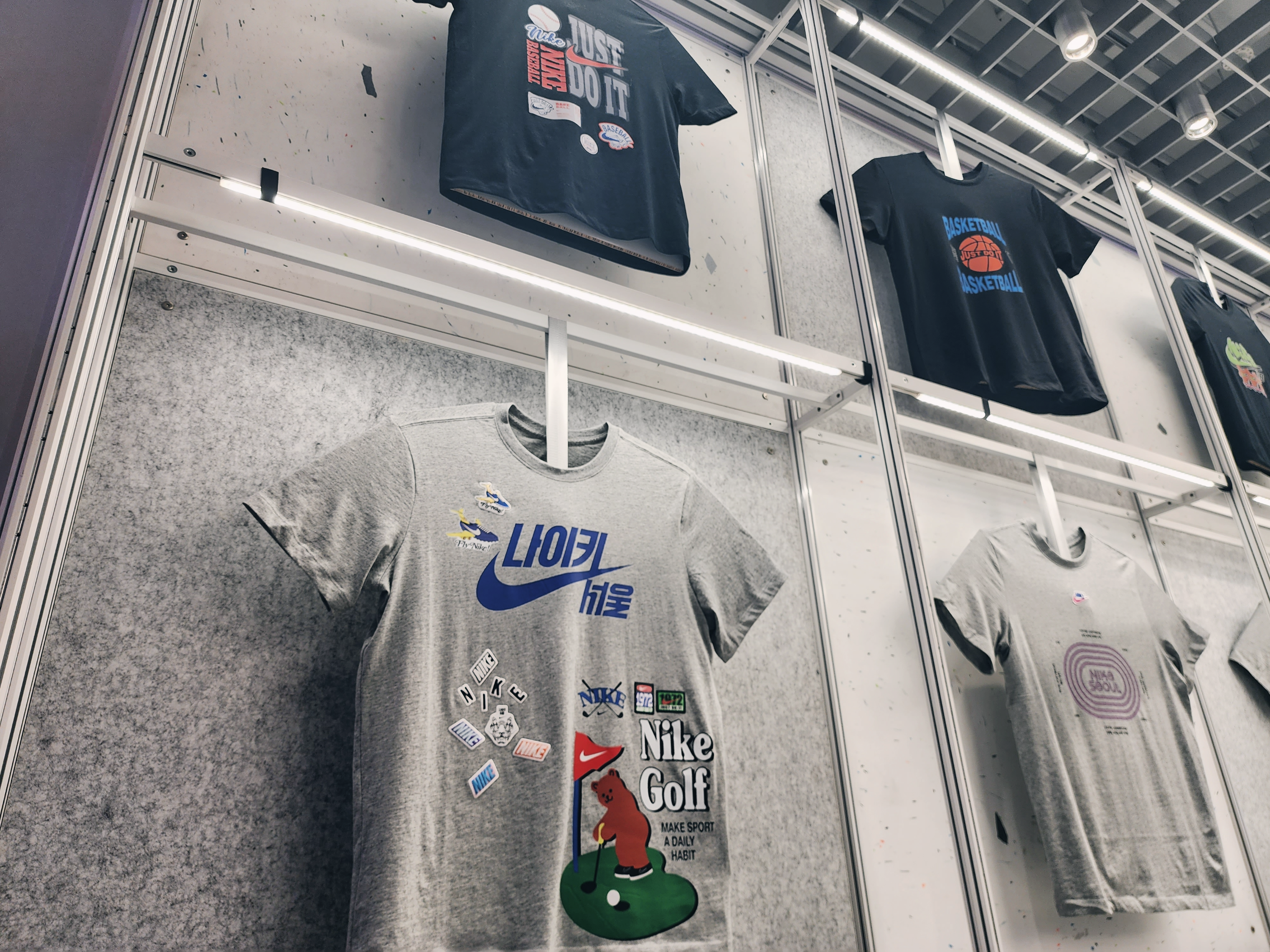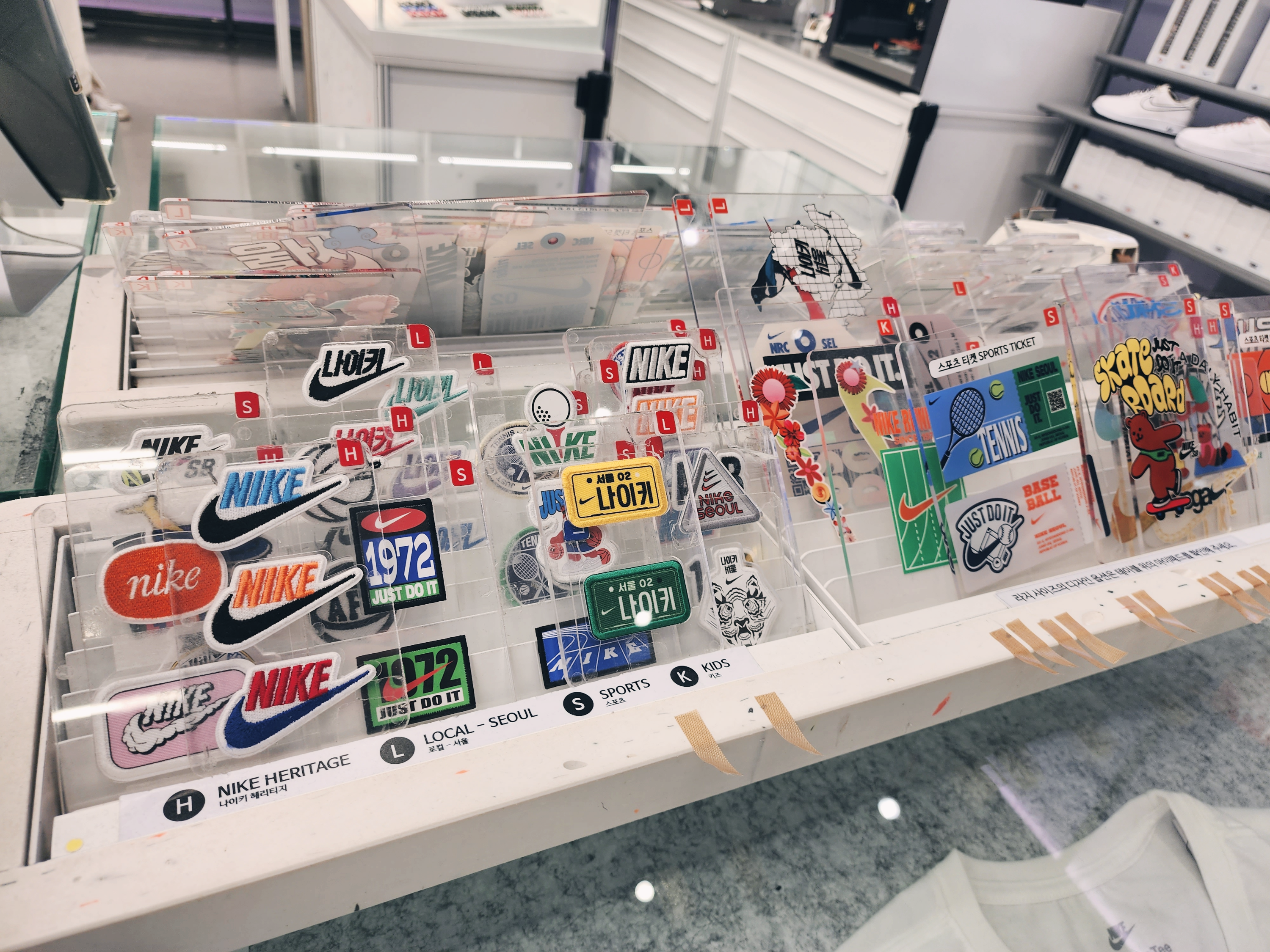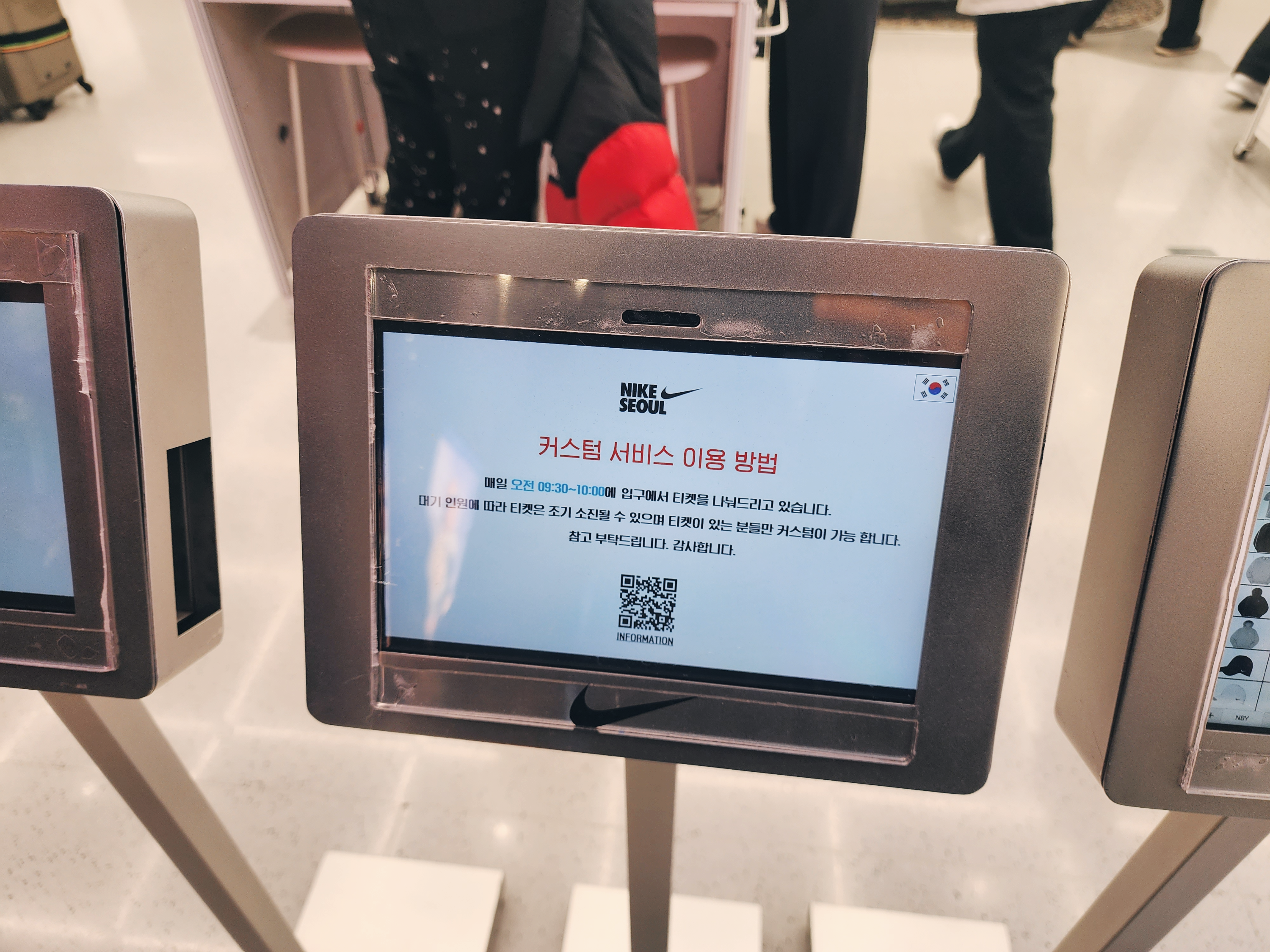 이렇게 1층에는 커스텀을 할 수 있는 매장이 있었고 2층부터는 일반 매장으로 다른곳보다 종류가 더 많았습니다. 2층에는 여성슈즈가 있고 입구에는 행사판매상품이 있습니다. 나이키앱에서 행사하는 모델은 거의 입구 쪽에 있었습니다.