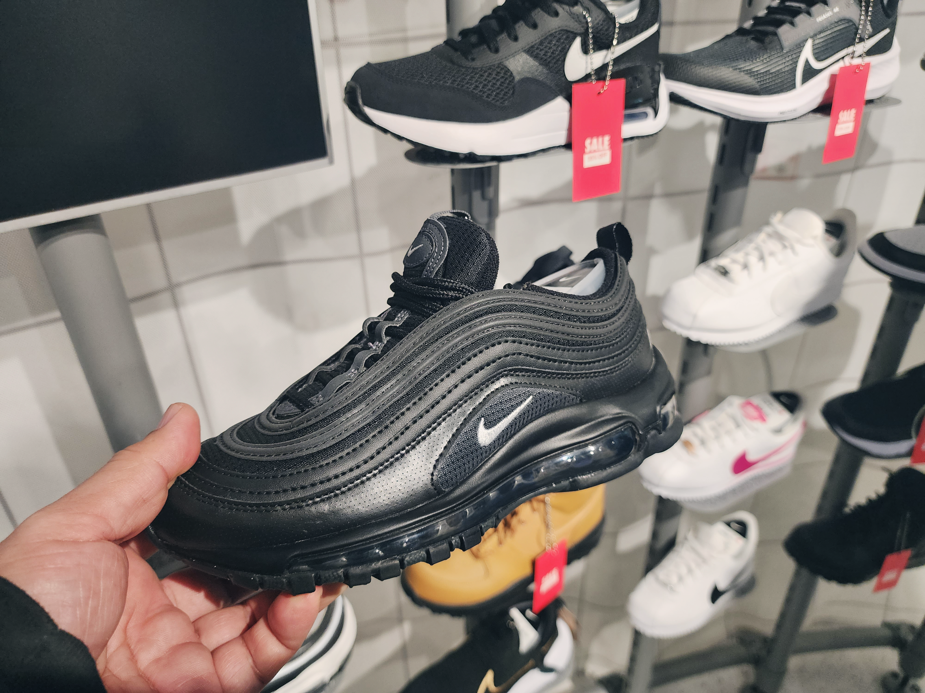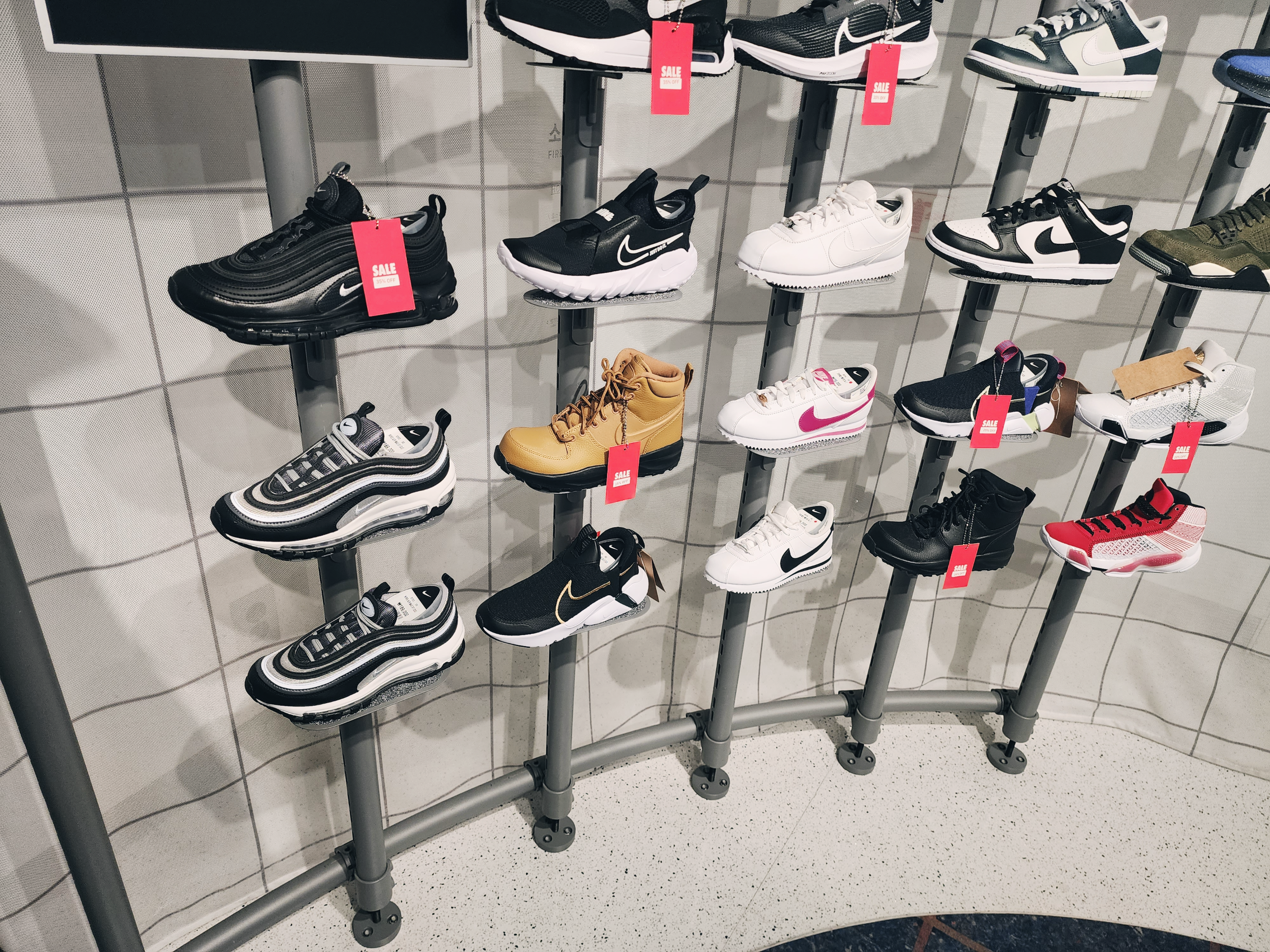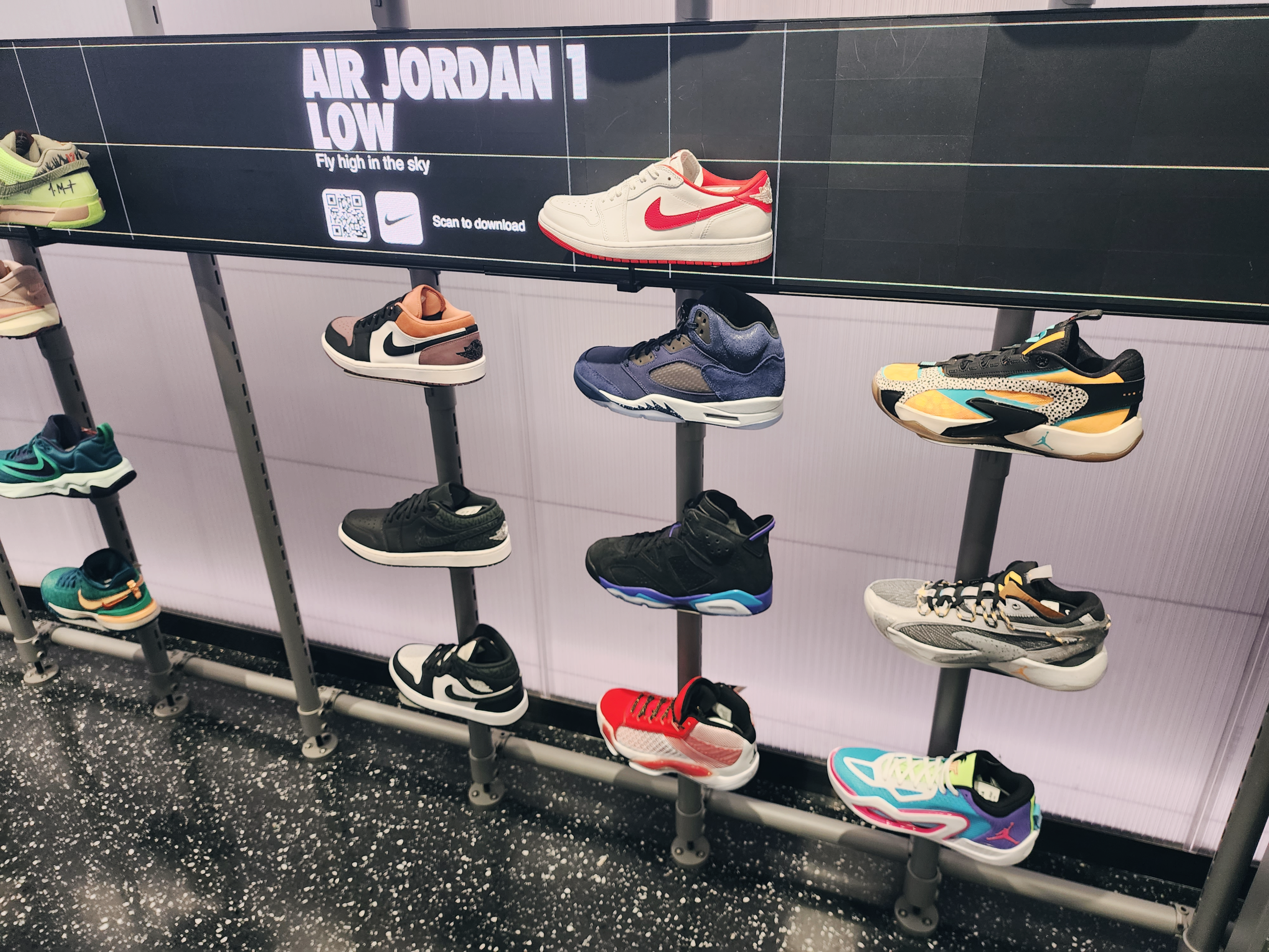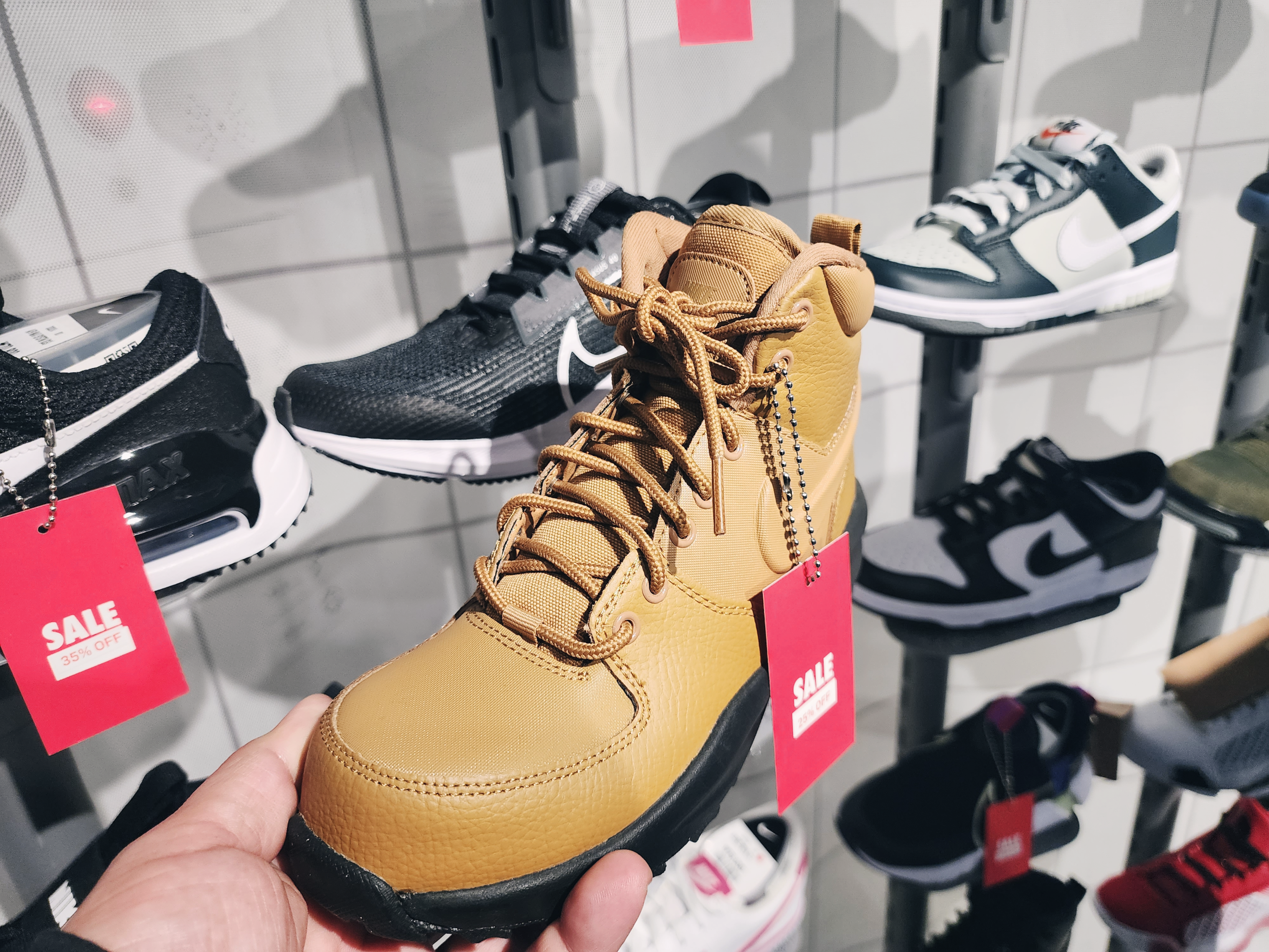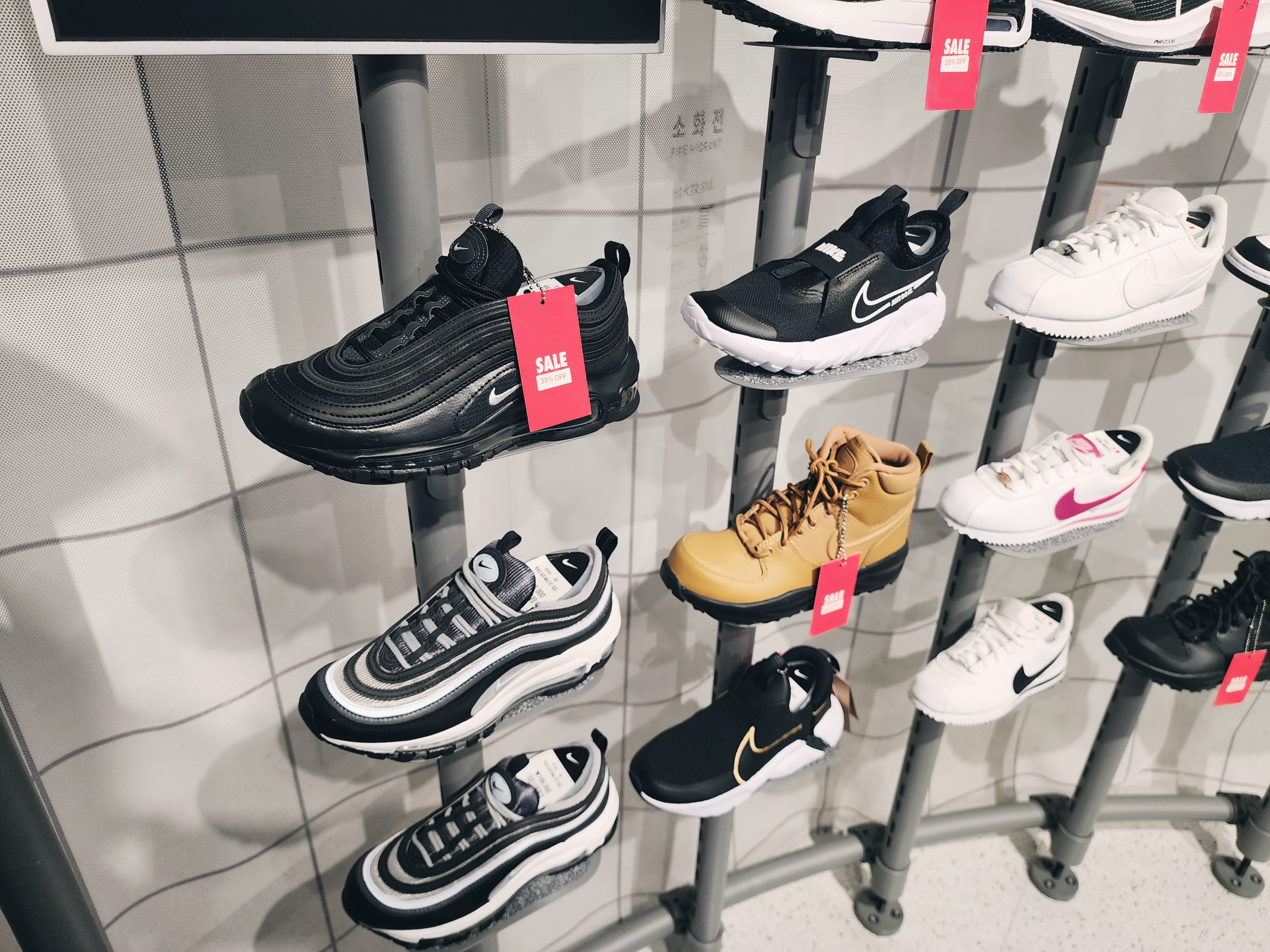 이렇게 1층에는 커스텀을 할 수 있는 매장이 있었고 2층부터는 일반 매장으로 다른곳보다 종류가 더 많았습니다. 2층에는 여성슈즈가 있고 입구에는 행사판매상품이 있습니다. 나이키앱에서 행사하는 모델은 거의 입구 쪽에 있었습니다.