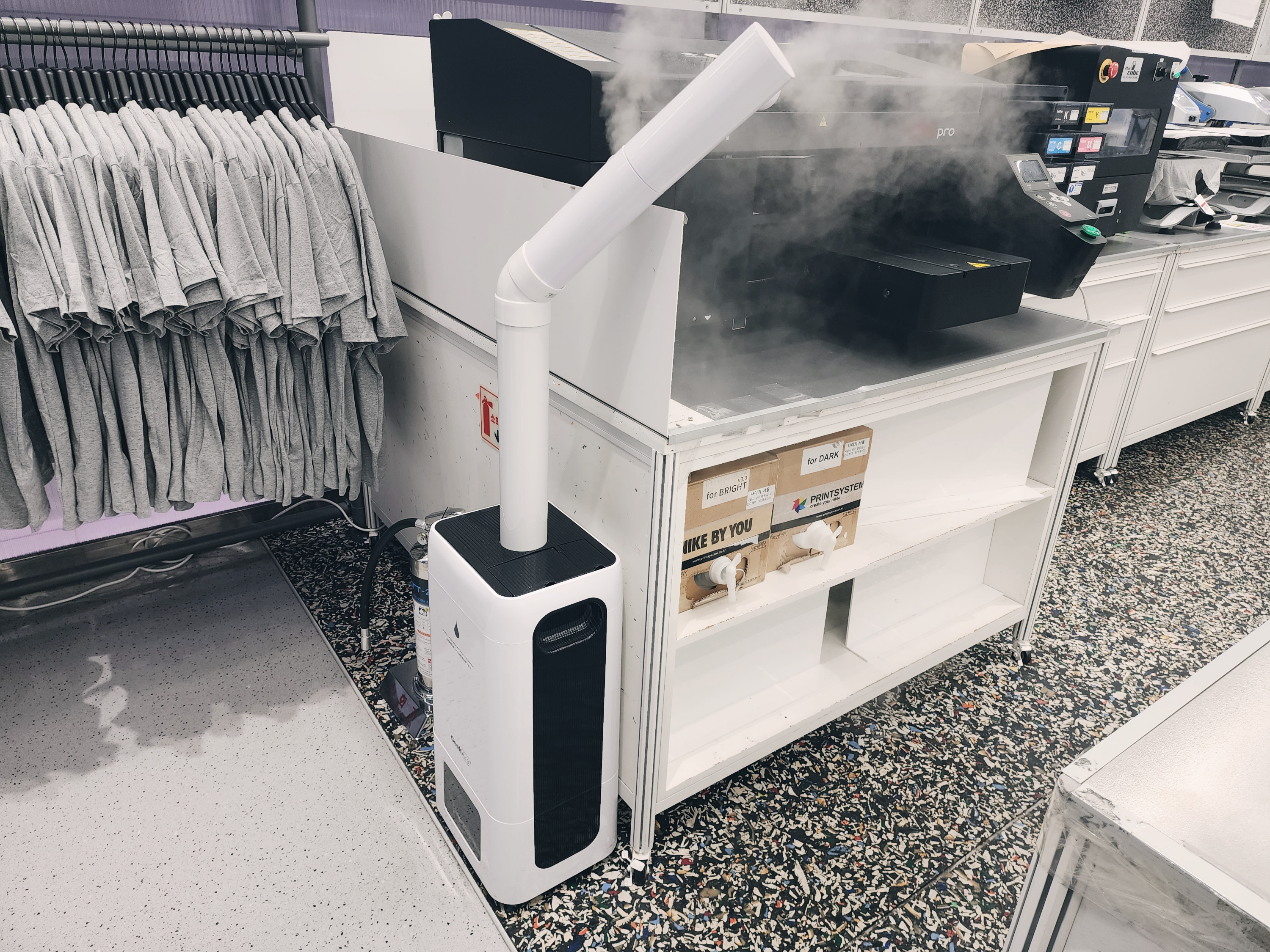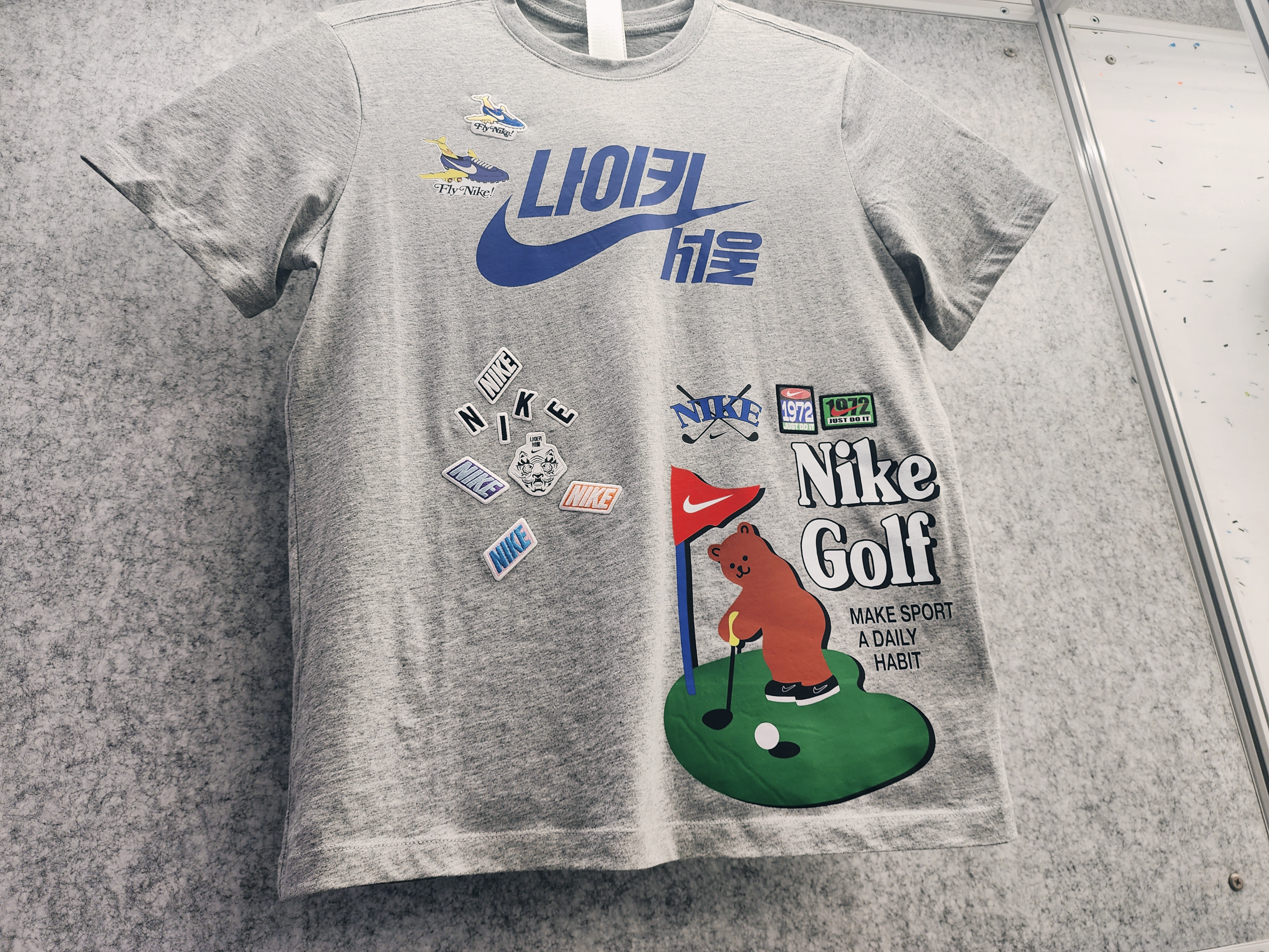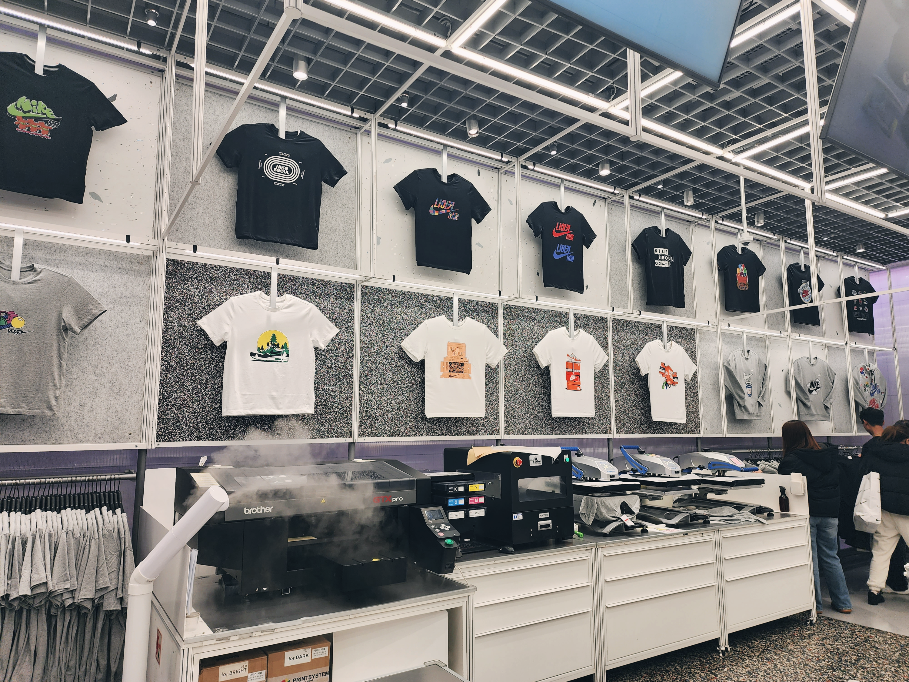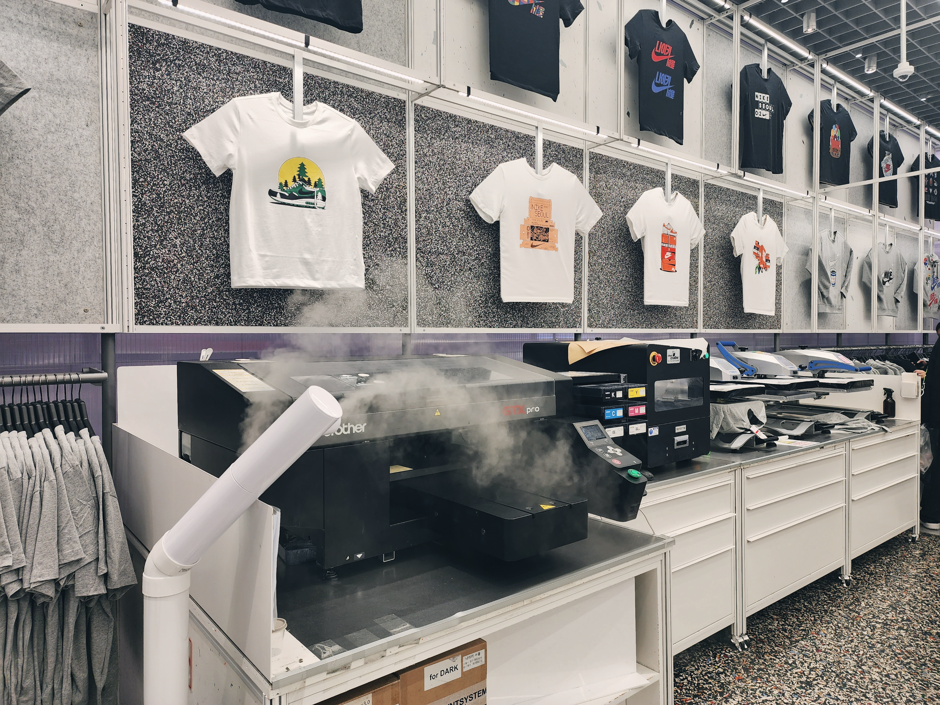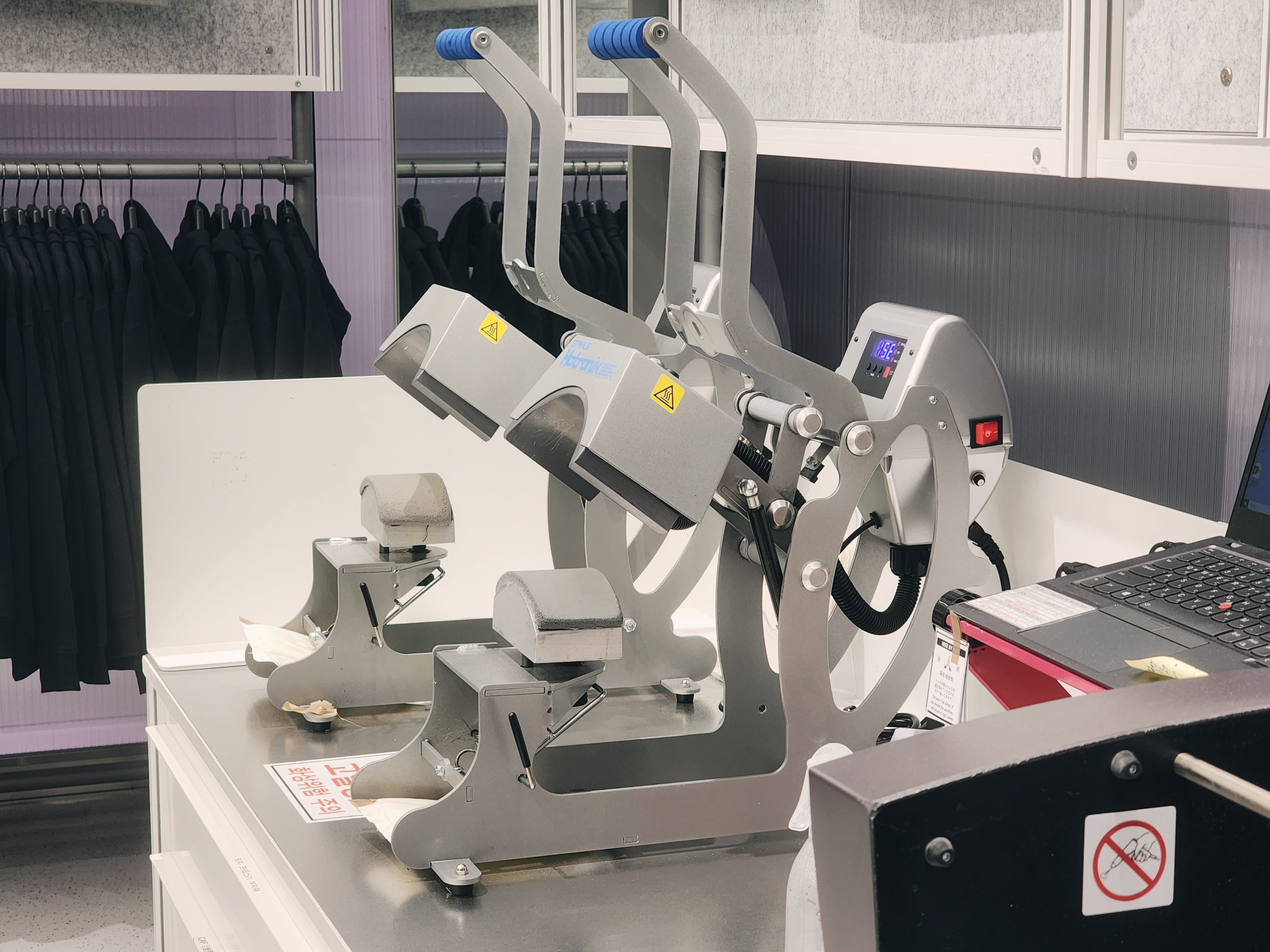 모자에 쓰는 열프레스가 있고 레이저 각인기가 있었고 이 곳은 스태프만 출입이 가능했습니다. 사진은 최대한 가까이에서 찍어봤습니다.