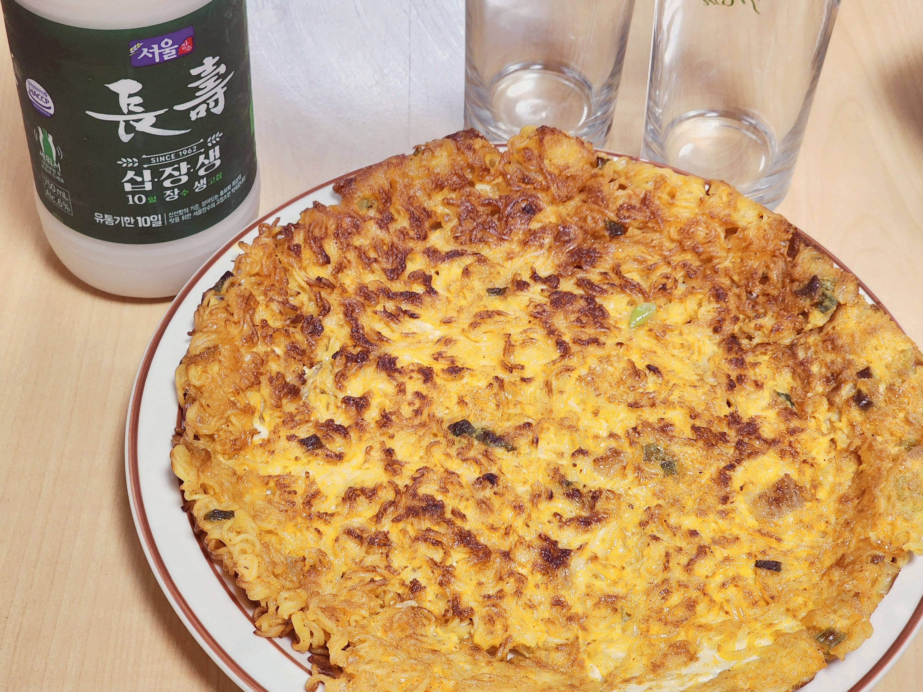 이렇게 하면 누구나 쉽게 실패없는 김치전이 완성이 됩니다. 우리가 알고 있는 오리지널 레시피로 김치전을 하면 맛있다보면 10장 이상을 부쳐야 하는데 이렇게 하면 김치전 1개로 맛있게 먹고 느끼해서 더 먹을 수는 없습니다. 그러니 욕심내지말고 1장으로 적당히 먹을 수 있을 정도만 하면 됩니다. 김치와 라면의 바삭함과 스프버프, 식용유가 어우러진 최고의 김치전을 맛보실 수 있습니다. 3인이면 1장으로 충분하니 2장이상 만들지 않는 것을 권장합니다.