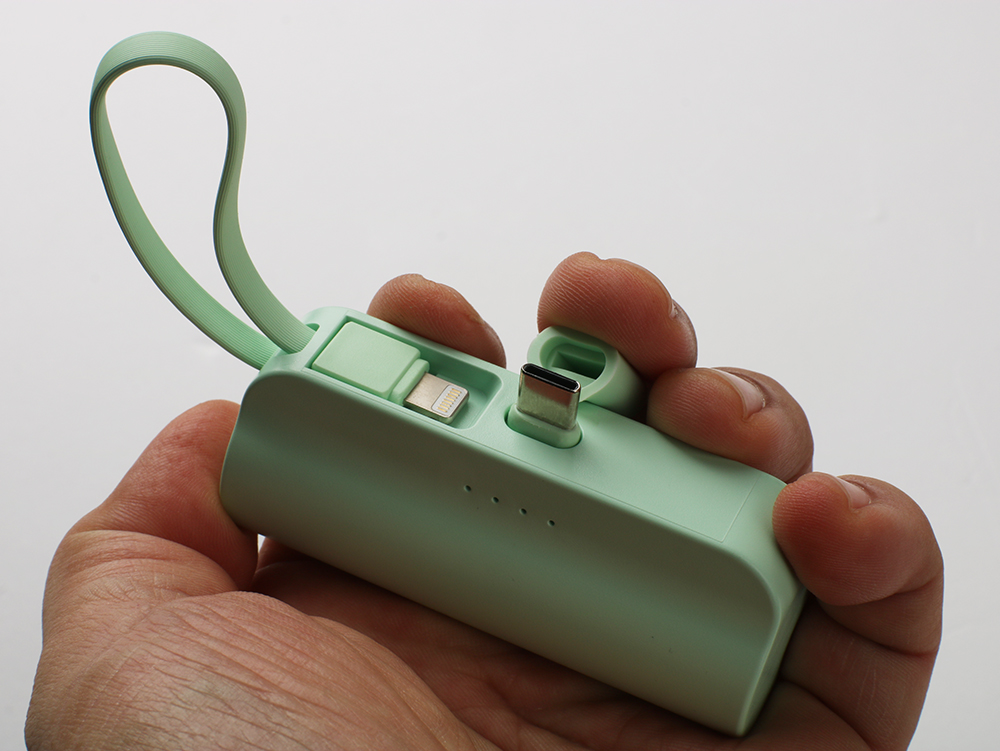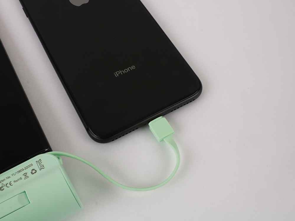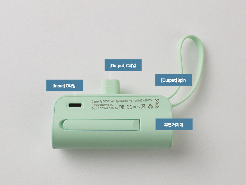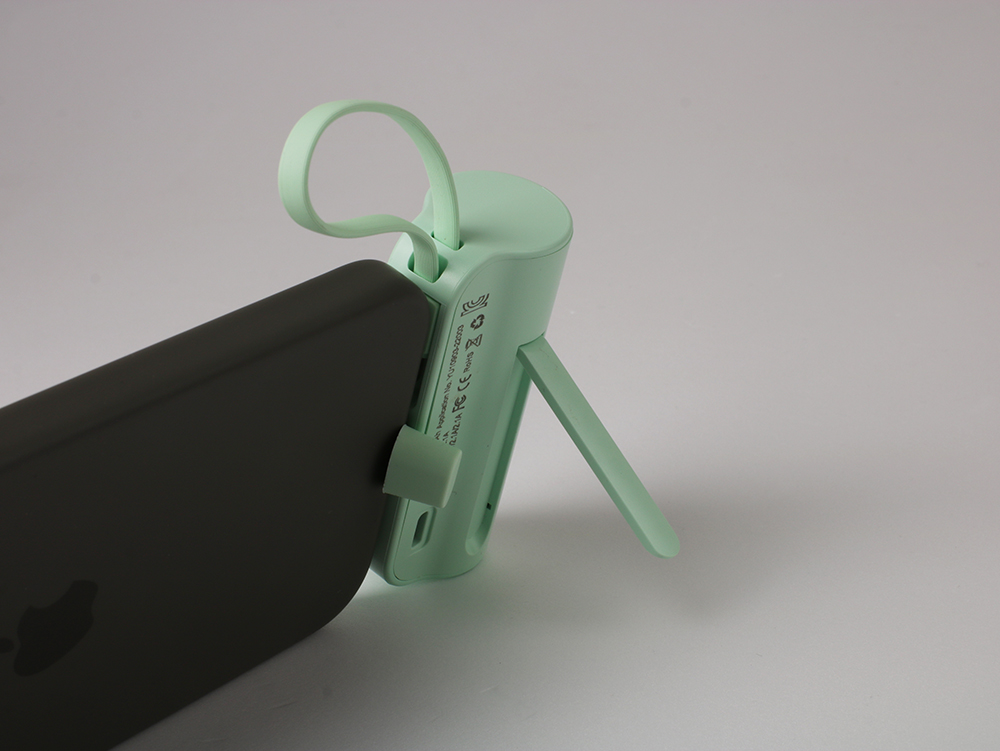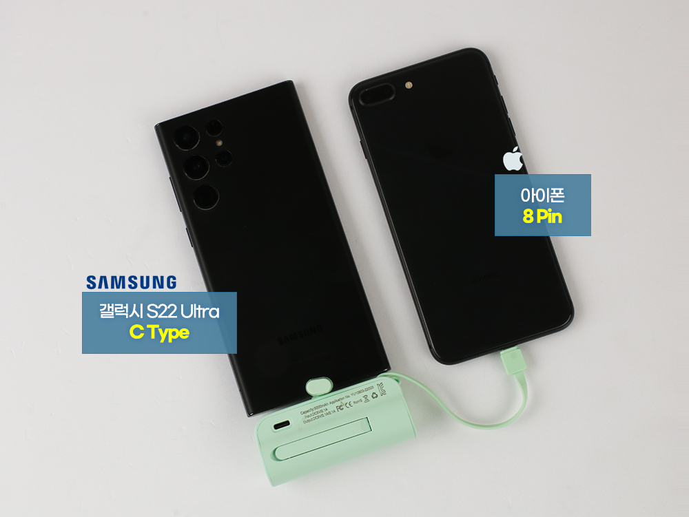 미니 사이즈로 5000mAh 충전을 할 수 있습니다. 일체형으로 가운데이 있는 핀이 맞으면 충전중에도 스마트폰을 사용할 수 있어 게임을 하거나 영상 시청도 가능합니다.