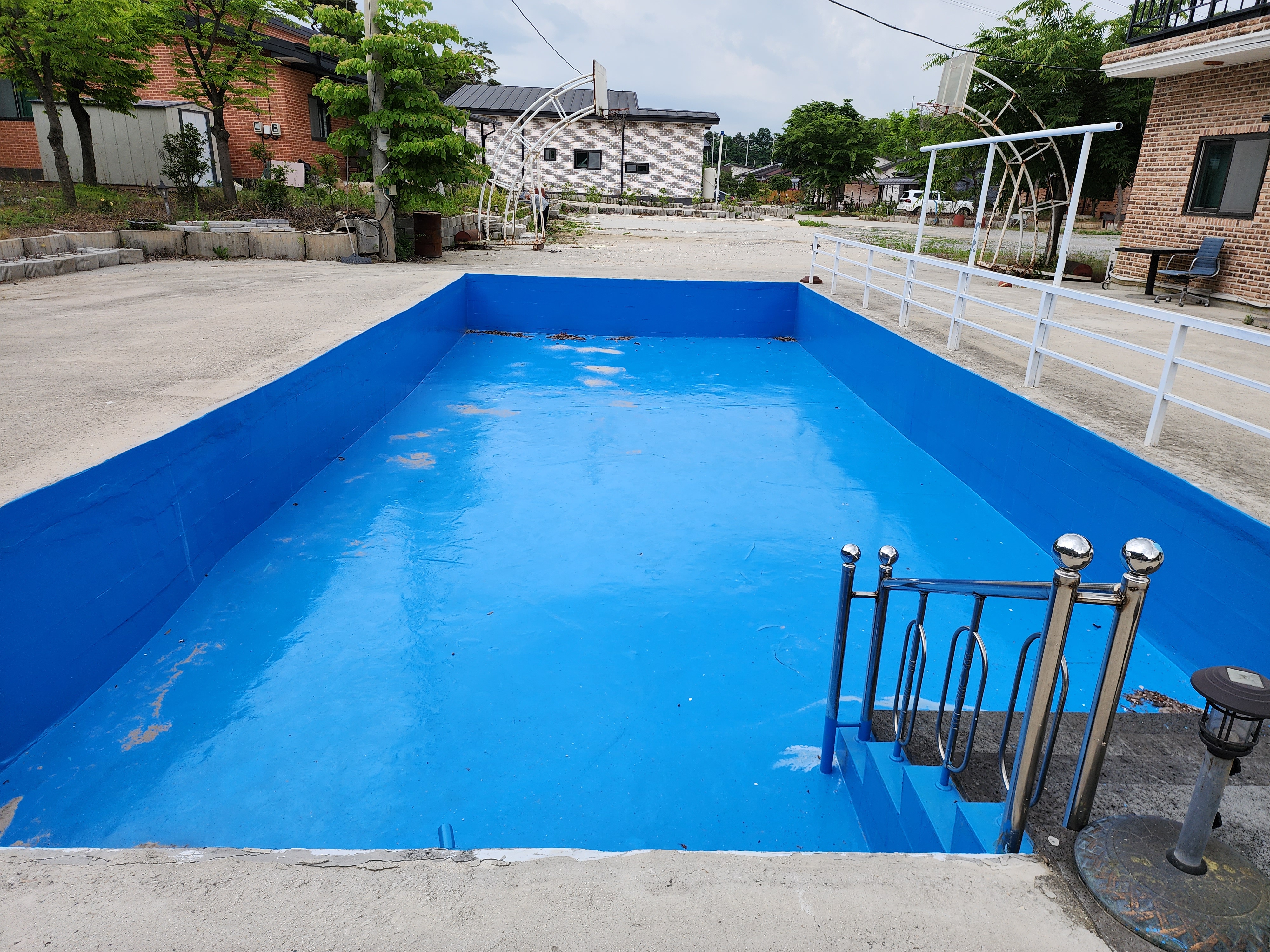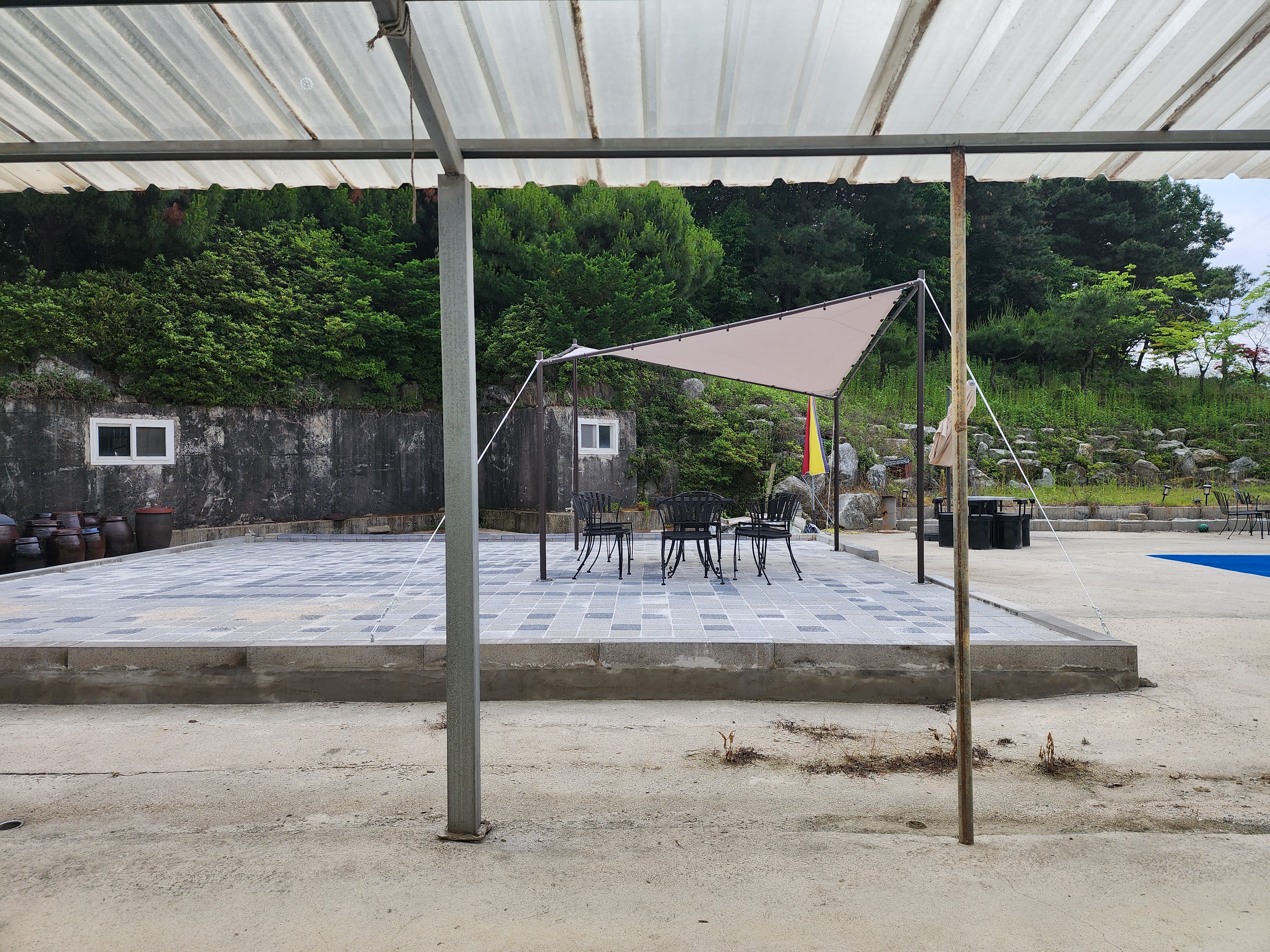 수영장은 여름에 운영을 하는 것 같습니다. 바로 옆에 산을 통한 지하터널도 있었는데 터널에는 들어가 보지 못했습니다. 무슨 피난시설처럼 보이고 주변에 조경에 엄청나게 신경을 쓰셨나 봅니다. 적송도 보이고 잔디관리도 잘되어 있었습니다.