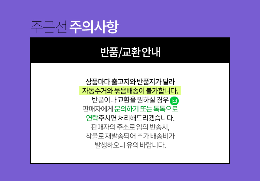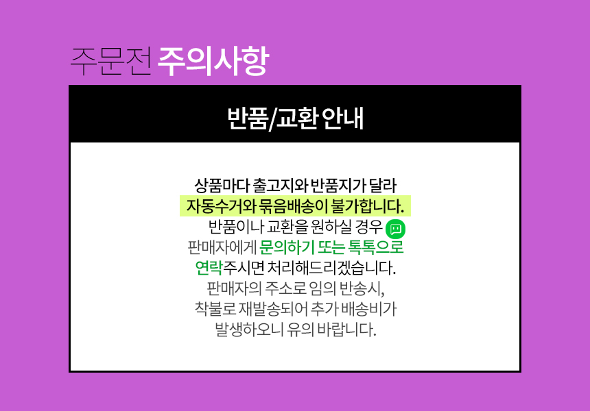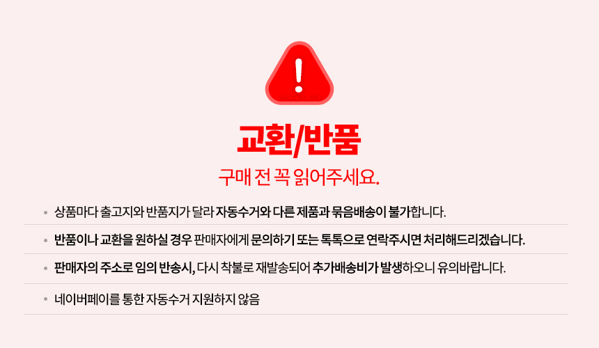 모든 제품이 출고지 반품지가 다릅니다. 부탁드립니다.