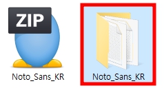4. 폰트를 다운받아 설치를 하면 됩니다. 저한테는 해당 폰트를 가지고 있었지만 다시 'Noto Sans' 폰트를 구글에서 다운로드을 했습니다. 구글폰트의 레이아웃이 자주 바뀌다보니 다운받는 곳을 못찾을 수 있습니다. 아래처림 하면 됩니다.