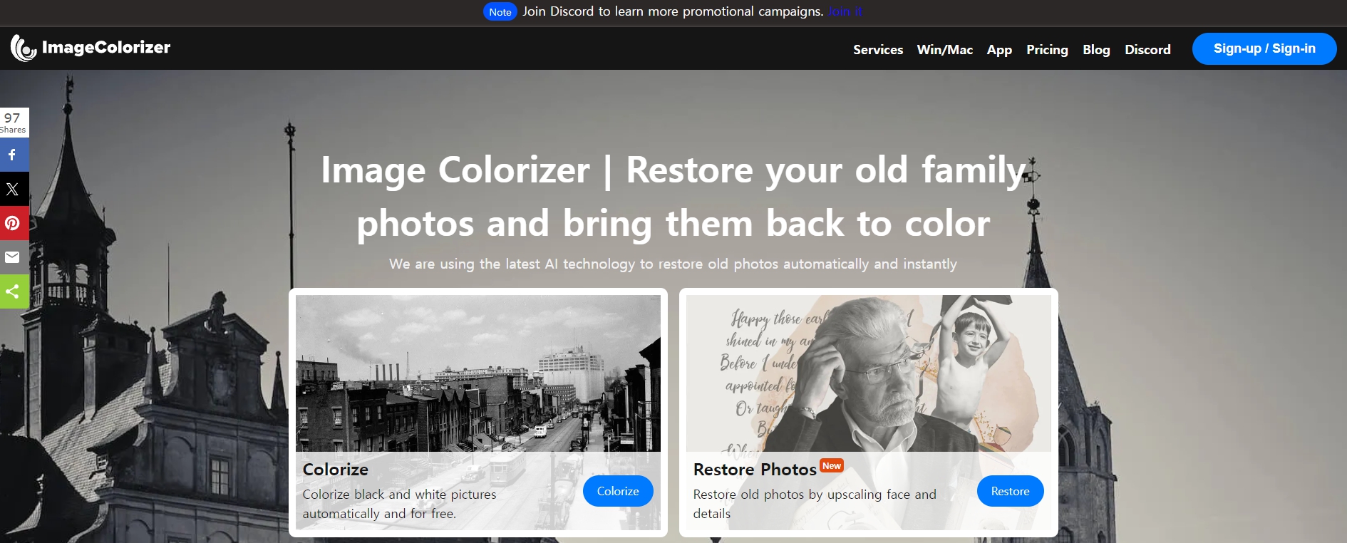 이미지컬러라이저 | 오래된 사진 복원 및 향상