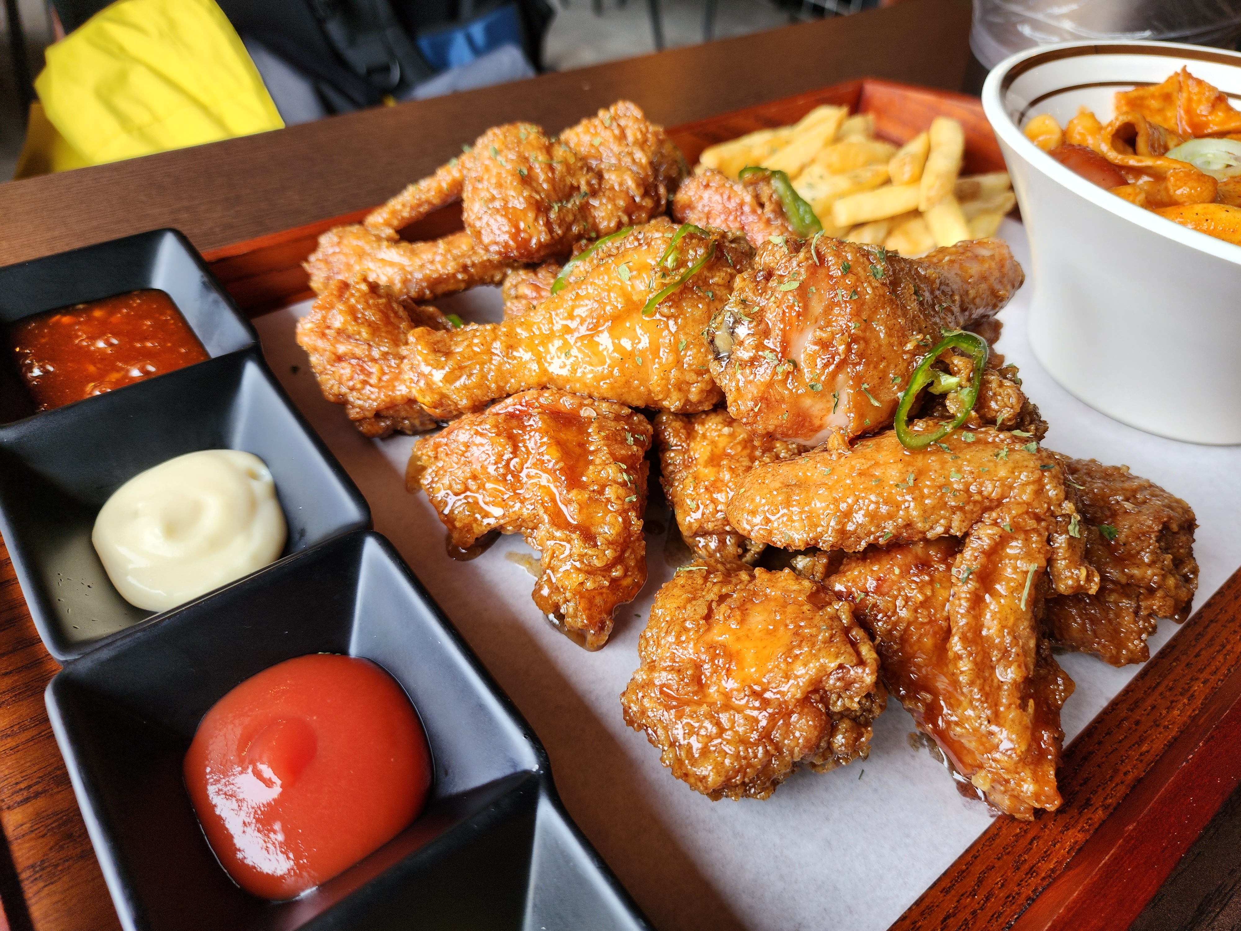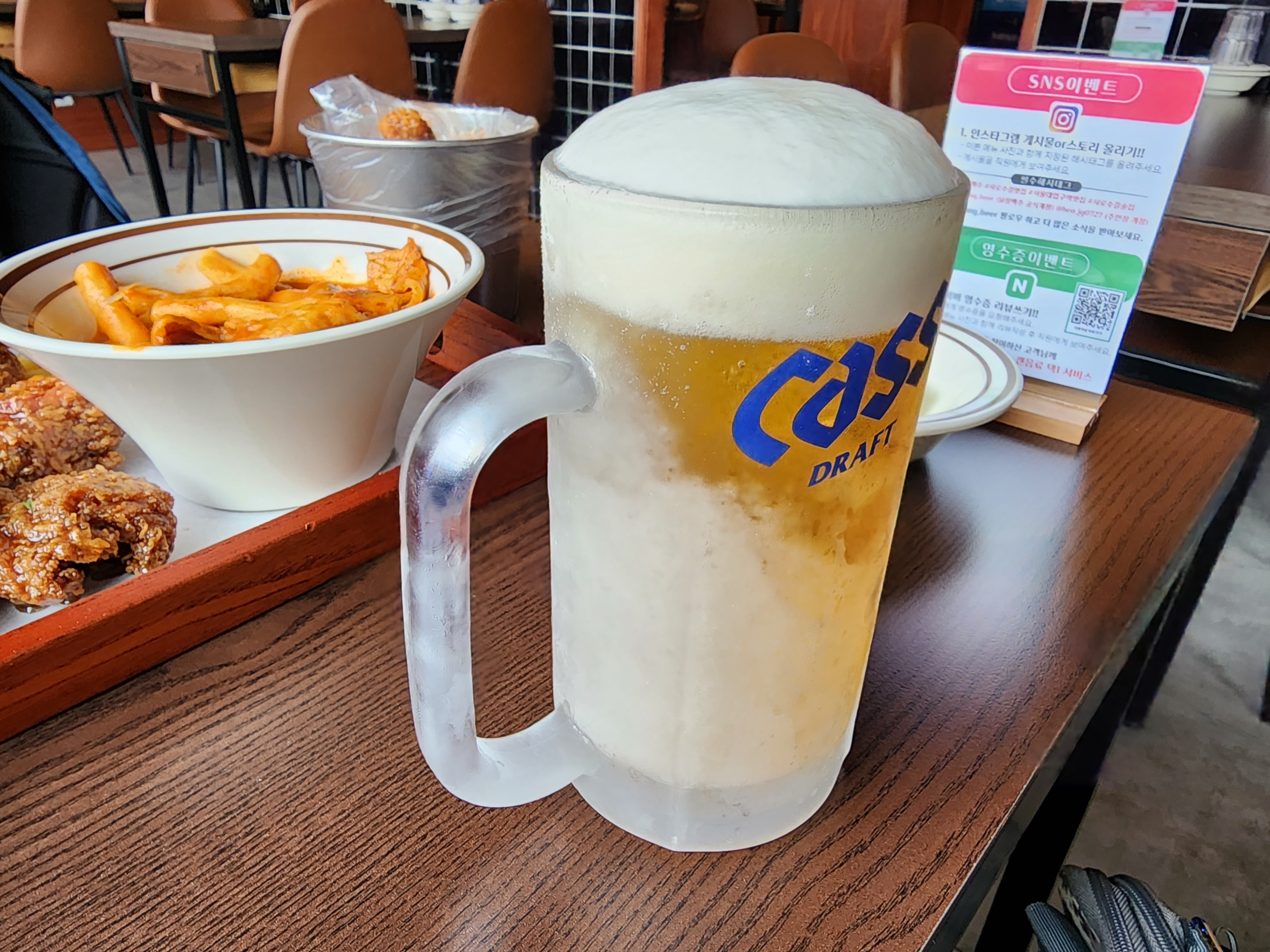 이번에는 어떤 맛집으로 갈까 하다가 시원한 맥주가 땡겨 치맥을 하기로 하고 2호선 서울대입구역에 있는 치킨집에서 골뱅이치킨세트를 주문했습니다. 떡볶이와 감자튀김도 함께 나오는데 아주 괜찮았습니다.